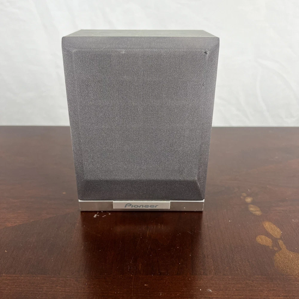 The Pioneer S-HTD510 Rear Surround Speaker is a compact cube-shaped speaker in silver color, designed for rear surround sound in a home audio setup. This wired speaker from Pioneer's brand features a sleek design that can easily blend into any home entertainment system. With its compact size and specific rear surround function, this model is ideal for enhancing the overall audio experience while watching movies or listening to music. The speaker has been tested to ensure quality performance and reliability.