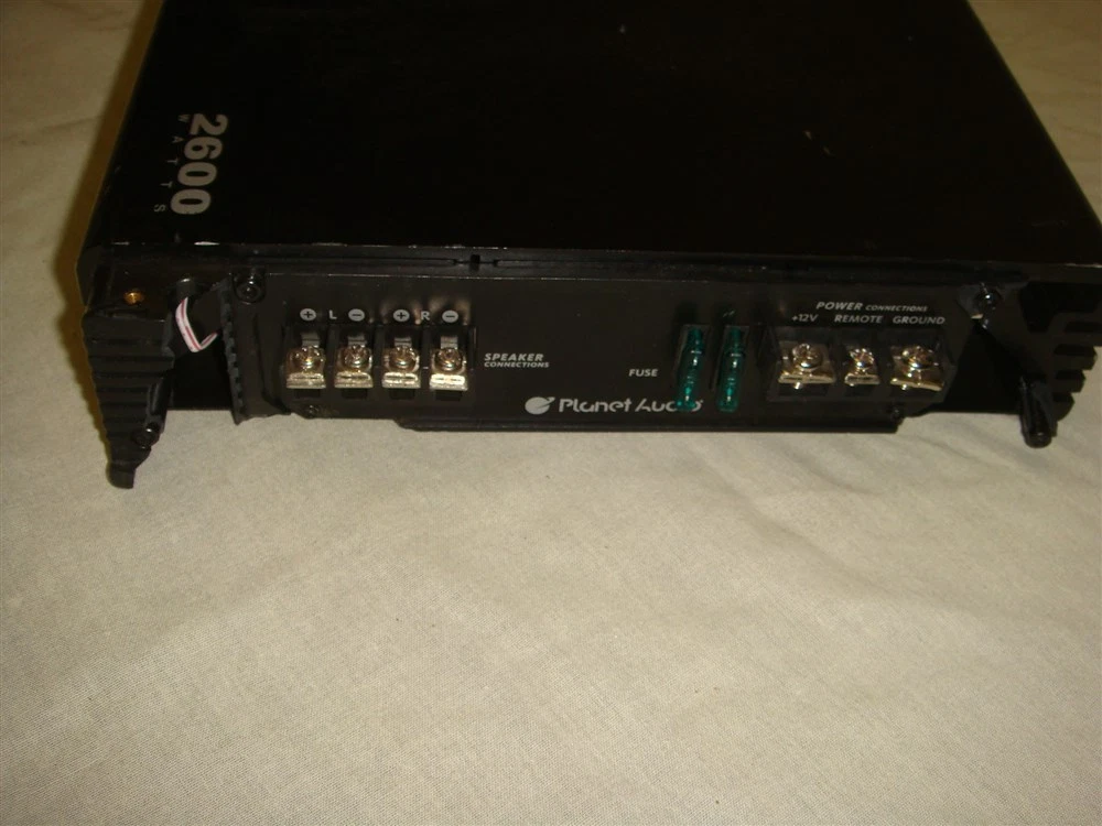 PLANET AUDIO AC2600.2 2 CHANNEL 2600W CAR POWER AMPLIFIER FOR PARTS/REPAIR You are bidding on ONE PLANET AUDIO AC2600.2 2 CHANNEL 2600W CAR POWER AMPLIFIER FOR PARTS/REPAIR. This is a lost frieght item that we received as you see it in the photos. It is pretty beat up with surface marks, cracking in the end caps and missing end caps. It powers up and the light comes on however there's humming coming out of the outputs without any audio pass-through. We aren't techs and wouldn't know the first thing about this so we are selling it as-is for parts/repair. This is your chance to save big-time if you're a do-it-yourselfer. Don't miss out! PLEASE READ EVERYTHING IN THE LISTING DESCRIPTION PRIOR TO BIDDING. ITEMS COME AS SHOWN IN THE PHOTOS WITH ONLY WHAT SHOWN. WE DO NOT SHIP OUTSIDE THE USA/CANADA. IF YOU LIVE OUTSIDE THE USA/CANADA AND DO NOT HAVE A CONFIRMED SHIPPING WITHIN THE US THEN WE CAN NOT SHIP TO YOU! YOU MIGHT LOOK INTO FINDING A MAIL FORWARDING PROVIDER IN THE USA AND GETTING THEIR ADDRESS ADDED AND CONFIRMED IN YOUR PAYPAL ACCOUNT! ALSO IF YOU LIVE IN CANADA UNDERSTAND THAT DUTIES AND CUSTOMS TAXES ARE COLLECTED PRIOR TO DELIVERY AND WE DON'T EVER KNOW WHAT THOSE RATES ARE OR HAVE ANY CONTROL OVER THEM AT ALL. KEEP IN MIND IF BIDDING IN CANADA YOU WILL END UP HAVING TO PAY THESE. WE'VE DISCOVERED THAT THOSE WANTING SO SAVE MONEY ON THESE FEES CAN SELF-BROKER PACKAGES LOWERING THEM SIGINIFICANTLY. YOU CAN DO A WEB SEARCH FOR DETAILS ON THIS. PLEASE NOTE THE USE OF THE UPS SHIPPING CALCULATOR UNDER THE SHIPPING TAB. THIS USES THE UPS SITE TO CALCULATE EXACT SHIPPING AMOUNTS. WE DO NOT SHIP OUTSIDE THE US/CANADA (IF YOU LIVE IN CANADA THERE IS A DROP DOWN MENU TO SWITCH THE DESTINATION FROM USA TO CANADA). PLEASE UNDERSTAND THAT THESE ARE THE ACTUAL SHIPPING PRICES PER UPS THAT WE CAN'T CONTROL. WE DO OUR BEST TO PRICE ITEMS COMPETITIVELY ENOUGH THAT THE INCREASED SHIPPING AMOUNTS DON'T MATTER BUT WE WANT YOU TO BE HAPPY WITH EVERY ASPECT OF THE SALE. PLEASE E-MAIL US IF YOU HAVE QUESTIONS PRIOR TO BIDDING SO THERE'S NO CONFUSION Powered by SixBit's eCommerce Solution