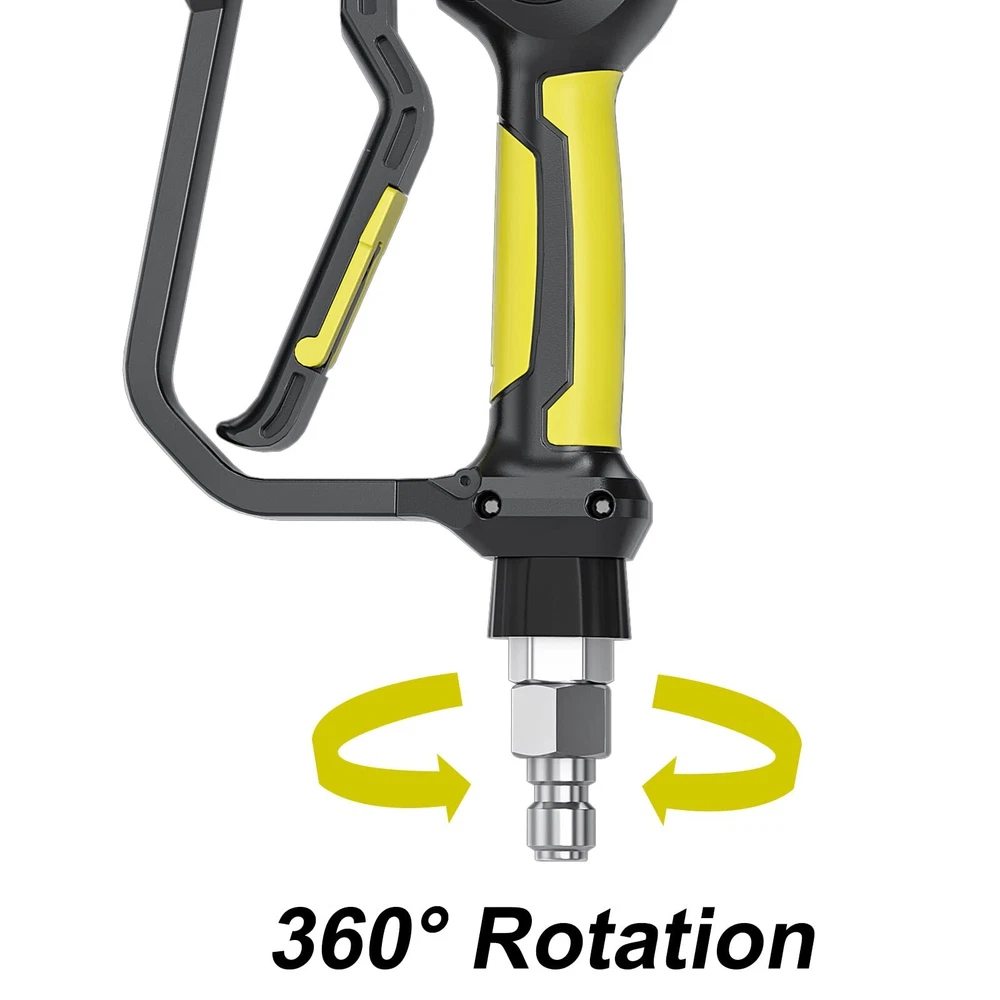 POHIR Pressure Washer Gun 3600 PSI with 3/8'' Swivel Quick Connect Extension Wand, M22 15mm and M22 14mm Fitting 30 Inch 7 Nozzle Tips, Yellow Product Details Material: Stainless Steel, Alloy Steel, Brass Brand: POHIR Item dimensions L x W x H: 3 x 2 x 1 inches Inlet Connection Type: Female Iron Pipe Number of Ports: 1 Valve Type: Ball Valve Manufacturer: POHIR Material: Stainless Steel, Alloy Steel, Brass Brand: POHIR Item dimensions L x W x H: 3 x 2 x 1 inches Inlet Connection Type: Female Iron Pipe Number of Ports: 1 Valve Type: Ball Valve Manufacturer: POHIR Part Number: pressure washer gun Item Weight: 2.5 pounds Product Dimensions: 3 x 2 x 1 inches Item model number: pressure washer gun Size: 3600PSI Gun Kit Color: Yellow Power Source: gas_powered Flow Rate: 8 Gallons Per Minute Hose Length: 1 Inches Batteries Included?: No Batteries Required?: No Date First Available: November 29, 2022 Premium pressure washer gun3600 PSI Max pressure, 8GPM Max Flow. Max temperature of water is rated to 60C / 140 F. With M22-14 and M22-15 fittings and 3/8'' connector for direct connection to 14mm or 15mm or 3/8'' inner diameter pressure hose fittings Compatible pressure washerWith different fittings like M22 14mm fitting,is compatible with Simpson, CraftsmanBriggs Stratton,Karcher, Ryobi pressure washer. M22 15mm fitting is compatible with Sun Joe, Campbell, MI-T-M, AR Blue, Stanley, Cleanforce, Simoniz power washer.Replacement short pressure washer gun fits gas and electric pressure washer with M22 fitting. 16 inch Extension WandThis wand make the total length of the gun 30 inches(If you need to connect the extension wand, please use a wrench to remove the 1/4 quick connector on the gun head). 1/4''standard quick connectorCan be used with any accessory with a 1/4'' plug. Such as nozzles tips, foam cannon, water broom, pivoting coupler, undercarriage cleaner, surface cleaner. Comfortable handle design for easy handling. Package include 1 x 3600psi pressure washer gun,1 x Extension wand,1 x M22 14mm conver fitting, 1 x M22 15mm conver fitting,1 x 3/8" quick connect fitting, 1 x pressure washer nozzle holder, 7 x pressure washer nozzles with different spray angle,Choose different nozzle according to your needs.