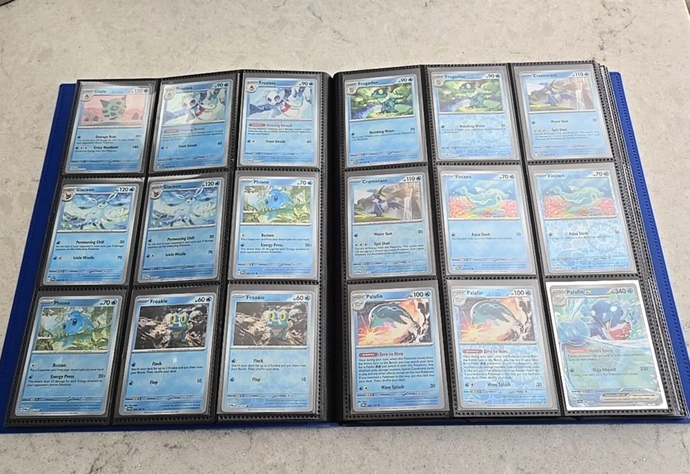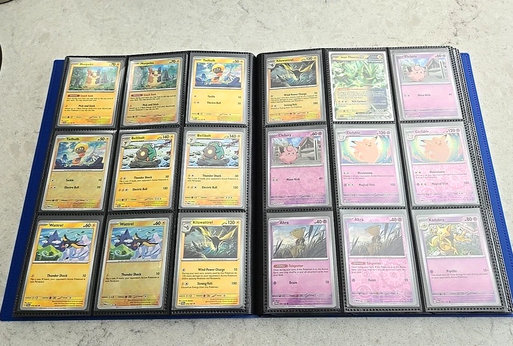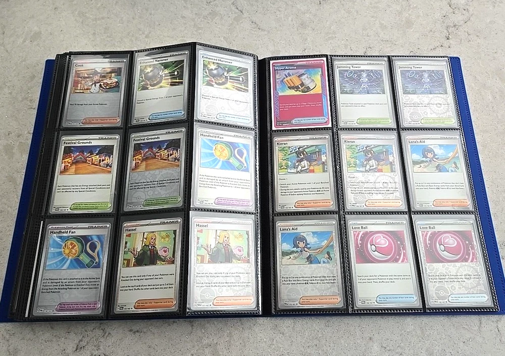 2024 POKÉMON TWILIGHT MASQUERADE BINDER COMPLETE BASE CARD SET This Base Set consists of all cards 001 thru 167 Plus 147 Reverse holo, 8 Basic Energy and 1 Online Live cards! 323 Total Cards One of the best Starter Collection Sets you will find..... Everything included is pictured which includes: - Binder is the BLUE 9-Pocket Gorilla Trading Card Album Folder - 360 Side Loading Pocket brand - Set is organized in order with only one card per binder pocket. - All Common/Uncommon/Rare/Rare Holo/Reverse Holo/Energy cards were individually sleeved with Ultra Pro Card Sleeves before placed in binder pages. - All V, VMAX & PROMO CARDS. are sleeved in a Pokemon ETB Premium Sleeve with Gold backing , then put in binder pages. - Cards have not been played with and are Near Mint or Better condition. This set includes: (147) Commons, Uncommons and Rares cards (147) Reverse holo cards (14) Double rare cards (6) ACE SPEC rare cards (8) Energy cards (1) Live Online 323 Total Cards Everything will be safely packaged and shipped via USPS Priority Mail. Please see photos for condition. The item pictured is the exact item you will receive. If you are condition sensitive please do not hesitate to contact for in depth pictures. If multiple quantities are available, you may not get the exact card shown but one of the same condition. All Pokemon cards are in NM or better condition. Each card will be placed in a top loader Ultra Pro soft Penny standard card sleeve and then placed inside a Superior Quality standard top loader. Then packaged securely to ensure it arrives in perfect condition i n an eBay standard envelope with Free Tracking. Here is our condition scale: POKEMON CARDS: Please see photos for condition. The item pictured is the exact item you will receive. If you are condition sensitive please do not hesitate to contact for in depth pictures. If multiple quantities are available, you may not get the exact card shown but one of the same condition. MINT (MT) - Cards in (MT) condition are in flawless condition. No signs of wear present. NEAR MINT (NM ) - Cards in (NM) condition are close to (M), but can have slight scratching, edge wear, and or chiping. LIGHTLY PLAYED (LP) - Cards in (LP) condition have visible evidence of wear. This could be in the form of minor indents, whitening, nicks, and or scuffs. Eye appeal will be satisfactory. MODERATLEY PLAYED (MP) - Cards in (MP) condition have more advanced signs of whitening, minor to major indents, nicks, light creasing, and or scuffs. Noticeable wear. HEAVY PLAYED (HP) - Cards in (HP) condition have major whitening, indents, nicks, and or scuffs. Creasing and damage is likely to be present on these cards. This condition also includes damaged cards. Disclaimer: You are receiving the item that is listed. Just because something doesn't meet your grading standards doesn't allow for a return. Shipping Options: First Class Mail - $4.49 Orders $19.99 (excluding. sales tax) and under will be sent with free tracking information in an eBay approved white envelope. Orders $20.00 (excluding. sales tax) and over will be sent with free tracking information in a bubble mailer. Priority Mail - $9.99 2-3 Day shipping Orders will be shipped in a flat rate envelope. Priority Express Mail - $29.99 1-2 Day shipping Orders will be shipped in a flat rate envelope. *All orders over $100 will be sent with free insurance. All orders over $250 will be sent with free insurance and signature confirmation.* ebay Store Policies 1) PAYMENT - Please send payment within 24 hours of the closing auction or item. We make every effort to ship items the very next day after payment has been received, If you need more time, please contact us. 2) SHIPPING - See above . We always take great pride in wrapping your items. 3) COMBINE SHIPPING - I s available, we will make every effort to keep shipping costs as low as possible in every situation, and will give you options for shipping, where applicable. 4) INVOICES - W e do print invoices with your shipment. 5) PURCHASES - If you're unhappy with your purchase, please contact us first so we can rectify the situation. We treat our customers with the up most respect. 6) QUESTIONS - Please ask first before bidding. We try to take the best pictures to represent and item. With coins, grading is an art and we do our best to grade correctly, so please bid accordingly. 7) PROMISE - Your satisfaction is guaranteed, and we offer a no questions asked return policy within 30 days of purchase. Please see our feedback, we are very easy to work with and contact us for any reason if you are not happy with any purchase. Buy with confidence! USA Seller, ship fast, safely, and over 3800+ positive Feedback on our eBay Page! ____________________________________ Thank you for shopping with Sacagawea Dollar Store! We greatly appreciate your feedback!