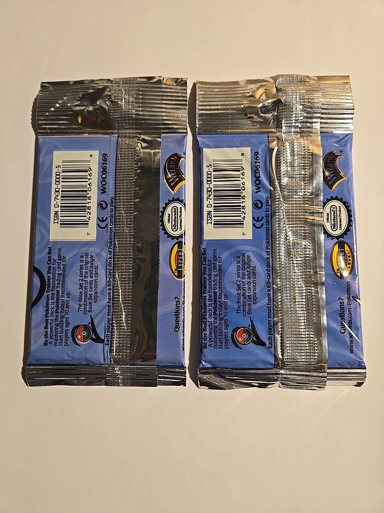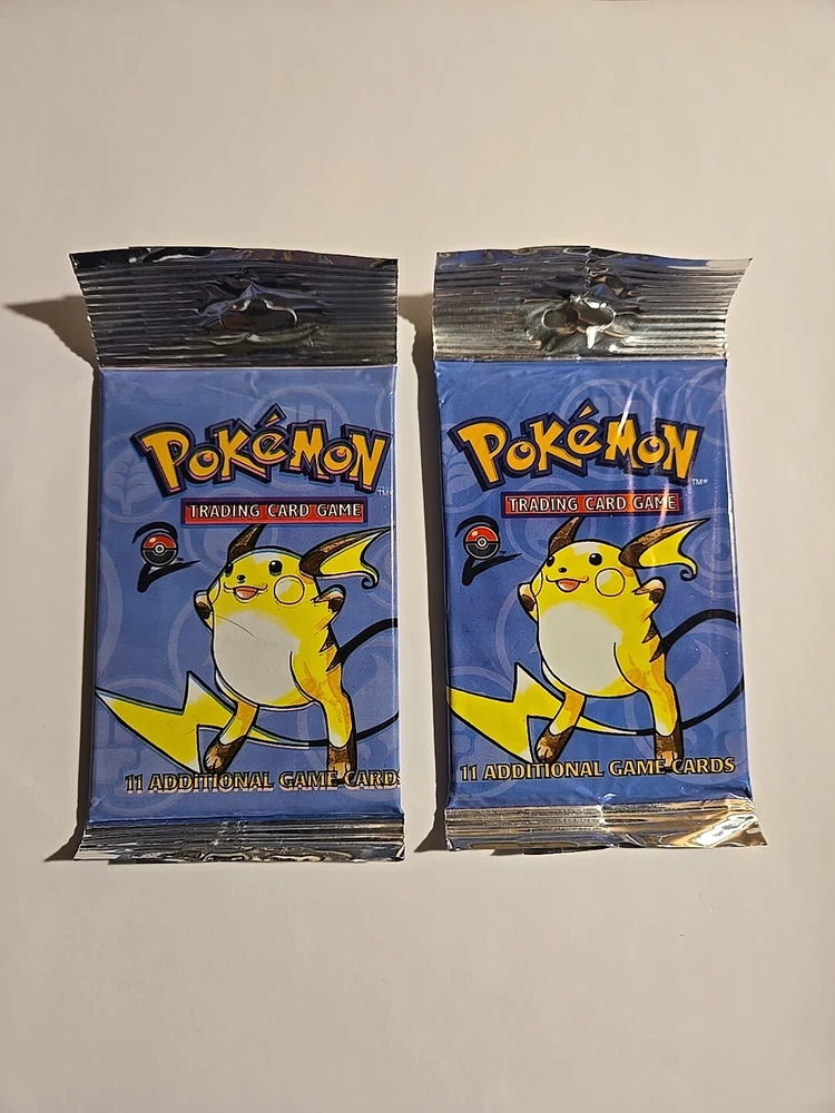 POKEMON BASE SET 2 BOOSTER PACKS(2) RAICHU FACTORY SEALED LONG CRIMP WOTC 2000