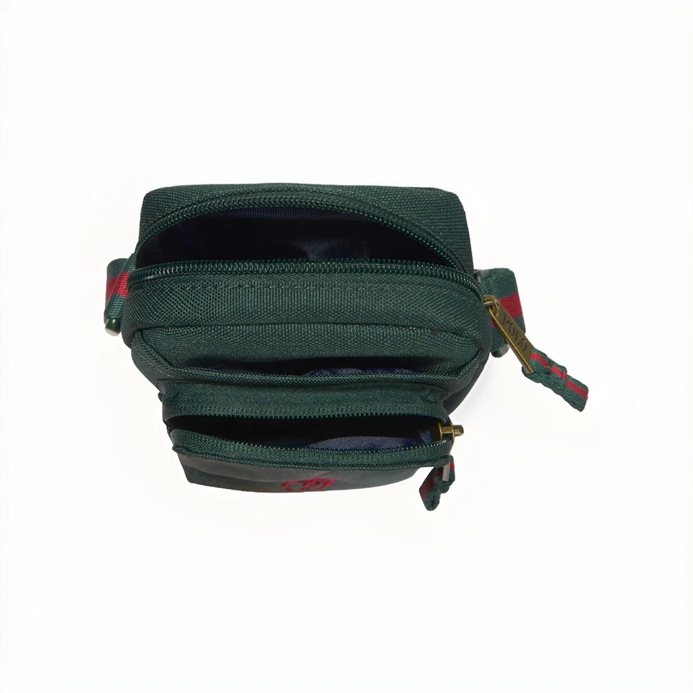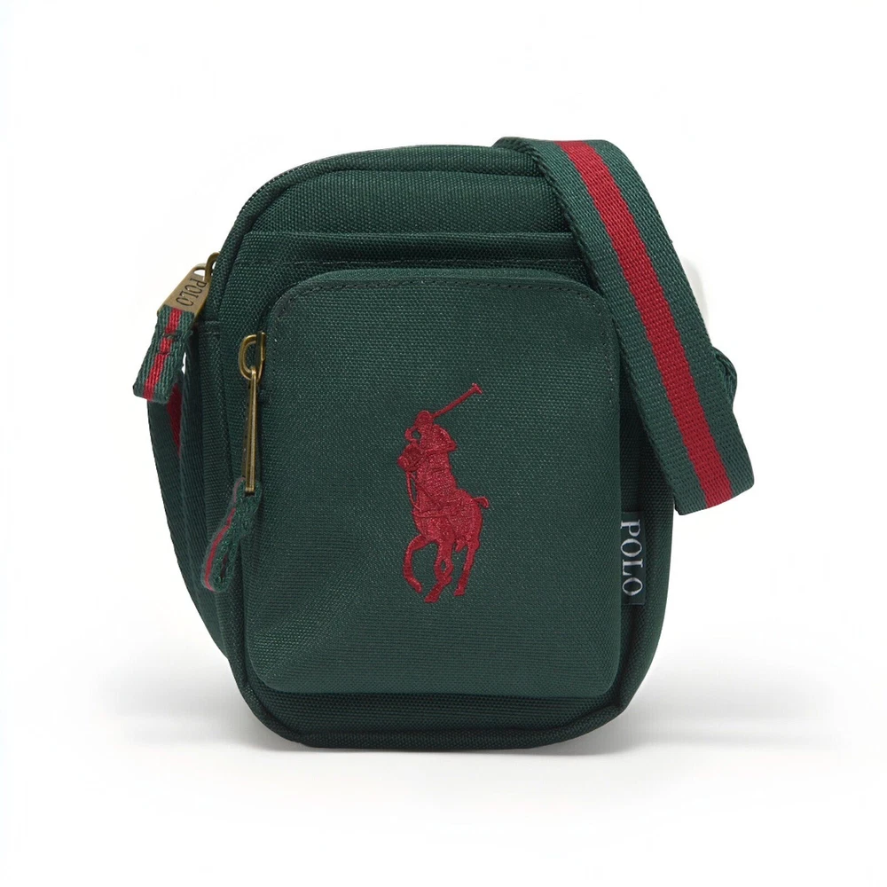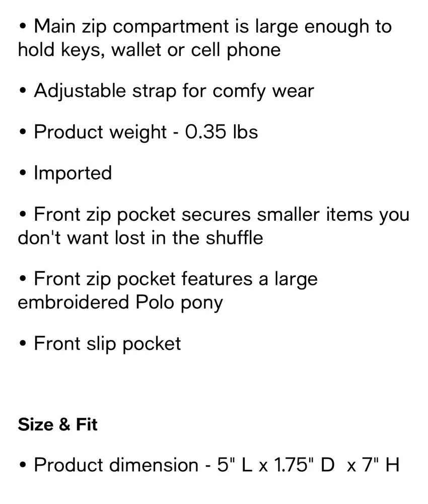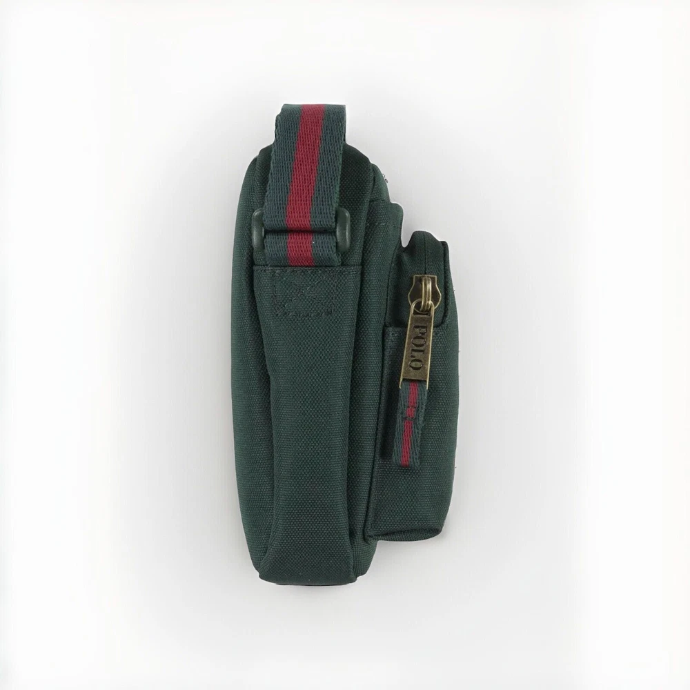 This Polo Ralph Lauren belt bag and fanny pack is the perfect addition to any festival-goer's outfit. With its vibrant green color and bold logo design, this bag is sure to turn heads. Made from durable polyester, it is designed to withstand the elements and keep your essentials safe and secure. The bag features a spacious interior with enough room to carry all your festival essentials, including your phone, wallet, and sunscreen. Its adjustable strap allows you to wear it comfortably around your waist, while the zip-top closure keeps your belongings secure. Whether you're heading to a music festival or a beach party, this Polo Ralph Lauren bag is the perfect accessory to complete your look.