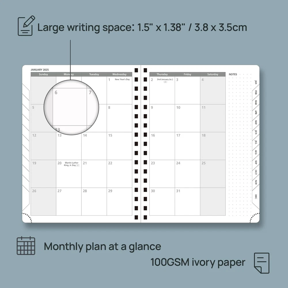 POPRUN 2025 Planner 6.5" x 8.5" with Hourly Schedule & Vertical Weekly Layout - 2025 Weekly Planner for Time Management, Monthly Tabs, Pen Holder, Spiral Bound,Leather Soft Cover - Blue Green 2 PAGES PER WEEK:Lay flat week-to-view on 2 pages, this weekly planner (Jan 2025 - Dec 2025) presents spacious everyday planning with hourly schedules for your appointments, which makes your busy daily routines organized. VERTICAL HOURLY LAYOUT: The weekly layout includes ample space to write (from 7:00am to 8:00pm). A week is laid to view on 2 pages. Each monthly layout contains an overview of the month and a notes section. QUICK SEARCH FUNCTION: Flexible " TODAY " Ruler and Monthly tabs allow you to quickly browse and locate the current date. Besides; The Tear-Off Corners and Bookmark Ribbons are added to mark any wanted page of your choice. EXTRA FUNCTION PAGES: This 2025 weekly planner also contains "2025-2026 Yearly Overview" Page + "2025-2026 Holiday & Calendar" Page + Monthly Expenses Page+ Contact & Password Pages + 7 Dotted Notes Pages for jotting down your ideas, thoughts or any other happy things in detail. FSC THICK PAPER: The use of ecological 100GSM paper from sustainable forests makes it silky smooth to write on and ink resistant, bringing you the ultimate writing experience. 2 PAGES PER WEEK:Lay flat week-to-view on 2 pages, this weekly planner (Jan 2025 - Dec 2025) presents spacious everyday planning with hourly schedules for your appointments, which makes your busy daily routines organized. VERTICAL HOURLY LAYOUT: The weekly layout includes ample space to write (from 7:00am to 8:00pm). A week is laid to view on 2 pages. Each monthly layout contains an overview of the month and a notes section. QUICK SEARCH FUNCTION: Flexible " TODAY " Ruler and Monthly tabs allow you to quickly browse and locate the current date. Besides; The Tear-Off Corners and Bookmark Ribbons are added to mark any wanted page of your choice. EXTRA FUNCTION PAGES: This 2025 weekly planner also contains "2025-2026 Yearly Overview" Page + "2025-2026 Holiday & Calendar" Page + Monthly Expenses Page+ Contact & Password Pages + 7 Dotted Notes Pages for jotting down your ideas, thoughts or any other happy things in detail. FSC THICK PAPER: The use of ecological 100GSM paper from sustainable forests makes it silky smooth to write on and ink resistant, bringing you the ultimate writing experience. Shipping from the USA All of our products are shipped from the USA, ensuring quick delivery to your destination. Payment We offer the following payment methods: PayPal, credit card, bank transfer, and eBay's secure payment system. Free Shipping & Free Returns Shipping within the USA is FREE. Additionally, any return is absolutely free for you. Risk-Free Purchase You have the option to return an item within 30 days without any justification. We cover the return shipping costs! Fast Shipping We ship immediately upon receipt of payment. Generally, the package is delivered within 2-3 days in the USA. If it takes longer, we will contact you. Quality and Costs Made in Europe, USA, China No customs fees or additional charges Total satisfaction guarantee Invoice with declared VAT available upon request in .pdf format Feedback Your feedback is very important to us. After you pay for your purchase, you will automatically receive positive feedback from us.