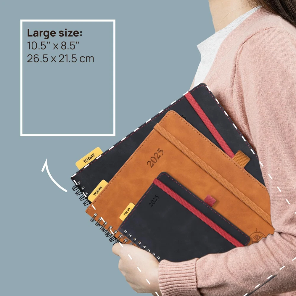 POPRUN 2025 Planner Weekly Notebook Calendar [Large Size 8.5'' x 10.5''] - Agenda 2025 Appointment Book with Monthly Tabs, Spiral Soft Cover, Inner Pocket, 100 GSM - Brown 1 PAGES PER WEEK & HORIZONTAL LINE PAGE: This weekly planner (Jan. 2025 - Dec. 2025) , ample room (Large 8.5'' x 10.5'') for writing is ensured with a generous weekly page layout and line page for each week. QUICK SEARCH FUNCTION: Monthly tabs allow you to quickly browse and locate the current day. Besides, Tear-Off Corners and Bookmark Ribbons are added to mark any wanted page of your choice. EXTRA PAGES - This 2025 weekly planner also contains "2025-2026 Yearly Overview" Page + "2025-2026 Holiday & Calendar" Page + 3 Contact Pages +1 Password Page +53 Horizontal line page + 7 Dotted Notes Pages for jotting down your ideas, thoughts or any other happy things in detail. THICK PAPER – The use of premium 100GSM acid-free ivory paper, makes it silky smooth to write on and ink resistant, bringing you the ultimate writing experience. 【SUSTAINABLY CRAFTED PLANNER FOR A GREENER PLANET】Our POPRUN planners is crafted using sustainable paper, ensuring a positive impact on the environment. Join us in making a choice that supports both your planning needs and the health of our Earth! 1 PAGES PER WEEK & HORIZONTAL LINE PAGE: This weekly planner (Jan. 2025 - Dec. 2025) , ample room (Large 8.5'' x 10.5'') for writing is ensured with a generous weekly page layout and line page for each week. QUICK SEARCH FUNCTION: Monthly tabs allow you to quickly browse and locate the current day. Besides, Tear-Off Corners and Bookmark Ribbons are added to mark any wanted page of your choice. EXTRA PAGES - This 2025 weekly planner also contains "2025-2026 Yearly Overview" Page + "2025-2026 Holiday & Calendar" Page + 3 Contact Pages +1 Password Page +53 Horizontal line page + 7 Dotted Notes Pages for jotting down your ideas, thoughts or any other happy things in detail. THICK PAPER – The use of premium 100GSM acid-free ivory paper, makes it silky smooth to write on and ink resistant, bringing you the ultimate writing experience. 【SUSTAINABLY CRAFTED PLANNER FOR A GREENER PLANET】Our POPRUN planners is crafted using sustainable paper, ensuring a positive impact on the environment. Join us in making a choice that supports both your planning needs and the health of our Earth! Shipping from the USA All of our products are shipped from the USA, ensuring quick delivery to your destination. Payment We offer the following payment methods: PayPal, credit card, bank transfer, and eBay's secure payment system. Free Shipping & Free Returns Shipping within the USA is FREE. Additionally, any return is absolutely free for you. Risk-Free Purchase You have the option to return an item within 30 days without any justification. We cover the return shipping costs! Fast Shipping We ship immediately upon receipt of payment. Generally, the package is delivered within 2-3 days in the USA. If it takes longer, we will contact you. Quality and Costs Made in Europe, USA, China No customs fees or additional charges Total satisfaction guarantee Invoice with declared VAT available upon request in .pdf format Feedback Your feedback is very important to us. After you pay for your purchase, you will automatically receive positive feedback from us.