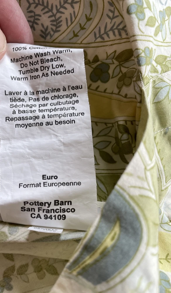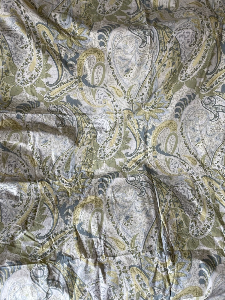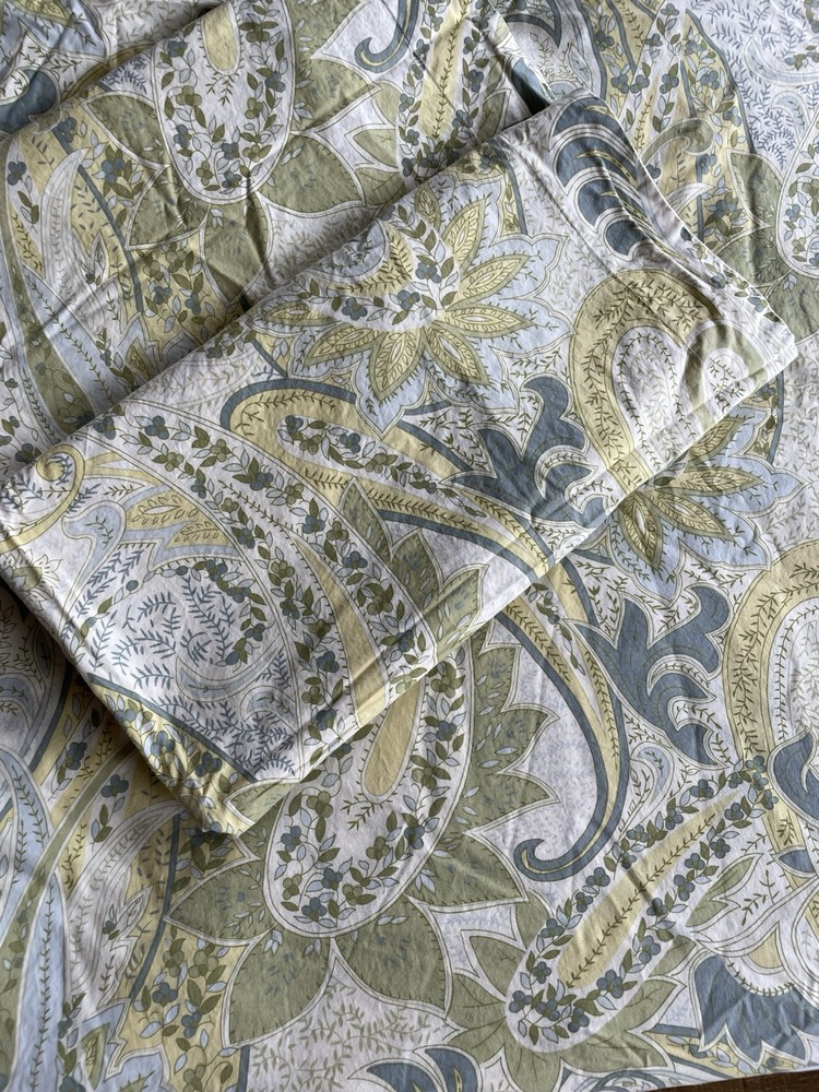 King size Pottery Barn duvet cover in Sienna Paisley and 2 matching Euro pillow covers. All in great condition, very gentle use with no stains/holes/tears. The duvet cover has ties in corners to secure the duvet; all buttons present on closure.
