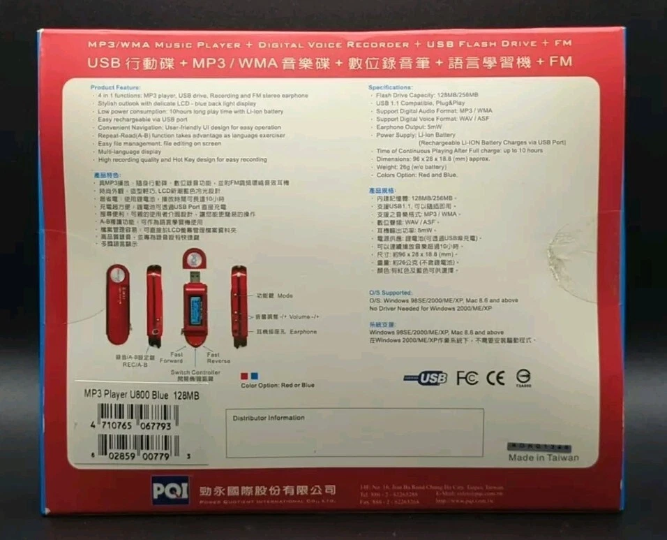 Item is listed as "new open box" instead of "new" due to the appearance of the box. The box has minor wear and tear. The back of the box is slightly bowed. The factory seal is still intact, and one of the seals has some slight edge peeling. The PQI Joy U 800 MP3/WMA Music Player is the perfect device for music lovers on the go. With its USB connectivity, you can easily play your favorite tunes from your computer or other USB devices. This music player also features a digital voice recorder and flash memory recording capabilities, making it ideal for use as a dictaphone and voice recorder. The brand PQI is known for its high-quality office equipment, and the Joy U 800 is no exception. With its sleek design and powerful features, this music player is perfect for use in any office or home setting. Whether you need to record meetings, take dictation, or just enjoy some great music, the PQI Joy U 800 has you covered.