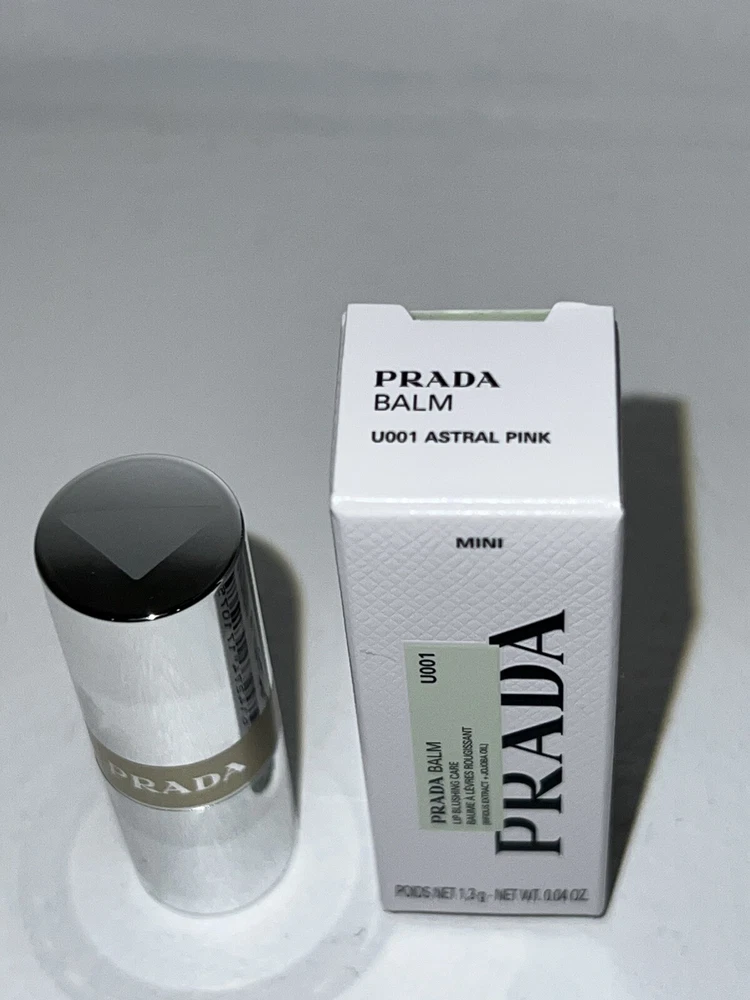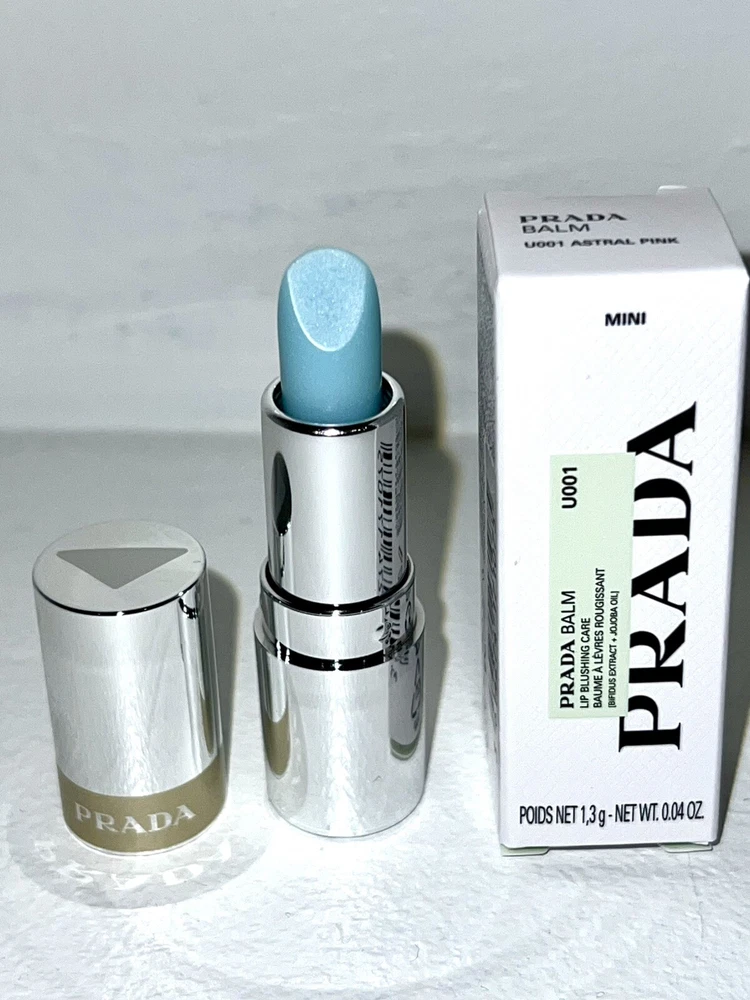 PRADA Astral Pink Mini (Blue) Balm Lip Blushing Care U001 0.04 Oz 1.3g NIB New in Box This is the trending popular balm that everyone wants! The one that celebrity Sabrina Carpenter wears! It changes from blue to pink on your lips with your own PH Level! Contains bifidus extract & jojoba oil & repairs the lips barrier in 2 weeks. The larger size sells for $50 in stores & is sold out everywhere!