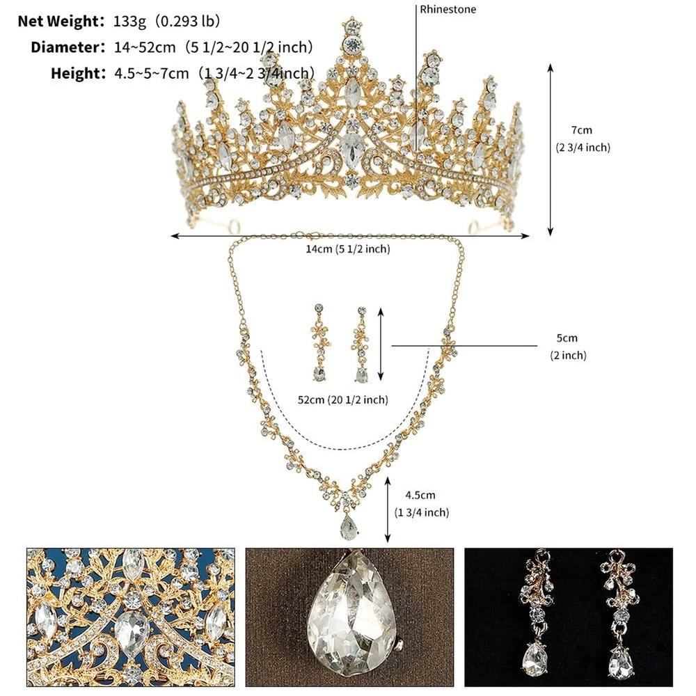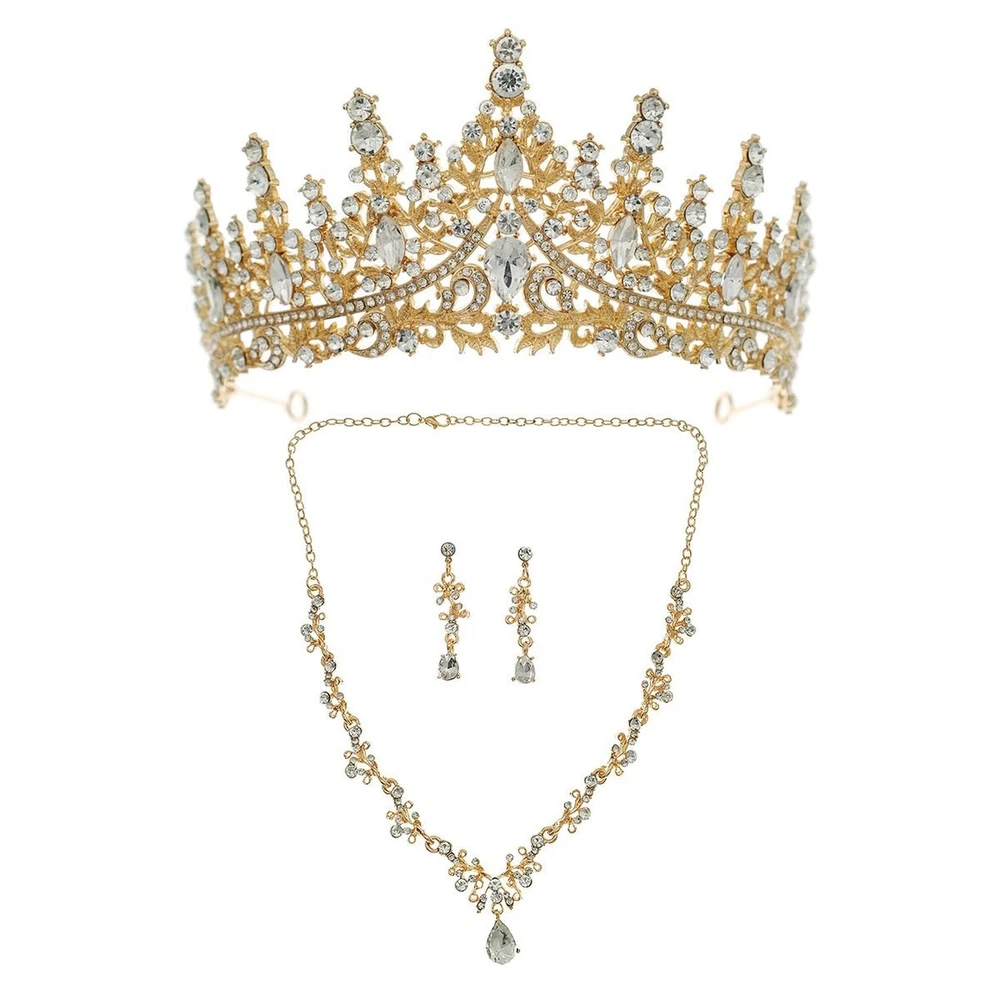 PRINCESS BRIDE Women Jewelry Set Tiara Set with Earrings and Necklace Gold Gothic Rhinestone Bridesmaid Jewelry Set for Wedding Costume Hair Accessories Product Details Color: Gold Brand: PRINCESS BRIDE MPN: EL-CLO-TIARA SET-EIL0004 UPC: Does not apply EAN: Does not apply Department : womens Date First Available : July 9, 2024 Brand, Seller, or Collection Name: PRINCESS BRIDE Metal stamp: no metal stamp Metal: Aluminum Material: Metal Gem Type: Rhinestone Item Length: 0.39 inches Clasp: Lobster Clasp