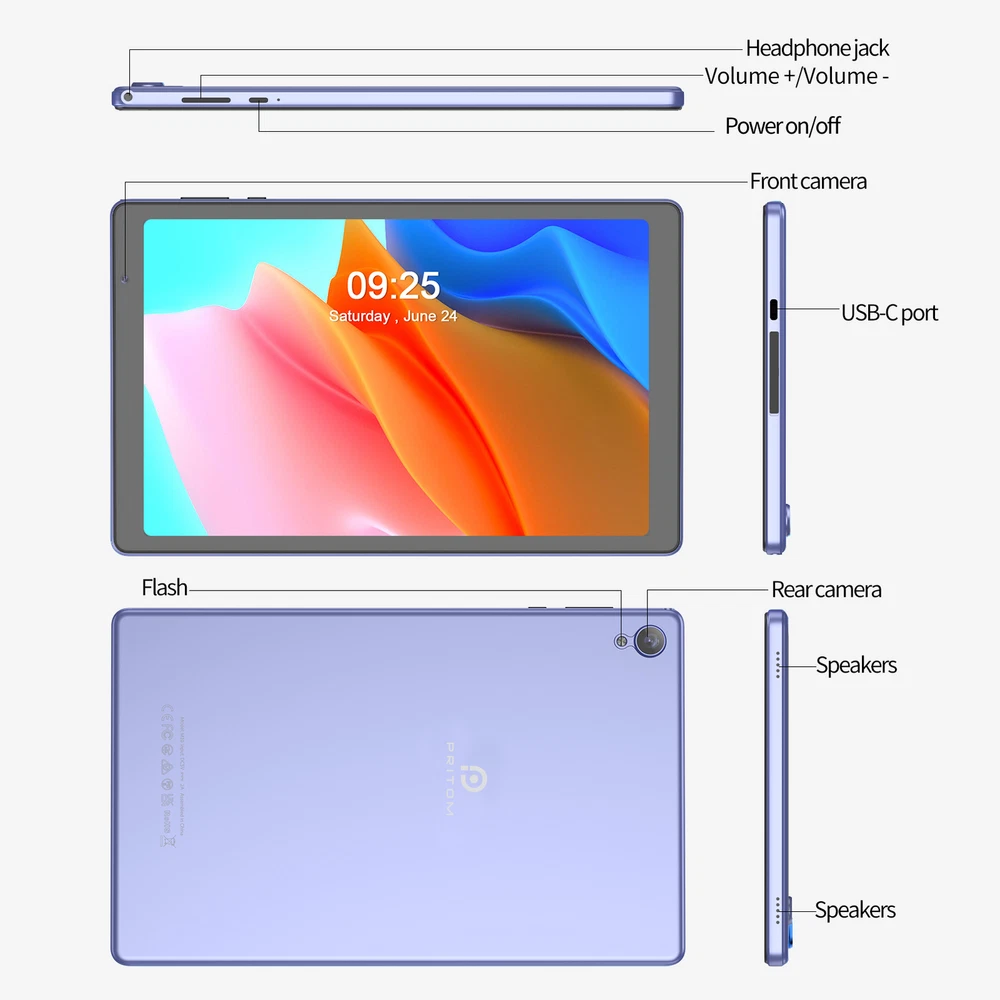 Designed for Entertainment The 10 inch tablet came with the high-performance overall configuration. Delivers the perfect mix of power, portability and performance - flawlessly running games and apps, as well as quicker loads of web pages, Free thousands of apps. Greater Battery Capacity The tablet equipped with a large 6000mAh battery, that allows you to enjoy up to 8 hours of mixed use. You can use your 10'' tablet to spend time while traveling or moving. It is really a good companion for your leisure and entertainment. Quality Audiovisual Experience The android tablet PC adopts a 1280 x 800 brilliant HD IPS display , Enjoy wide screen movies and games with wide viewing angles, less glare, and more brightness while you watch. And with two loudspeakers, can enjoy clear sound quality when you watch videos or play games THE M10 TABLET CASE is not incolude . To purchase pls click here: https://www.ebay.com/itm/395331327223 Specification PRITOM M10 10 Tablet Brand PRITOM CPU Processor SC7731E, Quad core A7 1.3Ghz Operating System Android 10 Screen 10.1inch 1080*800 IPS RAM 2GB Storage Size 32GB External Memory Support TF card up to 1TB (not included) Battery Capacity 5000mAh Connectivity Type Wi-Fi Camera Front 2.0MP, Rear 8.0MP with Flash Light Input/Output Ports 3.5mm Headphone*1, USB-C port*1, TF Card Slot*1 Android Market Yes, You can download thousands of APPS from the Google AC Power Adaptor (Input)AC 100-240V 50/60Hz; (Output)DC 5V, 2A Dimensions (9.6 x 6.3 x 0.27)" / (24.4 x16 x 0.7)cm (L x W x H) Weight 1.05lb Package included 1 x M10 Tablet PC without case 1 x HD protective film (Pasted) 1 x US Standard Charger 1 x Quick Start Guide 1 x USB Cable