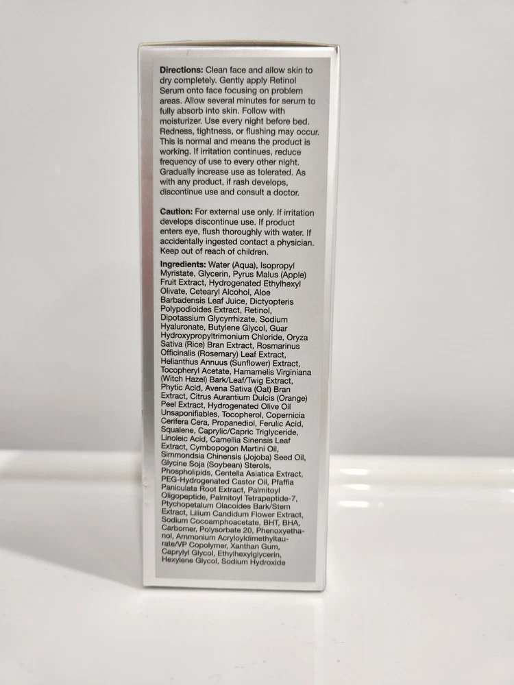 PROGENIX RETINOL ANTI-WRINKLE FACE SERUM - 1 FL OZ TARGETS DEEP WRINKLES AND DARK SPOTS! Progenix Professional Skin Care Retinol Anti-Wrinkle serum will target those deep wrinkles that other serums and anti-aging creams havent been able to cover. This anti-aging serum with retinol, Jojoba Oil, and Aloe Vera is gentle on the skin but tough on your wrinkles, dark spots, and fine lines. Can be used with other face moisturizers and creams, and oils. A great nighttime repair treatment, this best-selling serum that really works will leave you amazed when you wake up in the morning! This face serum with retinol from Progenix combines the best anti-aging ingredients to help combat the signs of aging. Encapsulated Retinol effectively minimizes the appearance of deep wrinkles, fine lines, age spots, and dark spots. Within just 6 Weeks this serum will dramatically reduce the appearance of wrinkles, sagging pores and sun spots. Anti-wrinkle face serum with retinol also contains Jojoba Oil & Aloe Vera to help hydrate and moisturize the skin. Hyaluronic Acid hydrates and plumps the skin to give your complexion a healthier and glowing appearance. Gotu Kola preserves and restores youthfulness to the skin by firming and tightening your skin. This serum can be used as a nighttime serum to help combat aging while you sleep. Wake up daily to visibly softened wrinkles and smoother looking skin. Can be used with other facial moisturizers or oils. Some tightness, flushing or redness may occur when you first use Retinol. This is normal and means its working. Use an additional moisturizer or reduce frequency to every other night until skin adjusts to powerful renewal ingredients. Sunscreen is highly recommended while using products with Retinol Paraben free. Safe alternative to injections. Not tested on animals. Made in USA. NEW IN ORIGINAL FACTORY SEALED BOX... GOOD LUCK!