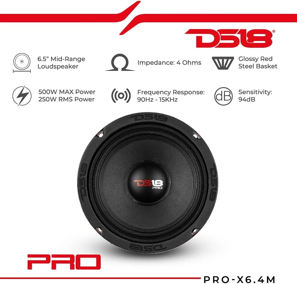 Store New Arrivals Add to Favorite View Feedback Contact PRO-X6.4M Loudspeaker - 6.5", Midrange, Red Aluminum Bullet, 500W Max, 250W RMS, 4 Ohms - Premium Quality Audio Door Speakers for Car or Truck Stereo Sound System (1 Speaker) Description Item model number PRO-X6.4M Style 4-Ohms Signal-to-Noise Ratio 97 dB Number of Items 1 Power Source Corded Electric Pattern 6.5-Inches Control Method Voice Warranty Type Limited Recommended Uses For Product Door Other display features Speakers Unit Count 1.0 Count Speaker Size 6.5 Inches Material Steel, Kapton Includes MP3 player? No Package Type Standard Packaging Model Name PRO-X6.4M Impedance 4 Ohm Special features Midrange Door Speaker Controller Type Voice control Included Components mid range speaker Subwoofer Diameter 6.5 Inches Subwoofer Connectivity Technology Wired Speaker Maximum Output Power 500 Watts Item Weight 1.9 pounds Connectivity Technology Wired Audio Driver Type Dynamic Driver Special Feature Midrange Door Speaker Series Number 64 Mounting Type Car Mount Color Classic Surround Sound Channel Configuration 1.0 Speaker Type Mid-Range with Bullet Is Waterproof FALSE Audio Output Mode Stereo Audio Driver Size 6.5 Inches Product Dimensions 6.5"D x 6.5"W x 2.44"H MIDRANGE THAT HANDLES IT ALL - A mid-range driver that can answer the call to handle the most significant part of the audible sound spectrum. A speaker that sounds great with just instrumentals and, even better with vocals. POWER YOU CAN COUNT ON - The PRO-X6.4M delivers an impressive 500W Max Power with 250W RMS at 4 Ohms, enough to tackle a full range of audio. HIGH-QUALITY VOICE COIL - 1.5” high-temperature CCAW voice coil can handle extreme heat and maintain its structural integrity meaning long life out of your speakers. TAKE YOUR SYSTEM TO THE NEXT LEVEL - Get the most out of your system by upgrading to a speaker that gives you everything you're missing from your stock stereo. Discover what a true midrange speaker can do for you. 6.5" LOUDSPEAKER WITH FERRITE MAGNET - Settle for nothing but the best with High-Strength Ferrite magnets that produces a wider range of tones and can handle tremendous power at high volumes. During the focused R&D period of perfecting the PRO-EXL line, DS18 identified the opportunity to spawn off another line since there was a division amongst competition audiophiles and concert/"voceteo" audiophiles. Therefore, DS18 created the PRO audio line, which features a wide variety of midranges that produce concert-like sounds that will knock the wind out of you! ABOUT US We offer the best prices around on high quality products. Our E-store includes media such as books, movies, music and games while offering electronics, toys, sporting apparel, clothing, tools, general home, garden items and more. SHIPPING We are always working hard to ensure your package arrives as soon as possible. Please understand that some factors like weather, high postal traffic, and the performance of shipping companies are outside of our control. We offer free shipping to the lower 48 states and ship within 2 business days of payment, usually sooner. We do not accept P.O. Boxes. Please provide a physical address. For shipping outside of the continental USA, we only use eBay's Global Shipping Program.The item is shipped to KY and then sent to the rest of the world. International customers are responsible for all duties and taxes. Continue to check out in order to calculate costs for shipping the item to your country. Messages regarding eBay's Global Shipping Program MUST be directed at eBay EXCLUSIVELY. RETURNS We offer a 30-Day Return Policy on items which you are not completely satisfied with. You have the option for a full-refund or an exchange of the item. No returns are available on items shipped outside of the USA. PAYMENT We accept PayPal. CONTACT US This page content is yet to come Please ad us to your favorite seller and visit again later Thank You CUSTOMER SATISFACTION We try our very best to make sure every customer is completely satisfied. If there's a problem, message us! We're happy to help. WE ACCEPT Copyright © 2021 AutoDS. | All Rights Reserved
