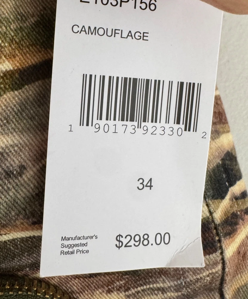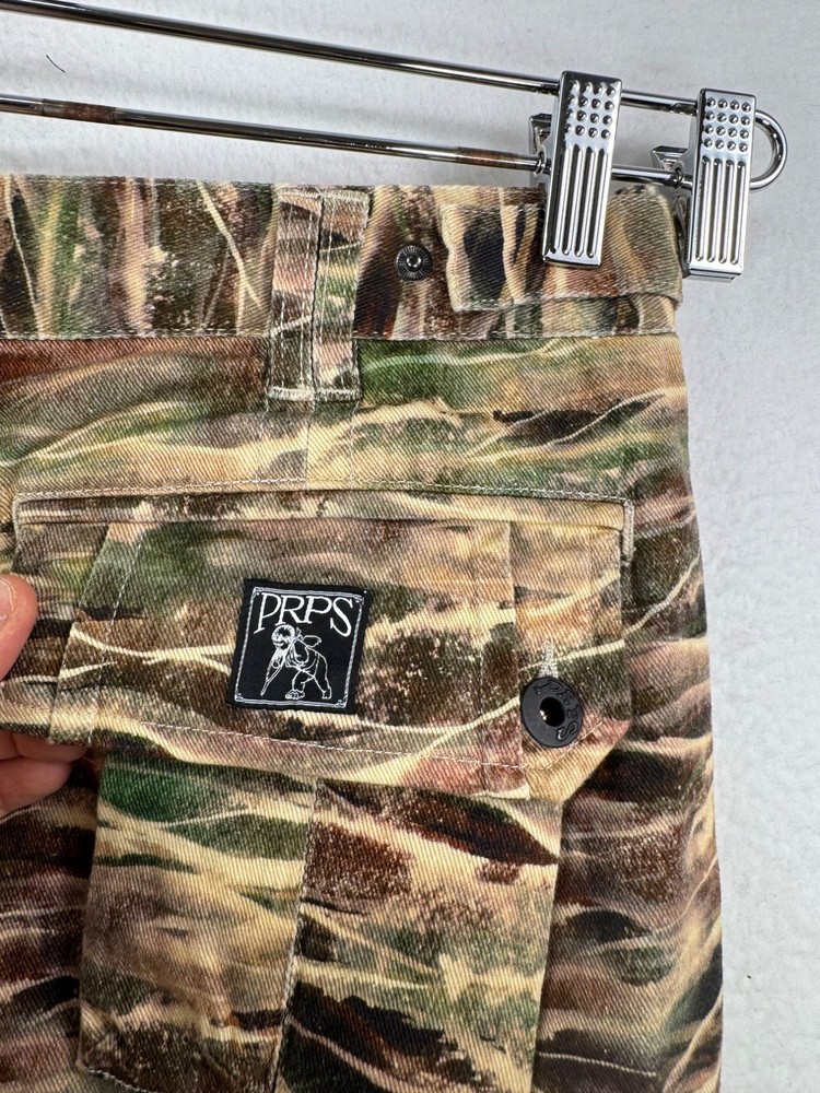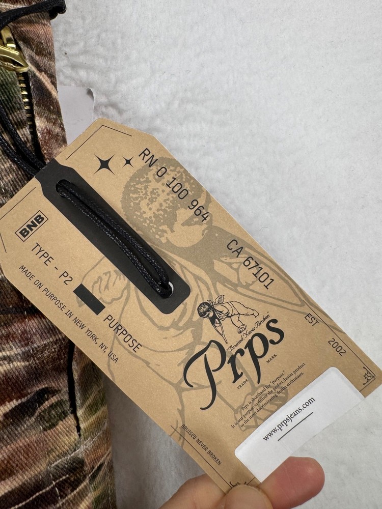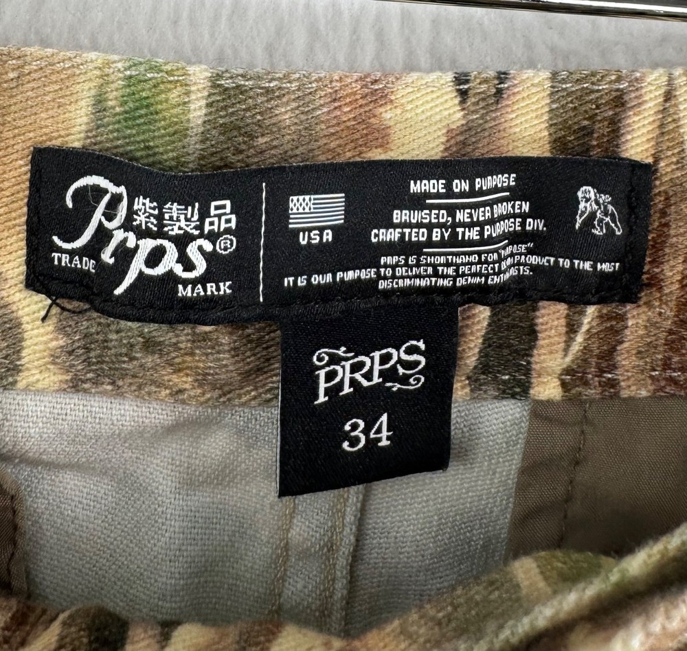 New with tag / retails $298 A camo print covers these straight-leg pants from Prps. Zip fly with button closure Side seam pockets Belt loops 97% cotton/3% spandex Machine wash Flat lay: waist 18.5" rise 11" Inseam 34" straight leg, punk, camo, street wear, goth, Y2K, 90s, retro, classic, cargo, utility, urban, trendy, vintage, grunge, casual, alternative, rebellious PLEASE check all flat lay measurements and listings carefully BEFORE PURCHASE!I put in a lot of work into hand measuring and researching each items as best as I can! I hand measure on flat surface on a table and proved measurement accordingly. I usually include flat and stretched out measurement as well. Thank you so much for your consideration! Please note that: RETURN SHIP FEE IS PAID BY THE BUYER! If you are not too familiar with flat lay measurements, I recommend taking a measurement of your own clothes that you feel comfortable and compare with the measurement I provide. For returns: The items MUST BE IN SAME CONDITION AS SOLD for full refund! We all don't like returns and let's work together to minimize! Please note that RETURNS ARE NOT ACCEPTED FOR NEW WITH TAG OR NEW WITHOUT TAG ITEMS!