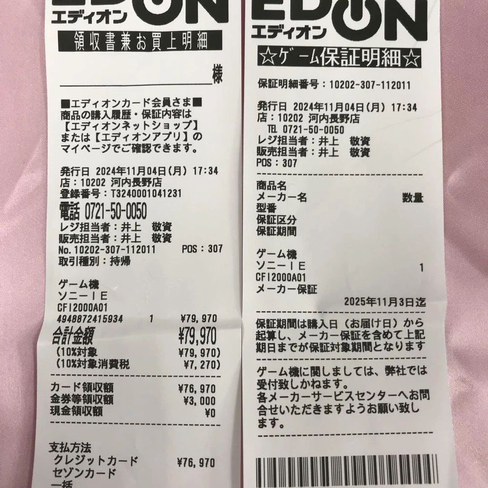 PS5 slim console with disc drive receipt