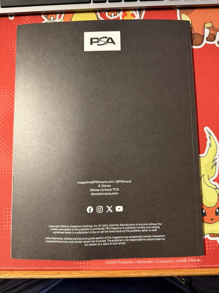 This PSA Magazine December 2024 is a must-have for pop culture and TCG collectors. Featuring the Olaf Variant From Frozen and the Lorcana Olaf TCG Edition, this magazine is a first issue and part of the collector's club members. It is a special edition, collector's edition, and limited edition all in one, making it a valuable addition to any collection. With topics ranging from Disney to Pokémon, this magazine is illustrated and contains tips, tricks, and stories from the world of pop culture. It is a great Christmas gift for any fan of pop culture and TCGs. This magazine is in English, has a monthly publication frequency, and is published by PSA. Get your hands on this unique and rare magazine today!