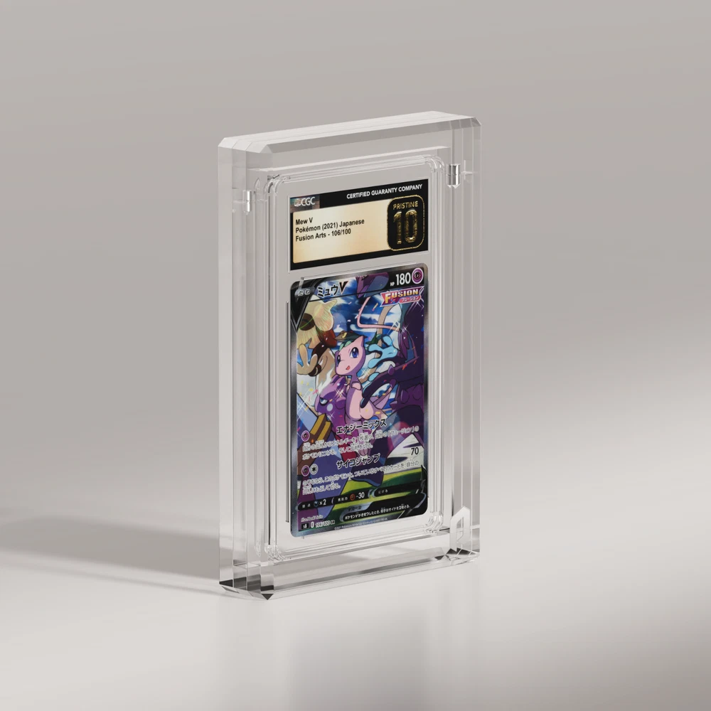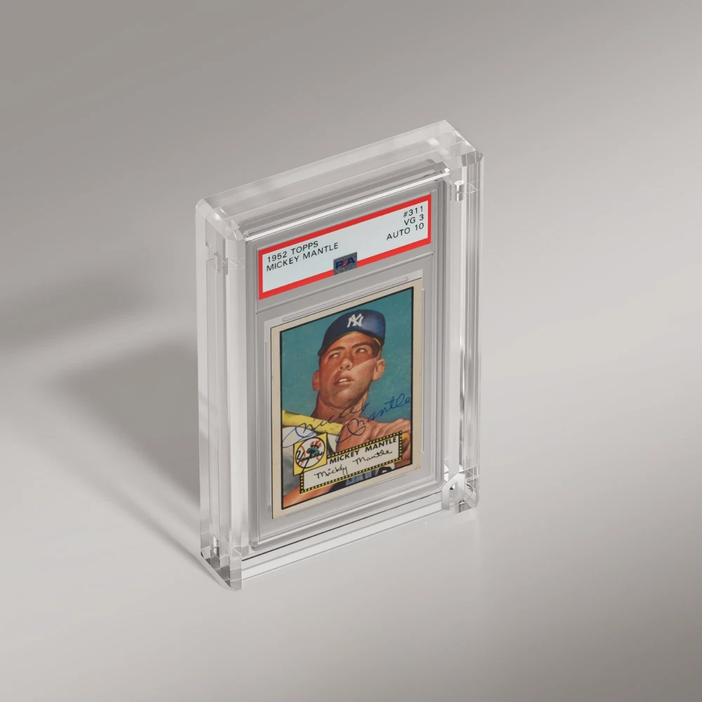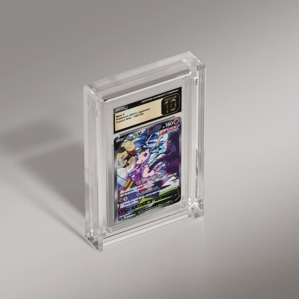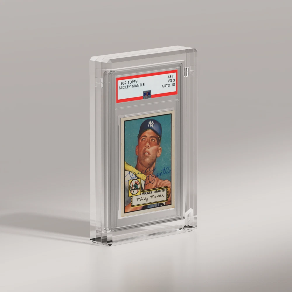 Phantom Display (PSA/CGC Ultra - Prism) Product Overview Our Phantom Display Acrylic Card Case is designed to protect and showcase your prized trading cards, sports cards, and graded slabs from PSA, BGS, or CGC. Made from crystal‐clear, UV‐resistant acrylic, this case prevents harmful sunlight exposure while enhancing your display with a sleek, professional look. Whether you’re collecting baseball cards, basketball rookies, or Pokémon rares, trust Phantom Display for premium protection and top‐tier presentation. Key Features: UV Protection: Blocks 99.6% of harmful UV rays to keep card colors vibrant and protected. Durable Acrylic Construction: Offering substantial physical protection against accidental drops and scratches. Museum-Grade Transparency: These handcrafted, crystal acrylic cases provide museum-grade transparency. Sizing: Fits standard sized PSA graded card slabs. Product Specs: Frame Thickness: 10mm UV Resistance: 99.6% Visible Light Transmission: 92.6% Material: Crystal Acrylic, 2x Neodymium Magnets Weight: 390-410 grams (13.75-14.5 oz) Edge Style: Prism (See additional listings for other variations) Compatibility: GradedGuard or Slabmags are not compatible with this specific display. You can find our compatible displays in our Store by searching for GradedGuard or Slabmags x Phantom Display acrylics. Why Choose Phantom Display? Protective UV acrylic for long‐term preservation and display. Ultra premium crystal acrylic for the highest level of transparency and clarity. Sleek design to highlight your collection. Perfect for sports or trading card enthusiasts. 30‐day return policy & fast, reliable shipping. Acrylic Care: Never use solvents to clean displays. Cleaning products that include alcohol, acetone, or ammonia (even glass window cleaners) will cause significant surface damage/cracking. Only use safe, Phantom Display-approved cleaners available in our shop. Shipping & Return Policy: We accept returns on all unopened and unused products for up to 30 days. If the item arrives back to us in a condition that would render us unable to sell that item again, we will not be able to accept the return. If you have any questions or concerns whatsoever, please do not hesitate to contact and we will be happy to make you feel confident and comfortable with your purchase!