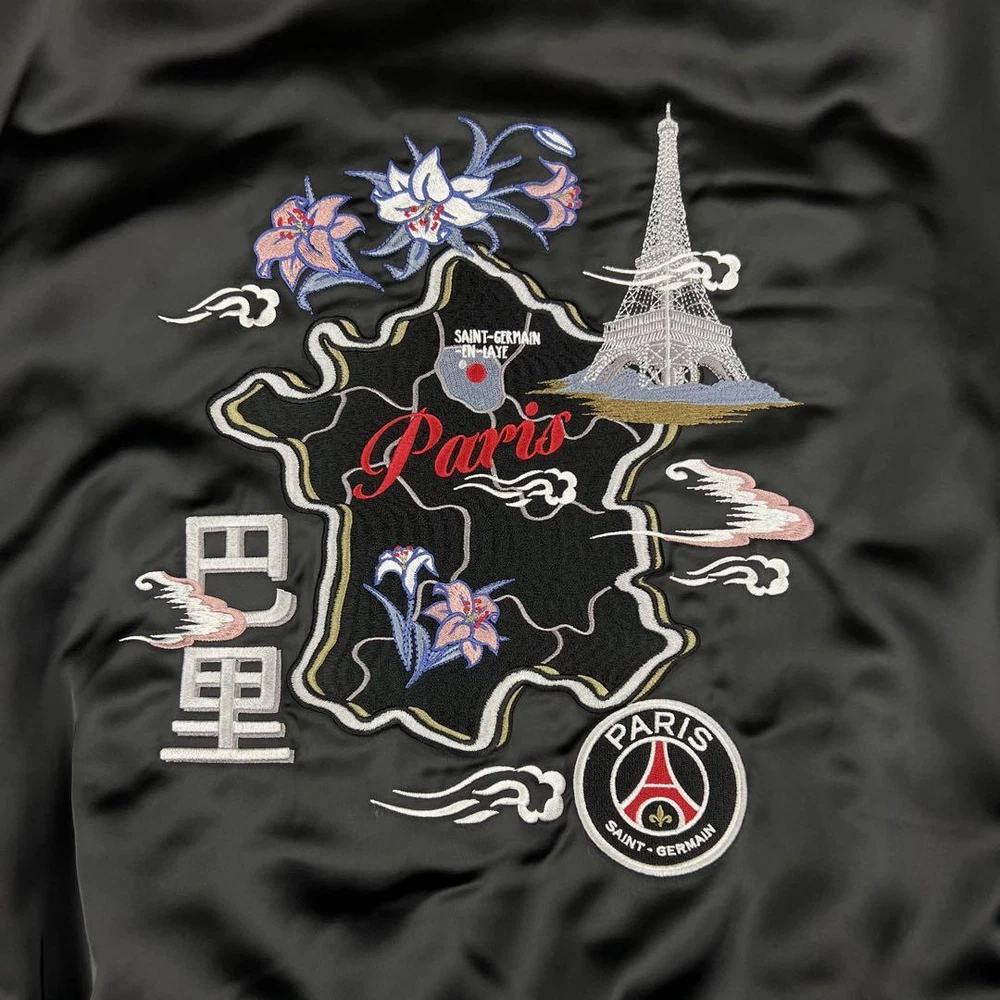 PSG Paris Saint-Germain Sukajan Black Embroidery Jacket Map Eiffel Tower M Key Features **TAORAI Men's PSG Paris Saint-Germain Sukajan Blouson Jacket** - **Brand**: TAORAI - **Product Type**: Sukajan Blouson Jacket - **Model**: Paris Saint-Germain Edition - **Color**: Black - **Material**: 98% Polyester, 2% Polyurethane - **Size**: M (Oversized fit) - Shoulder Width: Approximately 58 cm - Chest Width: Approximately 66 cm - Length: Approximately 68 cm - Sleeve Length: Approximately 60 cm - **Features**: - Front embroidered "Paris" logo - Back features a map of Paris and the Eiffel Tower with PSG logo - Front closure with hooks - **Condition**: Used, but no noticeable scratches or stains. Please refer to photos for details. This rare model is a collaboration with Beikurūzu EDIFICE, perfect for fans of Paris Specifications Brand Psg �E�EParis Saint-Germain Country Japan Type Jacket Style Sukajan Size Type Big & Tall Department Men Color multicolor Product Description Item Title Psg Paris Saint Germain Sukajan Embroidery Map Eiffel Tower Black M Payment Supports managed payments Please pay within 5 days after auction is finished. About Us We are located in Japan. It's our pleasure to make you happy by proposing our recommend item. If you have any questions or request about items, please feel free to ask us. International Buyers - Please Note: -Import duties, taxes, and charges are not included in the item price or shipping charges. These charges are the buyer's responsibility. -Please check with your country's customs office to determine what these additional costs will be prior to bidding/buying. -These charges are normally collected by the delivering freight (shipping) company or when you pick the item up - do not confuse them for additional shipping charges. -We do not mark merchandise values below value or mark items as - gifts - The US and International government regulations prohibit such behavior. Thank you for your understanding.
