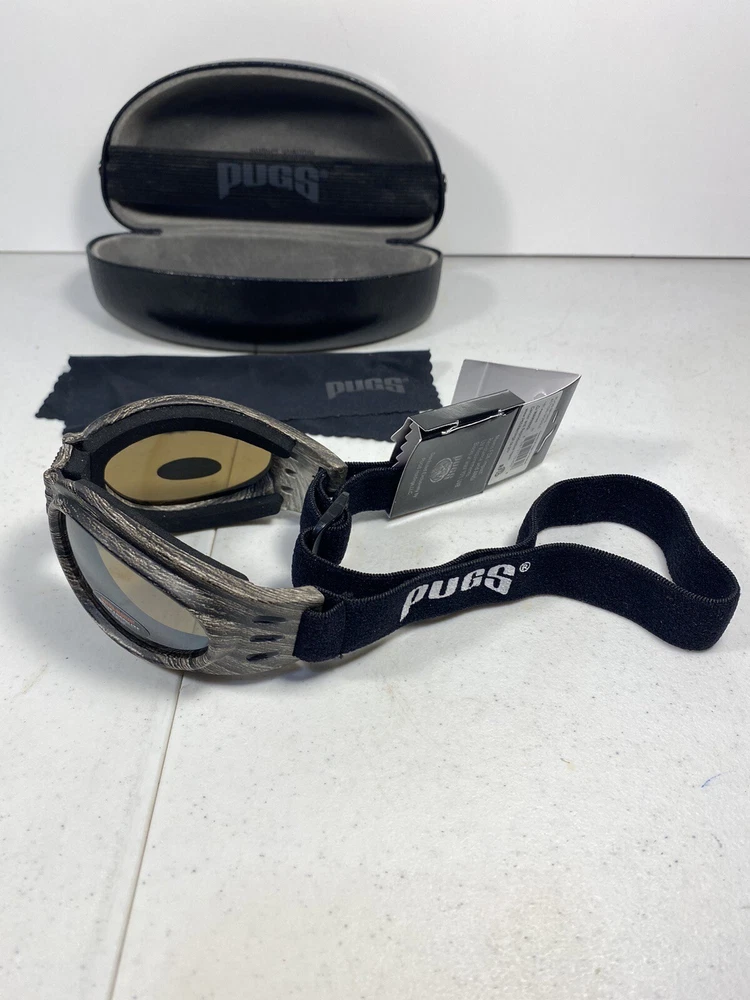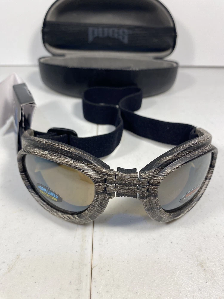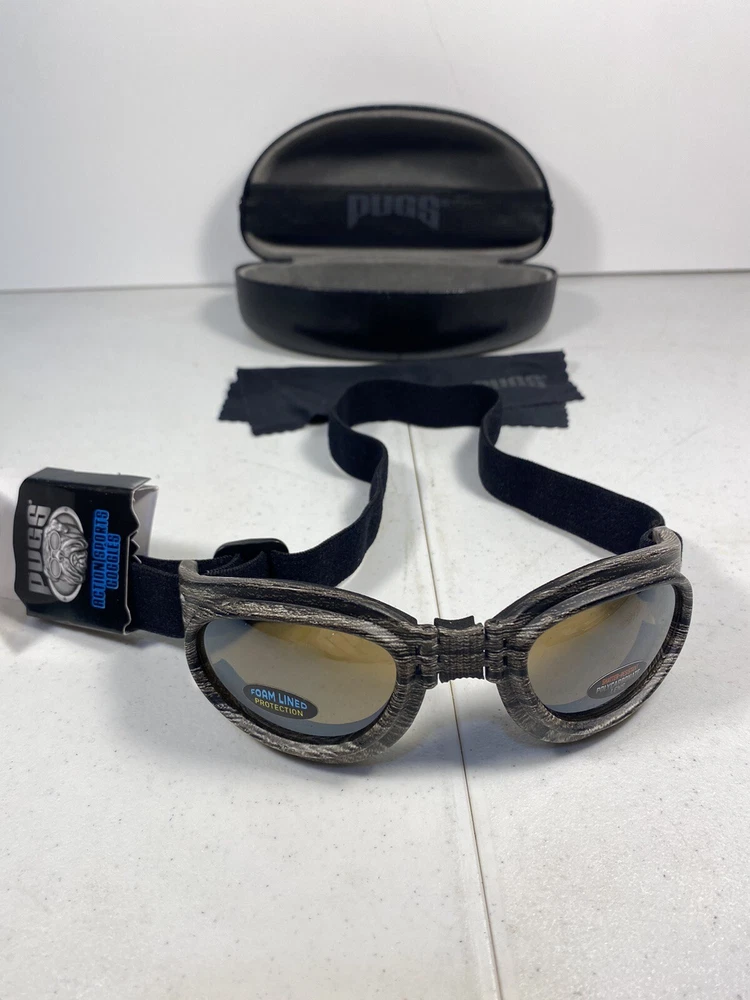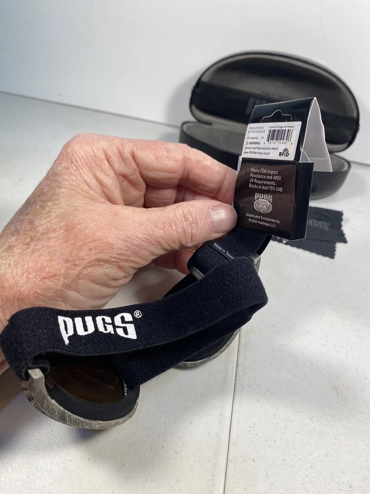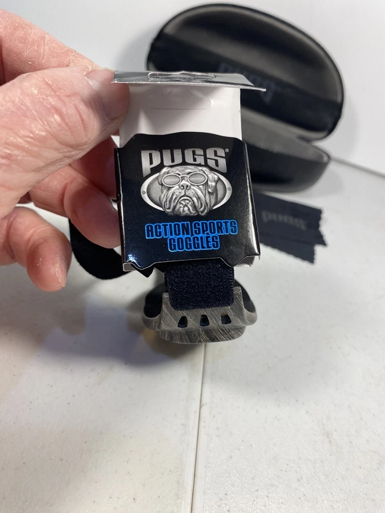 PUGS GEAR, ACTION SPORTS, GOGGLES /SUNGLASSES. FOLDABLE,SHATTER RESISTANT, POLYCARBONATE LENS, FOAM LINED, WITH ADJUSTABLE STRAP, HARD CASE, AND CLEANING CLOTH. NEW OPEN BOX. PLEASE SEE PHOTOS. ITEM WILL BE PACKED QUICKLY AND SHIPPED SAFELY BY USPS. THANKS
