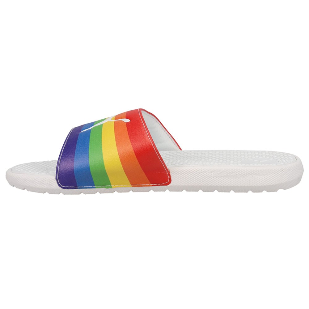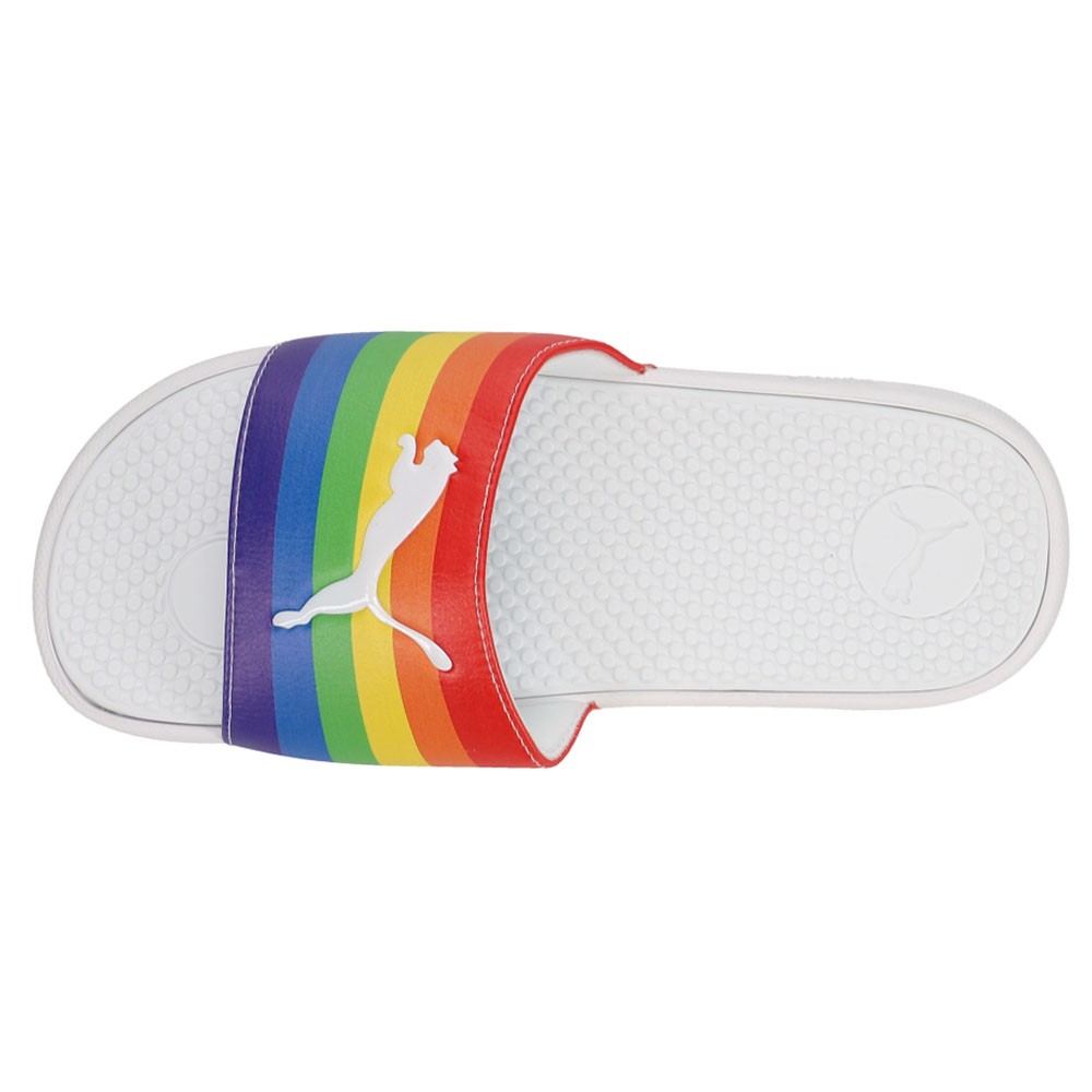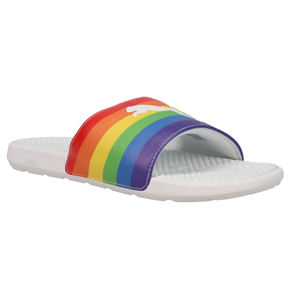 Cool Cat Rainbow II Slide Sandals (Big Kid) Product Details Leather upper Slip on entry Padded collar Rubber outsole These rainbow cool cat sandals are a great sandal to enjoy in the summer time! Additional Details Color: White Occasion: Casual Gender: Girls Age: Youth Brand: Puma