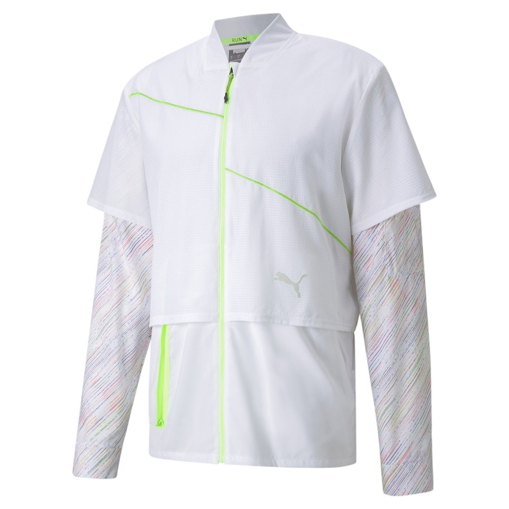 Run Woven Ultra Full Zip Jacket Product Details Two front zip pockets Full zip closure Reflective PUMA logo 100% polyester The Woven Ultra Jacket is the perfect lightweight outer layer for any performance runner. It features a lightweight stretch woven construction equipped with comfort technology for intelligent moisture-wicking capabilities and 360-degree reflectivity for enhanced safety in low light conditions. Additional Details Color: White Occasion: Casual Gender: Mens Age: Adult Brand: Puma