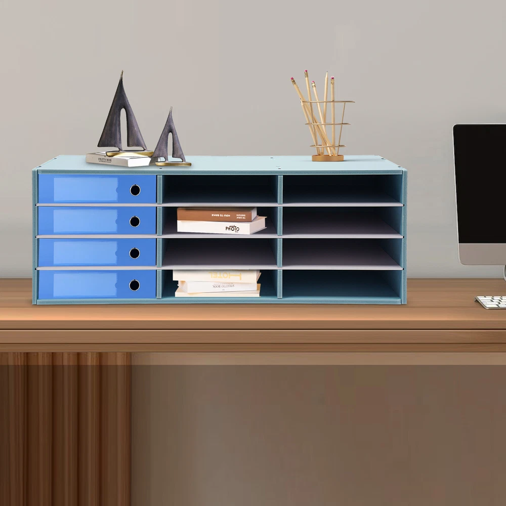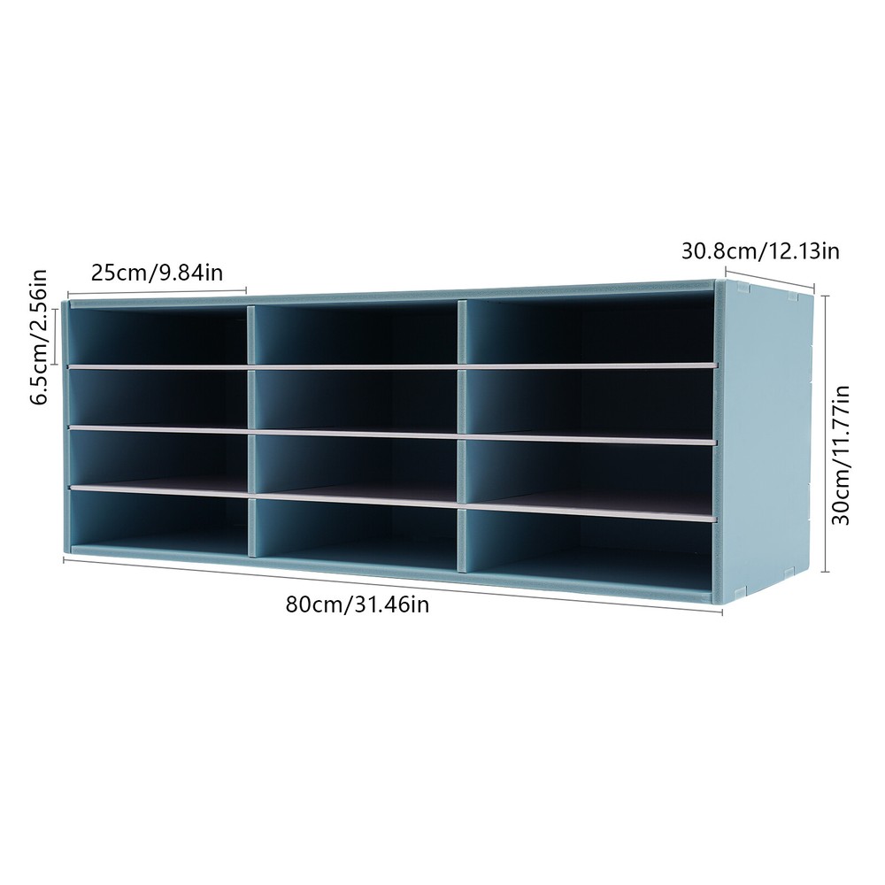 Description Cleanness and tidiness are a good attitude towards life and will put you and your family in a good mood. Our mail sorter organizer is made of high-quality material, has sufficient storage space and beautiful and practical design, allowing you to neatly and efficiently organize your belongings and making you feel organized and relaxed. Say goodbye to a cluttered desk and enjoy a neater, more efficient life! Features Sturdy and Durable: It is made of high-quality PVC, which is eco-friendly, odorless, anti-corrosion, and rust-resistant , ensuring its beauty and long-time use. Excellent Organizer: This set of 12 slots can sort and store data cables, kinds of files, and other daily essentials to create a cleaner, tidier office and home environment. Meanwhile, the top platform allows you to place some keys, plants, and chargers to fully use your space. Stable Construction: The thickened material and rectangular structure give it excellent stability, meeting your needs for storing various items without tipping o ver. Minimalist Style: The blue color scheme combines a rectangular shape and simple lines to create a minimalist aesthetic and reveal a strong modern charm, adding a touch of refinement to your room. Simple Installation: With complete accessories and a detailed English installation diagram, you can put it together by yourself and enjoy the fun of the installation process! Effortless Clean: Thanks to its smooth surface, simple construction, and clear texture, you can wipe it clean with a damp rag. Ideal Gift: Thanks to its practicality, it will make a fine gift for family, friends, and loved ones on Christmas, Father's Day, Mother's Day, birthdays, anniversaries, and holidays. Protective Package: We have used air bubble bags to wrap this product to minimize damage to the product during shipping. Details Practical Gloves: They make it easy to install and protect your hands! Large Openings: They allow you to better place or access files, etc. Round Corners: Smooth and burr-free edges are not only comfortable to touch, but also care for your files and skin. Application It is suitable for use in the home, library, office, classroom, and craft room. It helps you quickly and easily sort, store, and organize literature, magazines, comic books, files, student work, binders, catalogs, journals, papers, and documents on your desk or counter. It also transforms into a charging and storage station for small laptops and tablets! Specification Color: Blue Material: PVC Style: Modern Shape: Rectangular Assembly Required: Yes Shelf Type: Tiered Shelf Installation Type: Freestanding Number of Slot s: 12 Number of Tiers: 4 Each Slot Size: 25*30.8*6.5cm/9.84*12.13*2.56in Product Size: 80*30.8*30cm/31.46*12.13*11.81in Package Size: 87*32*8cm/34.25*12.6*3.15in Gross Weight: 7kg/15.43lbs Net Weight: 6.5kg/14.33lbs Package Included 1* Mail Sorter Organizer 1* Pair of Gloves 1* English Installation Diagram Other Accessories for Use Notes Please note that this product does not include files and other storage items. Please allow the slight color difference caused by the shooting light and 1-3cm error due to manual measurement and make sure you do not mind before ordering. Payment Delivery details Terms of sales About us Contact us Payment We accept ebay payment 。 Fees such as import duties, taxes are not included in the item price or shipping costs. These charges are the buyer's responsibility. Delivery details Shipping: 2-9 working days to: USA Terms of sales We maintain high standards of excellence and strive for hundred percent customer satisfaction. Feedback is very important to us. We hope that you contact us immediately before you give neutral or negative feedback, so that we can address your concerns. It is impossible to address issues if we do not know about them! About us Your satis faction is our ultimate goal. We work hard to earn your trust and future business. Our certified technicians have tested each item before shipping. The unit comes with 1 year limited warranty on all manufacturing defects. a) If you receive a defective item, you may return it or ask for a discount. Please contact us within 14 days after you receive the package. b) What you returned must be intact and in its original packaging as re? u. Customer is responsible for shipping costs of the returned item. c) We will cover the cost of shipping back t with the shipping rate indicated in the registration page. We will send you a new unit or refund the full payment you paid. Thank you. Contact us Business Hour Business Hour: Monday To Friday: 8:30 AM to 5:00 PM (Beijing China time) Due to time zones, our reply to your questions may not be immediately. But within above working time, we will reply your email within 24 hours. If it's non-workdays, please kindly be patient and wait till Monday. Please contact us with ebay message. Please feel free to contact us if you have any questions. Monday To Friday: 8:30 AM to 5:00 PM (Beijing China time) Due to time zones, our reply to your questions may not be immediately. But within above working time, we will reply your email within 24 hours. If it's non-workdays, please kindly be patient and wait till Monday. Please contact us with ebay message. Please feel free to contact us if you have any questions.