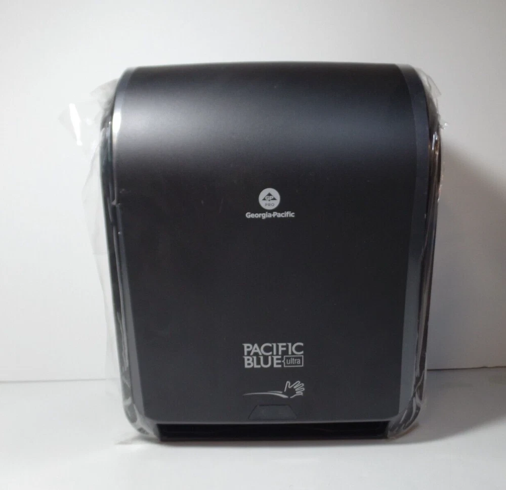 Georgia Pacific brand Pacific Blue Ultra towel dispenser. Unit is missing original box. It has never been used. There is some minor scuffing on the side from shelf wear.