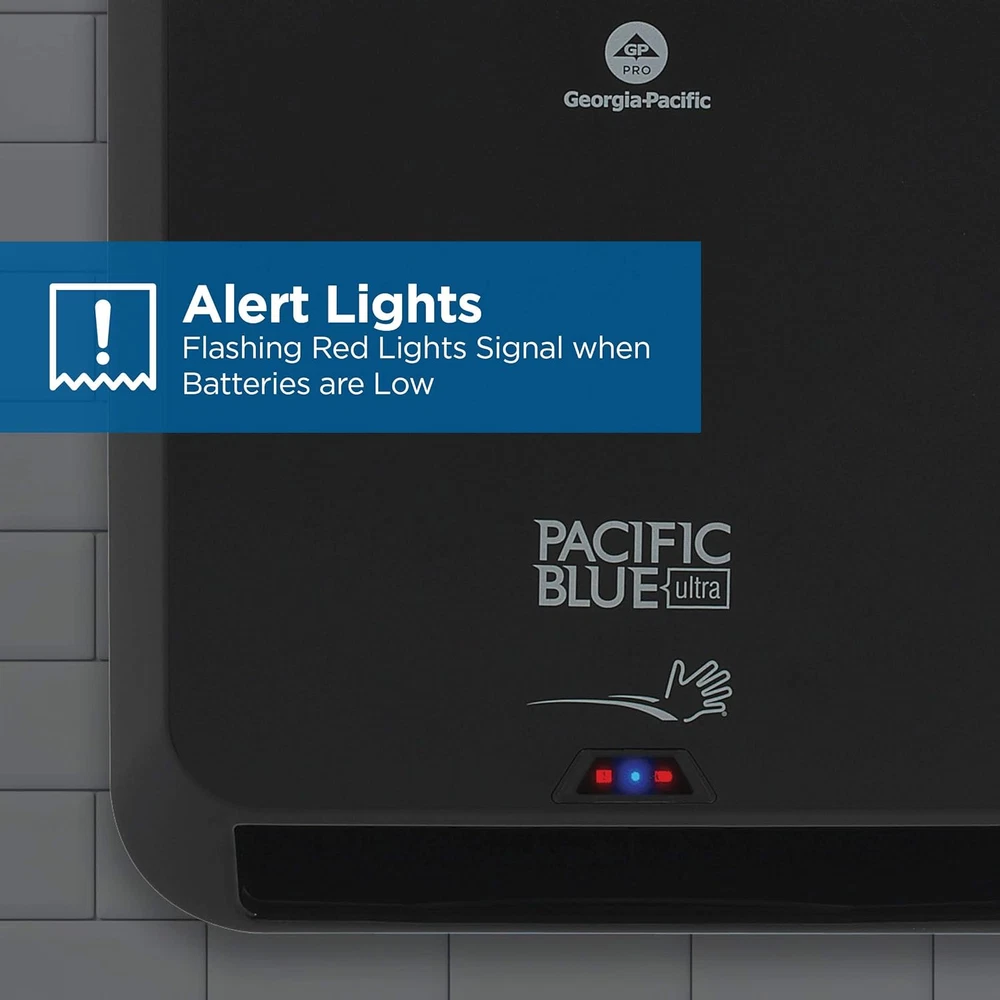 HIGH CAPACITY 1150-ft towel rolls last longer; helping to require less maintenance and minimize refill frequency ENHANCED IMAGE with attractive dispenser design that coordinates with other Pacific Blue dispensers EASY TO REFILL wall mounted towel dispenser designed with easy-access front cover that opens 180° DURABLE DISPENSER that protects against theft with a key lock and is backed by a 10-year warranty FLEXIBLE REFILL OPTIONS Choose between white or brown paper towels and 3-Roll or 6-Roll cases COMPATIBLE WITH Pacific Blue Ultra Roll Paper Towels 26490; 26491; 26495; 26496 New from the innovators at GP PRO comes the Pacific Blue Ultra automated dispenser. Attractive, contemporary and very affordable to own, this one-at-a-time automatic towel dispenser combines the efficiency you expect from GP PRO with the durability you need for day-to-day performance. Pair with other Pacific Blue Ultra dispensers for an affordable, efficient washroom solution.