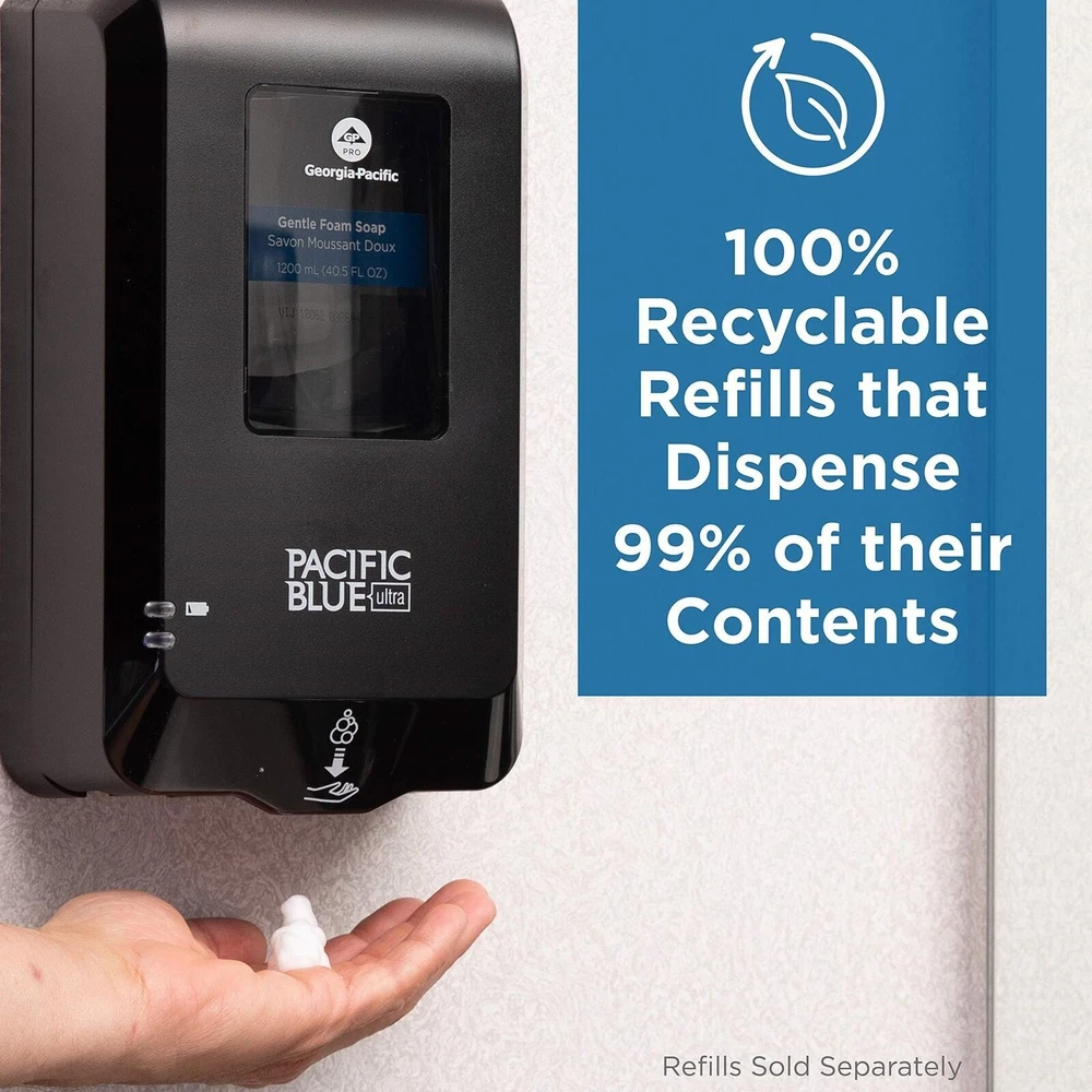 Brand: Georgia-Pacific Color: Automated Dispenser Features: HYGIENIC DESIGN: Each sealed refill bottle includes a fresh nozzle, significantly reducing the risk of cross-contamination and germ transmission, making this a top choice for any soap dispenser bathroom setup EASY MAINTENANCE: This hand soap dispenser features high-capacity refills and an easy-load design, along with long-lasting batteries (included) that help minimize maintenance time, ideal for busy commercial environments DURABLE AND RELIABLE: Built to withstand heavy usage, this commercial soap dispenser comes with a 5-year warranty, ensuring long-term durability and peace of mind VERSATILE USE: This automated wall soap dispenser is versatile enough to dispense both hand soap and hand sanitizer, making it a valuable addition to any bathroom. EXCLUSIVE COMPATIBILITY: Designed exclusively for use with Pacific Blue Ultra Automated Hand Soap refills (43716, 43717, 43822) and Hand Sanitizer Refill (43337), ensuring consistent and reliable performance. SEALED REFILLS: The sealed refill system helps reduce cross-contamination, offering a more hygienic solution compared to open or bulk containers, whether used as a foaming soap dispenser or a liquid soap dispenser. Release Date: 2018-03-05T00:00:01Z Warranty: 5 year. UPC: 036500308605 EAN: 0036500308605 Package Dimensions: 11.7 x 6.5 x 4.0 inches Listing and template services provided by inkFrog