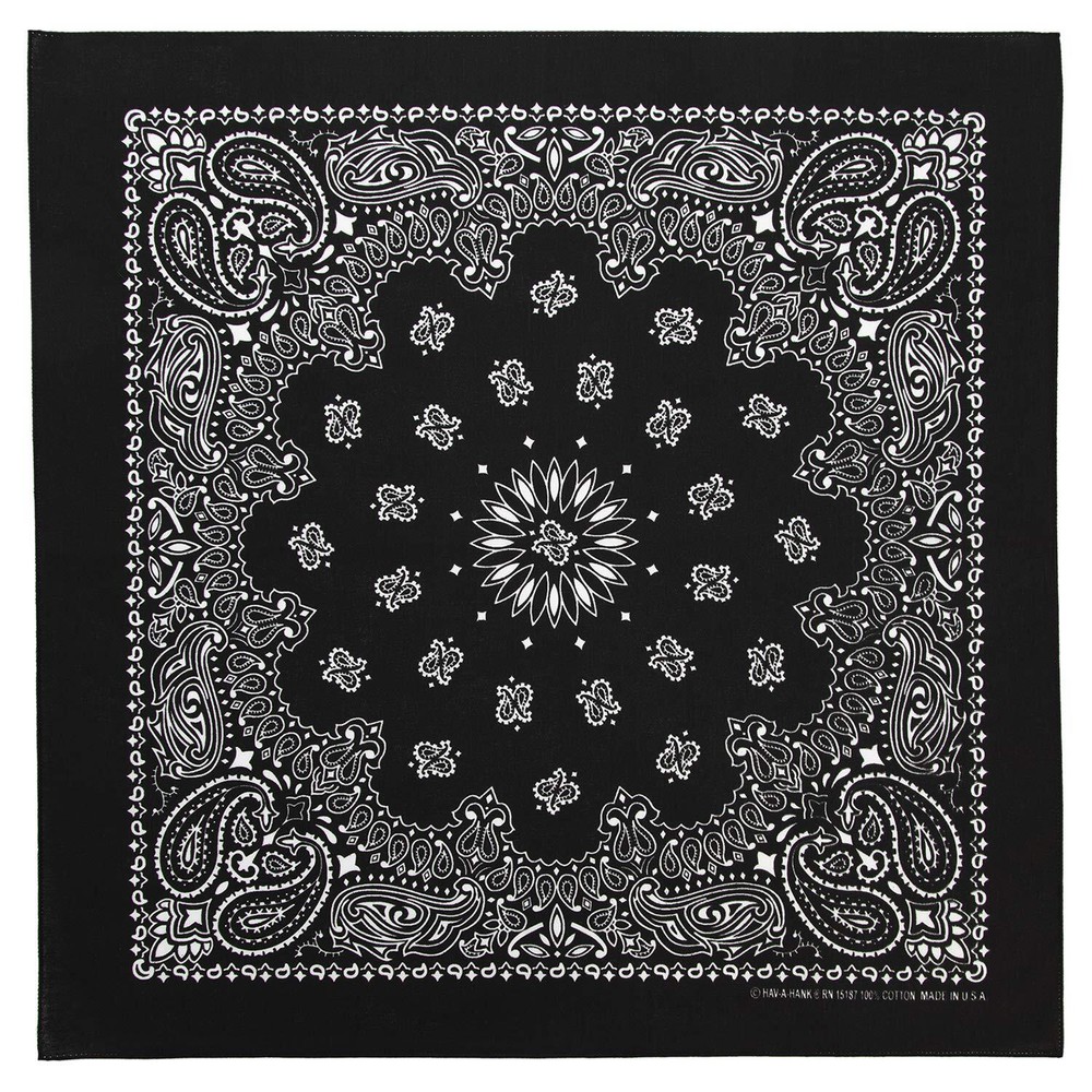LARGE COTTON BANDANA – Large 22” x 22” western style square bandana is a perfect size to wear as a headband for a party or during a workout, head scarf to cover hair or bald head, wristband, neck tie and more. Made Proudly In The USA 100% COTTON – Beautiful high-quality cotton with a 68 x 68 thread count that will only get softer over time. Most of our western bandanas feature double sided printing without any logos or other writing. (Chambray is 50/50 Poly Cotton -- Chambray, Blue w/Red & White and Black w/ Red & White are single sided) QUALITY STITCHING – Each cotton bandana handkerchief is purl-stitched around all edges to ensure the quality and durability. A quality and colorful bandana that is made to last you for a long time VERSATILE – Use our cotton bandanas for functionality or as a fashion accessory. Great for handkerchief, headband, wristband, head cover, dust mask, while painting or doing crafts, exercise, doo rag, cute accessory for your dog or baby, great for kids to dress as a cowboy AVAILABLE IN MANY COLORS – Unisex US quality western paisley cotton bandanas for men, women, boys, girls, baby, and even your pets. Available in many different colors and choose from a 1 pack or 12 pack