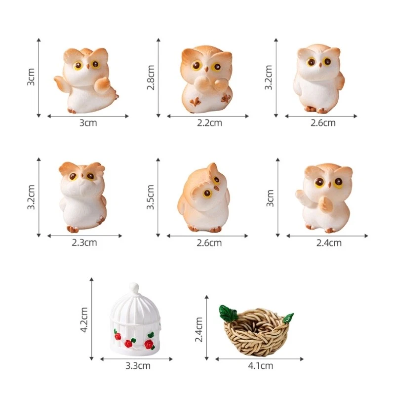 Features: This set of 8 figurines is meticulously crafted with intricate details, bringing a of individuality to your home decor. Made from durable materials, they offer a soft texture that withstands time. for those seeking unique and artistic decorations, these figurines add a to any room. Whether as a or for personalized enjoyment, they create a visually appealing environment. Display these figurines on your desk or shelf to create a focal point in your living space. Their elegant poses and expressive features make them delightful addition to any area. Let these figurines inject your with charm. Their versatile project fit seamlessly into various decor styles, making them a delightful addition to any room. Add a touch of creativity to your space with these figurines. Specifications: Resin Num.1 Size:Approx.3x3cm/1.18x1.18inches Num.2 Size:Approx.2.2x2.8cm/0.86x1.1inches Num.3 Size:Approx.2.6x3.2cm/0.62x1.25inches Num.4 Size:Approx.2.3x3.2cm/0.9x1.25inches Num.5 Size:Approx.2.6x3.5cm/1.02x1.37inches Num.6 Size:Approx.2.4x3cm/0.94x1.18inches Num.7 Size:Approx.3.3x4.2cm/1.29x1.65inches Num.8 Size:Approx.4x2.4cm/1.61x0.94inches Package Includes: 8Pieces Owl Figurines Set note: Please allow 1-2cm error due to manual measurement. Please make sure you do not mind before you bid. Due to the difference between different monitors, the picture may not reflect the actual color of the item. Thank you!