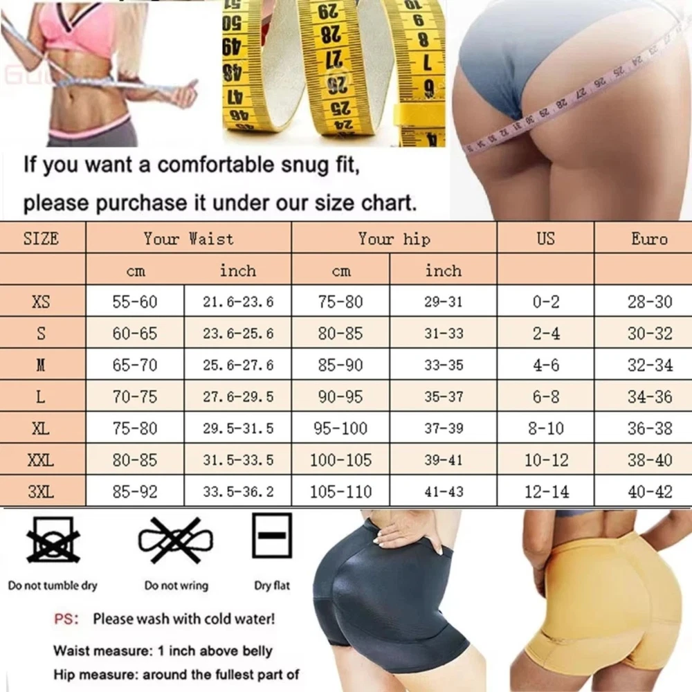 Padded Hip Butt Lifter Panties Cushion Body Shaper Panty Shapewear From Hip To Butt Enhancement Hip Lifter Pads are Padded **NOT-removable** they are built into the shorts Available in black or beige Sizes XS to 3XL, please review size chart in photos as it may be different from your normal bottoms. HOW TO ORDER- Message with color and size preference prior to order, message with any questions