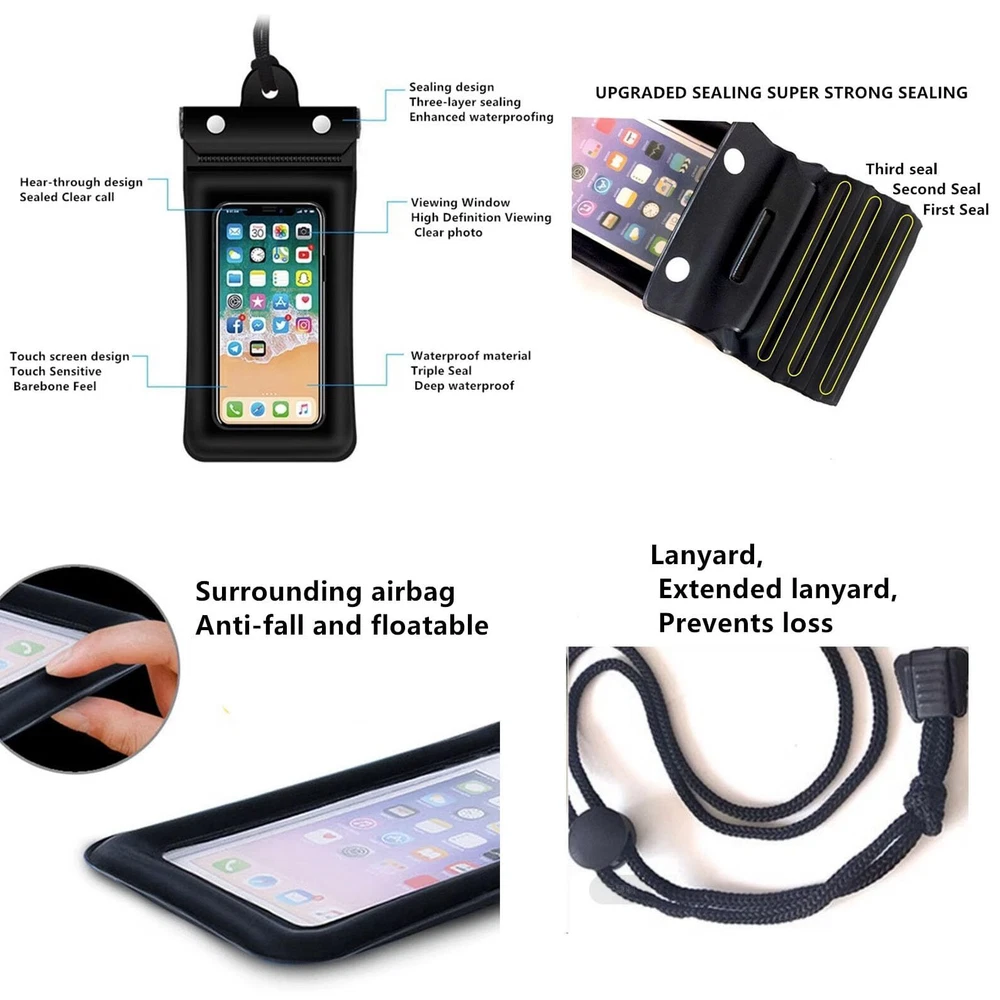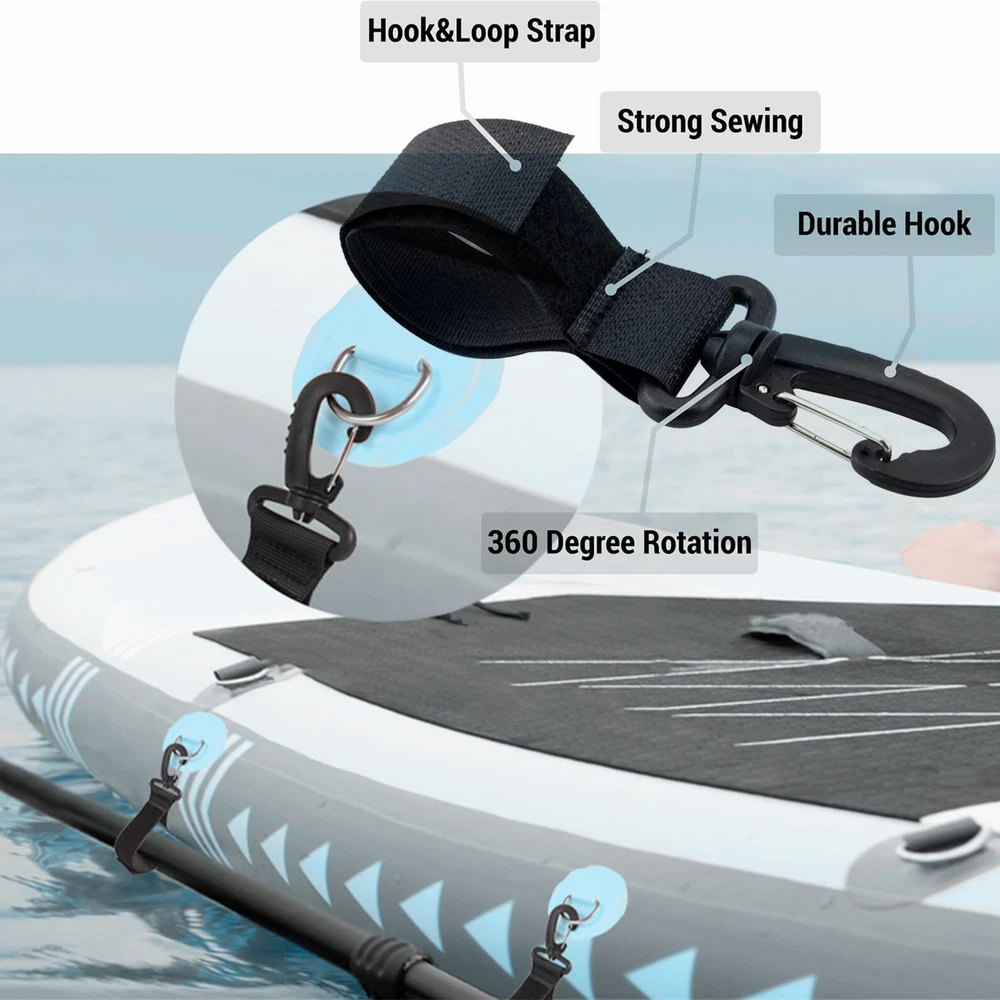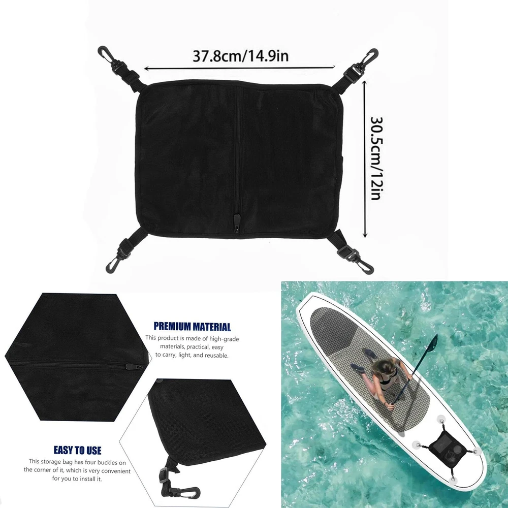 Package Content: Paddleboard Deck Bag,2pcs kayak paddle clip , 4 d-ring patches, waterproof cell phone pouch. Package Content: Paddleboard Deck Bag,2pcs kayak paddle clip , 4 d-ring patches, waterproof cell phone pouch. Paddleboard Deck Bag Mesh: Elastic SUP Mesh Storage Bag with 4 Sturdy Attachment Straps & 4 d-ring patches,which size is 12”*14.9’’. design with 3 separate elastic mesh pockets inside for fixing small gear and a hook for keys SUP Paddle Keeper :The carry strap is adjustable.Fit any size paddle shafts. No worry about the size of the paddle and shaft.design of high quality nylon and magic paste tape, sturdy and durable. Floating waterproof phone pouch dry bag fits most smartphones up to 7" diagonal size; Credit card wallet money waterproof dry bag for cruise, ship, beach, pool, fishing, swimming, boating, kayaking, snorkeling and water park activities These accessories, suitable for canoes, surfboards, yachts, inflatable paddleboards, rowboats... Various water sports accessories