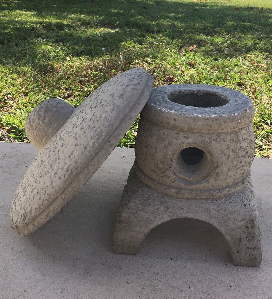 This Pagoda Total height / Tall is 11" 1/2 inches. Width of roof 11" 1/2 inches. Foot print 7 3/4 inches. Dimension of center cavity 3” w x 4" 1/2 depth. Weight is 23-26 pounds. Solid concrete. 2 parts ( roof + base ) this Pagoda ships via FedEx or UPS Ground ! insured at no cost to customer ! ***** 14-20 days handling time before it ships !! ***** 14 to 20 days before it ships sometimes sooner