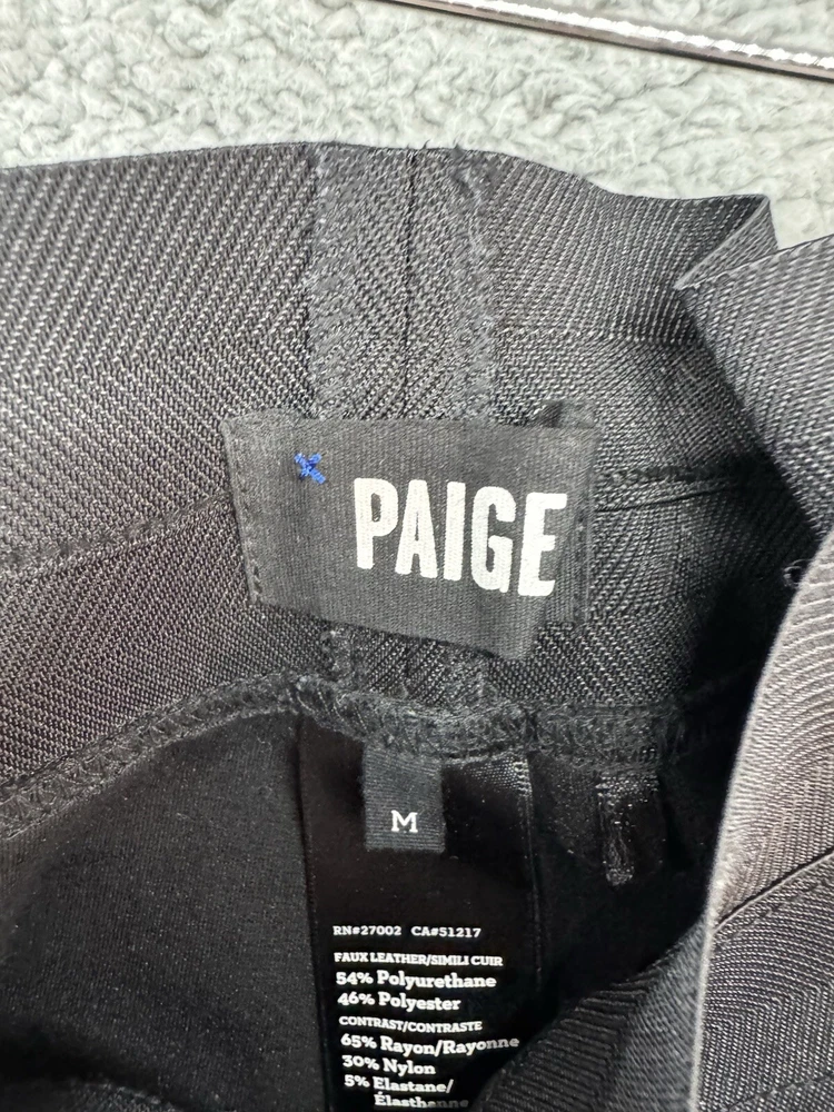 Elevate your everyday style with the Paige Women's Size M Black Stretch Pants. Designed with a contemporary jogger silhouette, these pants feature a comfortable mid-rise and a straight leg for a flattering fit. The elastic waist ensures a snug and adaptable feel, perfect for casual outings or running errands. Crafted from durable polyester canvas fabric, these pants are ideal for transitioning from spring to fall. Their solid black color makes them a versatile addition to your wardrobe, easy to pair with a variety of tops and shoes. Machine washable for effortless care, they are a practical choice for the modern woman.
