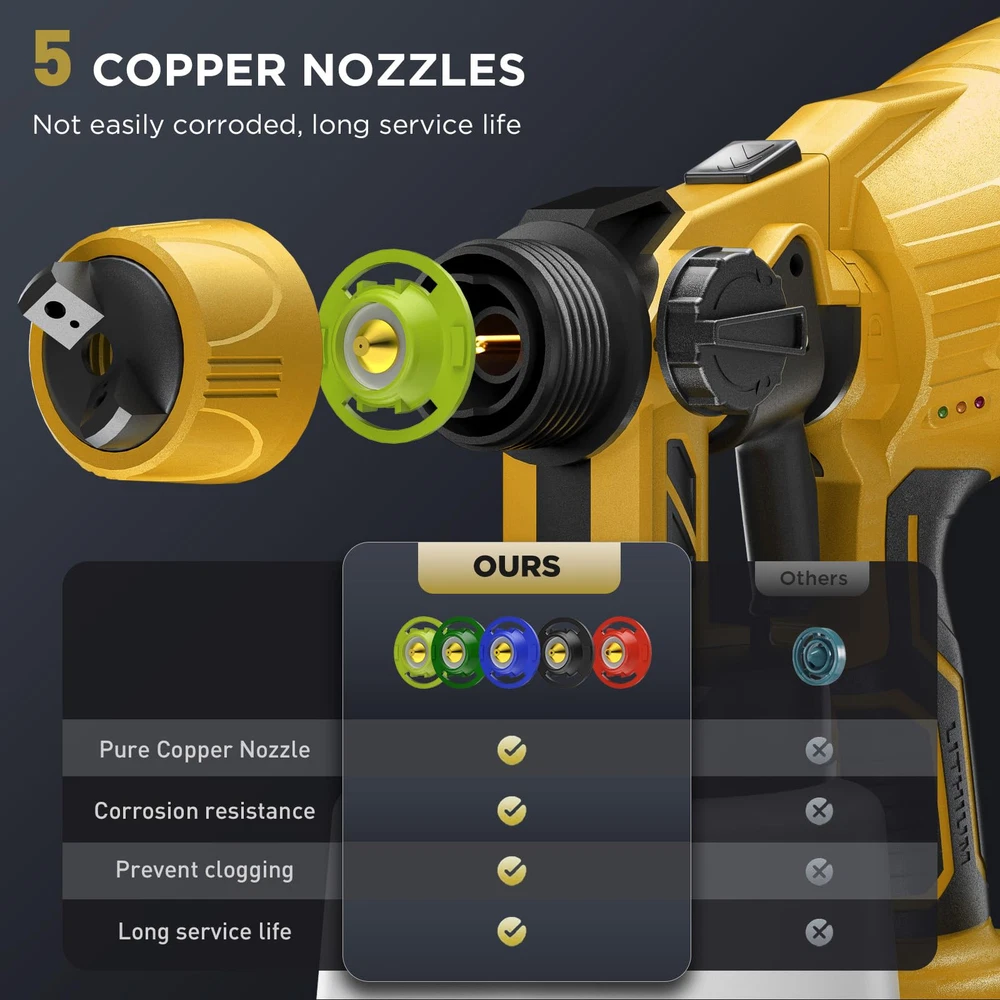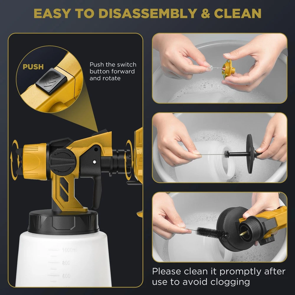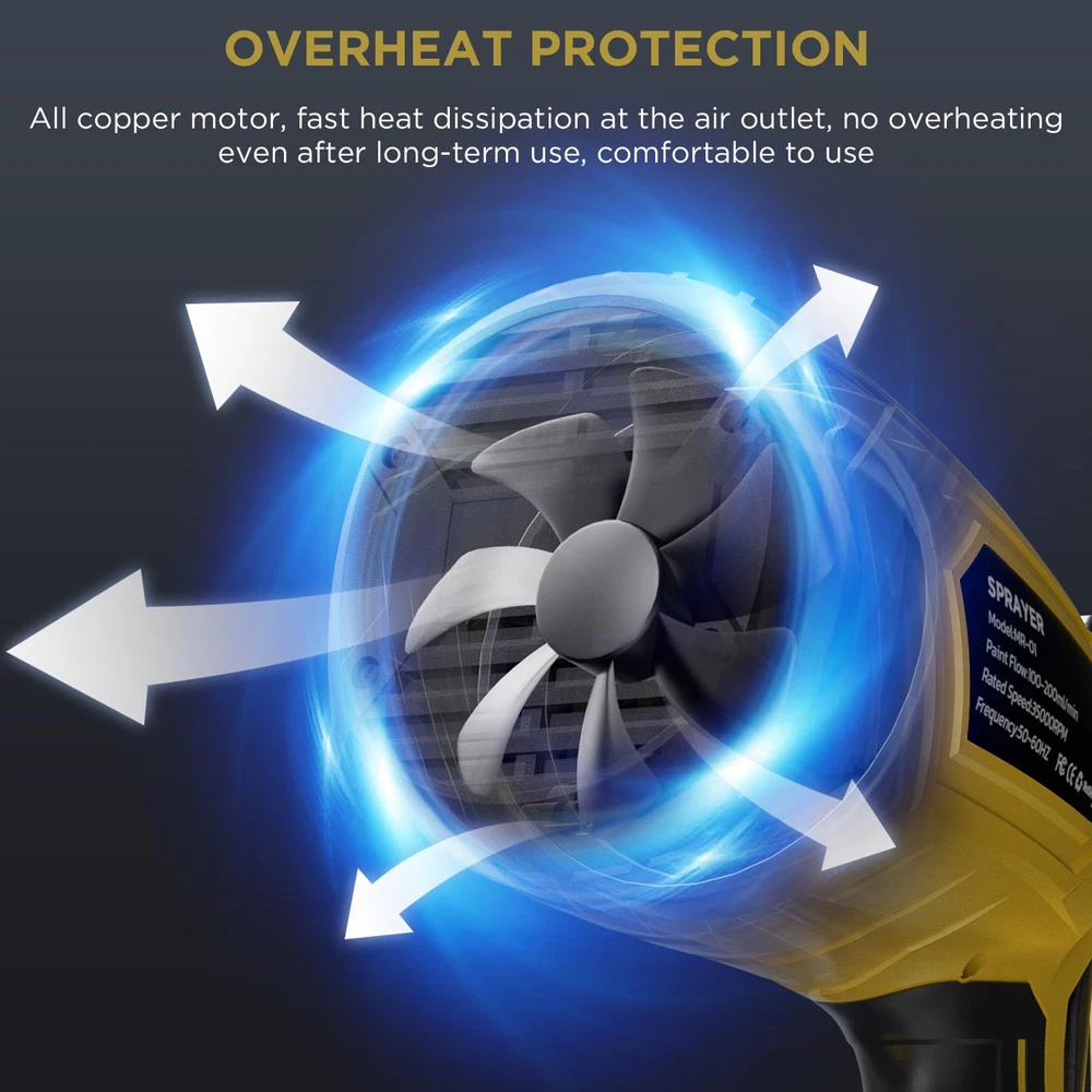 100% Copper Motor:Our hvlp spray gun different from most aluminum clad copper motors, our motor is made of 100% copper material, with a speed of 35000 per minute, efficient spraying, uniform thermal conductivity, and during use, the machine will not overheat, it won't suddenly stop working halfway making it comfortable to use Built in 10 Pieces Batteries:Our cordless paint sprayer built in 10 Pieces battery,fully charged can be used continuously for half an hour,Overvoltage protection, automatic power-off,wireless operation, convenient and flexible Copper Nozzles:Cordless paint sprayer with battery upgrade for battery paint sprayers, iteratively upgraded the plastic nozzles on the market to brass nozzles, effectively solving the problem of being blocked and corrosion damage Adapt to Various Projects : Our paint gun sprayer includes 3 spray modes + 5 nozzle options, switching between 3 different spray modes to meet your specific painting needs. 5 nozzle sizes: 1.0mm, 1.5mm, 1.8mm, 2.5mm and 3.0mm, can easily and efficiently complete various painting projects in these options After Sales Service: We provide you with video usage guidance and a 12-month product warranty period for this battery paint sprayer If you encounter any problems during use this spray paint , please contact us Within 24 hours, we will definitely give you a satisfactory reply