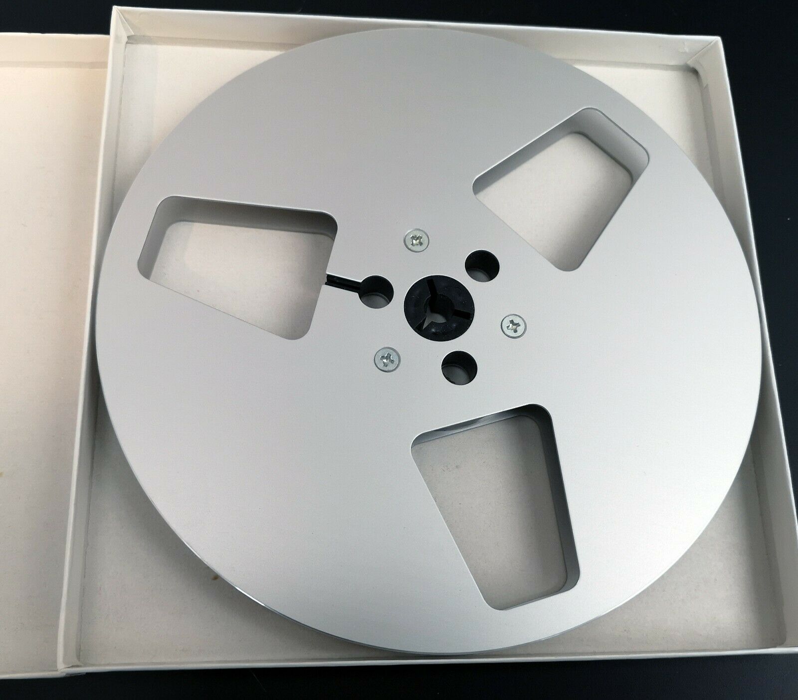Untitled Document MEISTER Pair of Near 7-inch Metal take up reels in original box - Rare in this condition. These are light and strong Both reels spin true and there are no edge nicks - NM