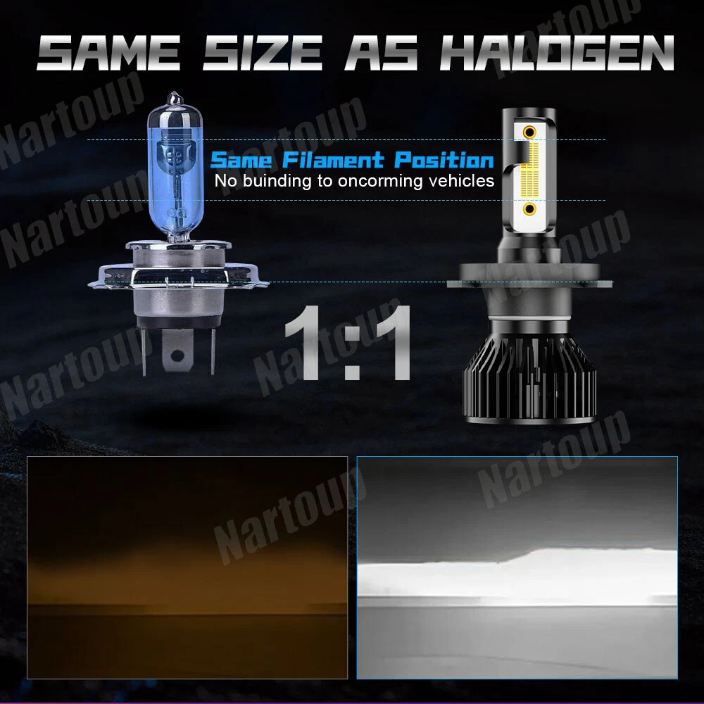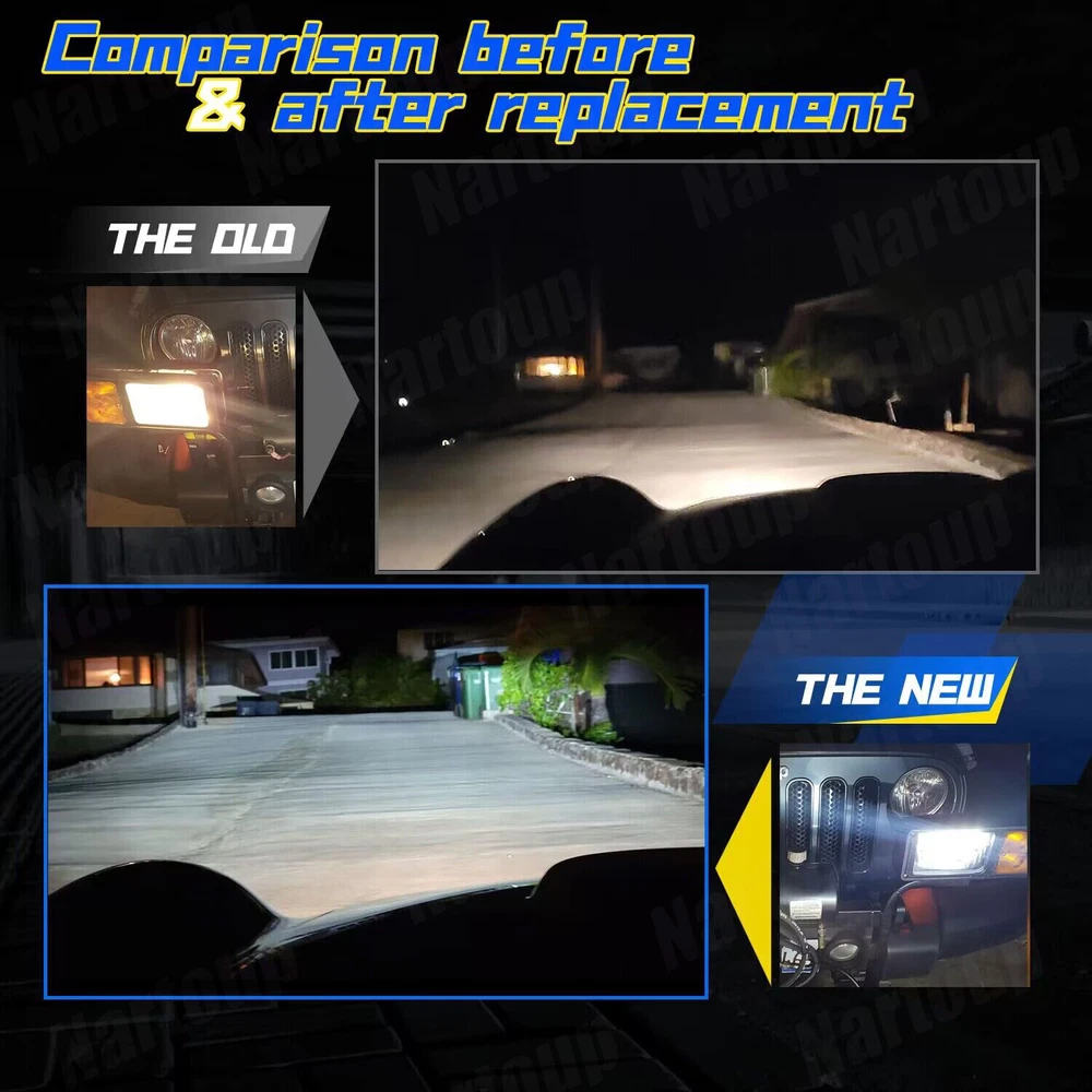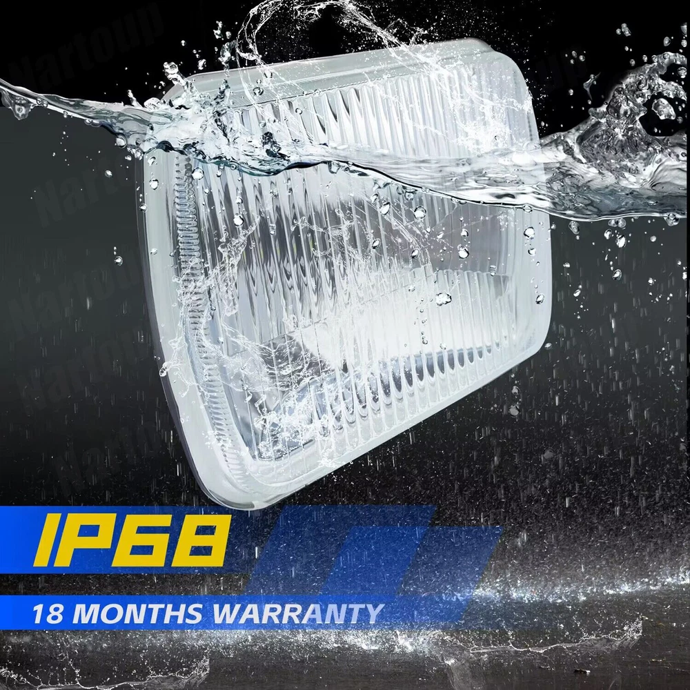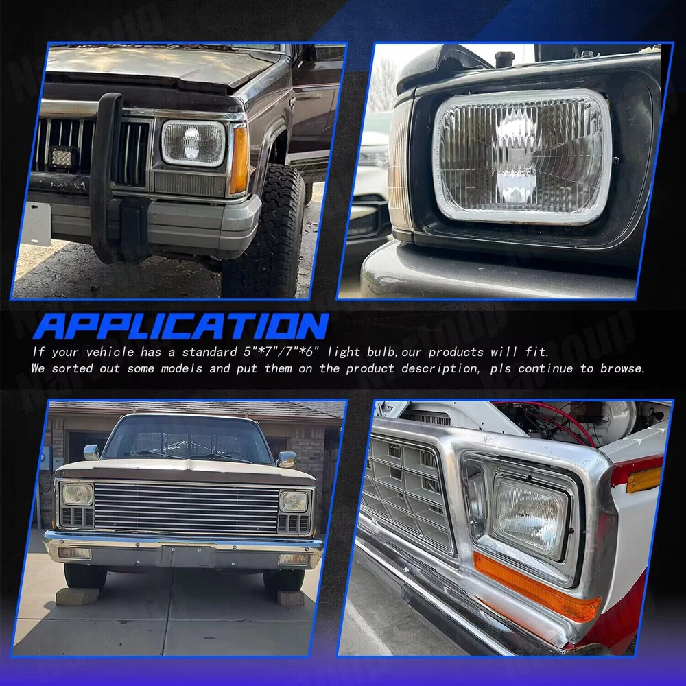 Nartoup - 7"x6" Stock Style H4 Headlights 200w/ LED Bulbs - Pair THESE ARE H4 CONVERSION HEADLIGHTS WITH A STOCK STYLE GLASS LENS AND METAL HOUSING! INCLUDES (2) HIGH INTENSITY LED H4 XENON WHITE LIGHT BULBS! 5X7 7X6 INCH SQUARE HEADLIGHT - PAIR CRYSTAL CLEAR GLASS LENS / METAL BACKSIDE FITS STOCK BUCKETS WITHOUT MODIFICATION PLUGS INTO FACTORY WIRING PLUGS LOW BEAM AND HIGH BEAM BULBS ARE REMOVABLE AND REPLACEABLE 100W LED BULBS INCLUDED PLUG AND PLAY DOT / SAE APPROVED This listing is for a new pair (2 bulbs right & left) 7x6" 5X7"diamond crystal clear semi-sealed beam glass lens / metal housing headlights. These headlights have a clean custom look but fit into the stock buckets and plug into the stock wiring without modification. ( Or some models need to be modified) These light up in a similar color as the original headlights. These have the original 3 prong plug design on the back so they will plug directly into the original wiring harness. These will fit any car or truck that has 2 rectangle glass headlights that are 7x6 inches. These are glass faced headlights with a metal backside. We will take extra care in packaging. Specifications: * Brand:Nartoup * Condition: 100% Brand New * Light Source:2 Sides COB LED * Material: Aviation Aluminum + ABS * Color Temperature: 6000K-6500K * Working Voltage: DC 9-32V ( Fit 12V,24V Vehicle ) * Output Power (Each): 100W * Number of Bulbs: 2 * Waterproof Rate: IP68 * Luminous Flux: 10000lm/Bulb * Working Temperature: -40℃ - +80℃ * Bulb Type: H4 * Beam Type: High Beam/ Low Beam * Beam Angle: 360 Degrees * Lifespan: Over 50,000 hours * Heat Dissipation Principle: Heat Pipe Technology + Aluminum Radiator * Fitment Type: Direct Replacement * Placement on Vehicle: Front, Left, Right * Color: As the picture shows Package include: 2pcs 7Inch Led headlights Housing 2pcs H4 LED Bulbs 2PCS H4 9003 to H13 9008 Connectors Cable Adapters Harness Note:No mounting bracket. New boxes and old boxes are sent randomly!!! After service Notification: If you are satisfied with our product and service please leave us a positive feedback,if there is any problem when you received the package,please feel free to contact us,we will be definitely give you a satisfying solution,when you choose the return reason .please choose the reason"i don't like it". By this option we will accept your return immediately and provide return label for full refund. the others reason to return will take both of us many troubles to handle. If you have any questions, please feel free to contact us, we are happy to answer them for you. Hope you will have a good shopping experience~
