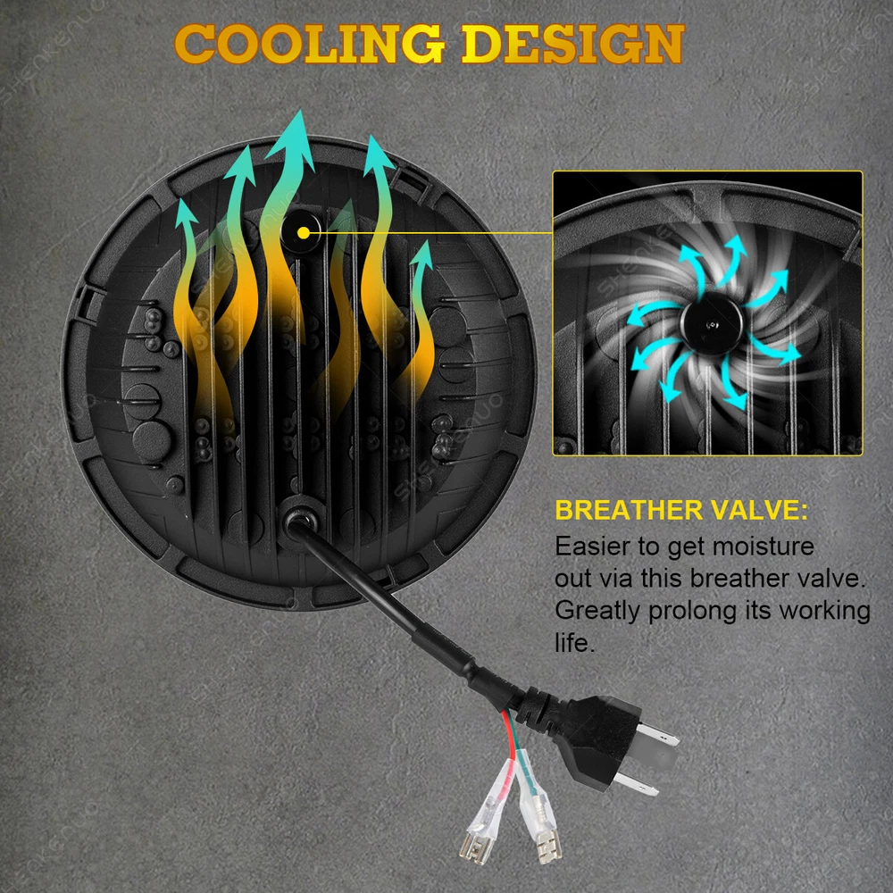 Product Description Package Includes: 2PCS 7-Inch Round V Style LED Headlights 2PCS H4-H13 9008 Adapter Wires (Installation instruction not included) Note: Some models may require a mounting bracket, which is not included! Specifications: Housing Color: Sleek Black Voltage: DC12V Color Temperature: Cool White 6000K-6500K LED Power: 50W each, 100W per set Luminous Output: 10000LM (High Beam), 8000LM (Low Beam) Lighting Functions: High Beam / Low Beam / Daytime Running Light / Turn Signal Life Span: 50,000+ hours for long-lasting performance Energy Efficiency: Save 60% more energy, reducing fuel consumption! Compatibility: Replaces 7-Inch Round H6024 Sealed Beam Housings Waterproof Rating: IP67 for all-weather performance Product Features: Maximum Brightness: Equipped with premium LED chips, these headlights deliver 100% more brightness compared to stock or halogen lights, improving nighttime visibility. Weatherproof Design: DOT Approved, IP67 rated, and equipped with anti-flicker technology for seamless performance without the need for extra decoders. The sealed design keeps moisture and water out, ensuring reliable performance. Hassle-Free Installation: Easy plug-and-play setup saves you time and effort. Built for durability, these headlights boast an impressive lifespan of over 50,000 hours. About the Adapter: A slight flicker may occur due to Jeep Wrangler's voltage instability, not because of the headlights. The flicker is more noticeable with brighter LEDs, unlike dimmer halogen lights. Simply plug in the headlights first. If there is no flicker, the adapter is not needed. Upgrade your vehicle with these cutting-edge 7-inch LED headlights, delivering exceptional brightness, style, and reliability! (Including but not limit the following applications) Application: For Alfa Romeo Spider (1988-1994) For AM General Hummer (1992-2001) For American Motors AMX (1968-1978) For American Motors Gremlin (1970-1978) For American Motors Hornet (1970-1977) For American Motors Javelin (1968-1974) For American Motors Matador (1974-1978) For American Motors Pacer (1975-1980) For Bertone X 1/9 (1984-1989) For Chevy Blazer (1969-1974) For Chevy C10 (1975-1980) For Chevy C10 Pickup (1969-1974) For Chevy C10 Suburban (1969-1980) For Chevy C20 (1975-1980) For Chevy C20 Pickup (1969-1974) For Chevy C20 Suburban (1969-1980) For Chevy C30 (1975-1980) For Chevy C30 Pickup (1969-1974) For Chevy Camaro (1967-1981) For Chevy Chevelle (1971-1973) For Chevy Chevette (1976-1978) For Chevy El Camino (1971-1975) For Chevy G10 G20 G30 (1975-1987) For Chevy K10 K20 K30 K5 Blazer (1969-1980) For Chevy Laguna (1973-1975) For Chevy Lux (1980-1982) For Chevy Malibu (1973-1975) For Chevy Monte Carlo (1970-1975) For Chevy Monza (1975-1980) For Chevy Nova (1963-1978) For Chevy Pickup Truck (1967-1973) For Chevy Truck (1947-1957 and 1962-1972) For Chrysler (1949-1955) For Datsun 240Z 260Z 280Z 280ZX (1970-1978) For DeSoto (1949-1955) For Dodge (1949-1955) For Dodge B100 (1975-1978) For Dodge B100 Van (1971-1974) For Dodge B150 (1984-1987) For Dodge B200 (1975-1978) For Dodge B200 Van (1971-1974) For Dodge B250 (1984-1987) For Dodge B300 (1975-1978) For Dodge B300 Van (1971-1974) For Dodge B350 (1984-1987) For Ford Bronco (1966-1977) For Ford Custom 500 (1971/1976) For Ford E-100 Econoline (1969-1978) For Ford E-100 Econoline Club Wagon (1975-1978) For Ford E-150 Econoline (1969-1978) For Ford E-150 Econoline Club Wagon (1975-1978) For Ford F-100 (1975-1979) For Ford F-100 Pikcup (1969-1974) For Ford F-150 (1975-1979) For Ford F-250 (1975-1979) For Ford F-250 Pickup (1969-1974) For Ford F-350 (1975-1979) For Ford F-350 Pickup (1969-1974) For Ford Falcon Sedan Delivery (1961-1965) For Ford Mustang (1965-1973) For Freightliner Century Class (1996-2011) For Freightliner Coronado (2001-2016) For Honda Civic (1976-1981) For Hummer AM General 1992-2001 For Hummer H1 2002-2006 For Hummer H2 2003-2009 (H2 needs 9007 male to H4 female adapter, package not included) For International Harvester 4200 4300 4400 For Jeep Cj-5 1955-1983 For Jeep CJ-7 (1976-1986) For Jeep CJ-8 Scrambler (1981-1985) For Jeep Wrangler JK 2 Door (2007-2018) For Jeep Wrangler JK 4 Door Unlimited (2007-2018) For Jeep Wrangler LJ Unlimited (2004-2006) For Jeep Wrangler TJ (1997-2006) For Jeep Wrangler TJ Unlimited / LJ (2003-2006) For Kenworth T2000 (1998-2010) (Buyer Note, Our Headlight plug is H4,H4-H13) For Land Rover 90/110 1983 to 1991 (including 2.5N/A, 2.5 Turbo, V8) For Land Rover 90/110 Defender 200 Tdi For Land Rover 90/110 Defender 300 Tdi For Land Rover 90/110 Defender Td5 For Land Rover 90/110 Tdi For Land Rover Defender 90 & 110 For Land Rover Defender 90 1995 For Land Rover Defender 90 1997 For Land Rover Range Rover County Classic SportUtility 4-Door 1995 For Mack DM RM RW RS RL CF For Mazda 808 1976-1977 For Mazda Miata (1990-1997) For Mazda Miata MX5 MX-5 (1990-1997) For Mazda Mizer 1976-1977 For Mazda RX-7 1979-1985 For MG Midget (1969-1979) For Oldsmobile Omega (1974-1979) For Peterbilt 359 (1981-1987) For Peterbilt 379 (1988-2009) For Plymouth (1949-1955) For Plymouth Barracuda (1964-1974) For Plymouth Valiant (1963-1976) For Porsche 944 (1983-1991) For Toyota Corolla (1969-1980) For Toyota LandCruiser (1979-1987) For Toyota Pickup (1979-1981) Motorcycle Fitment: (Fits following motorcycle:) For Any Motorcycle models with 7 inch Round headlight,such as(Not limited): For Dyna SwitchbackFLD: 2014, 2016 For Softail Convertible CVO FLSTSE : 2010-2012 For Softail Cros Bones FLSTSB: 2008-2011 For Softail Deluxe CVO FLSTNSE: 2014-2015 For Softail Deluxe EFI FLSTNI FLSTN: 2005-2017 For Softail FatBoy : 2001-2017 For Softail Heritage Classic Springer Classic EFI FLSTI FLSTC FLSTS: 1991-2017 For Softail Nostalgia FLSTN : 1993-1996 For SoftailSlim FLS S FLSS: 2012-2017 For Touring Electra GlideClassic CVO FLHTCSE EFI FLHTCUIPolice FLHTP: 1994-2017 For Touring Road King Classic EFI FLHRCI Police CA FLHR: 1994-2017 For Touring Street Glide CVO FLHXSE EFI FLHX