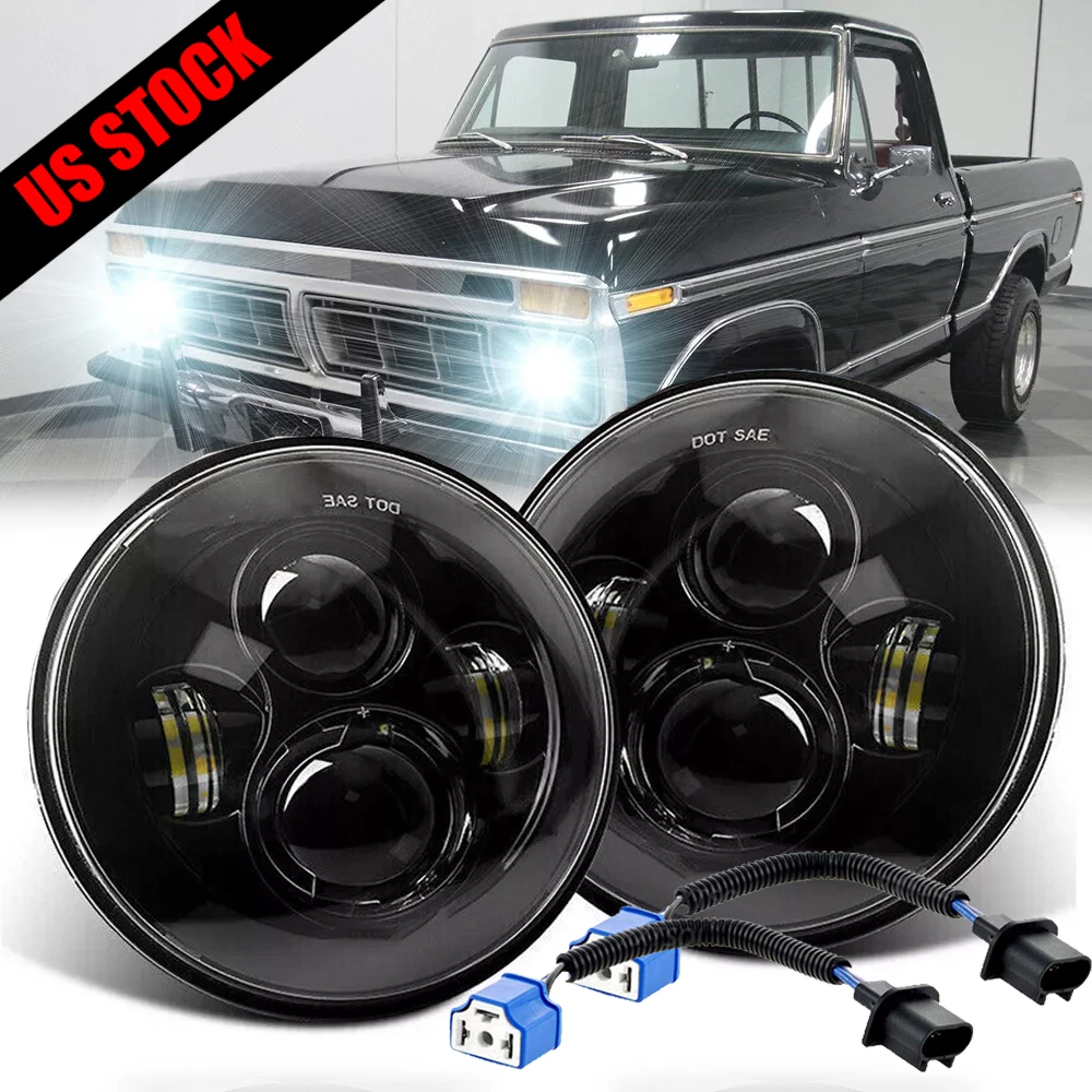 Pair 7'' Round Led Headlights Hi/Lo Beam For Ford F-100 Pikcup 1969-1974 / F-150