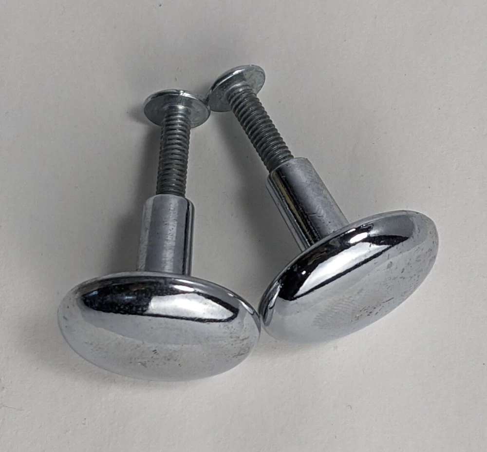 2 furniture knobs, Chrome shiny finish, 1 in diameter, screws included Pre-owned item, used condition showing signs of wear and use, some scratches. All images provided accurately represent the item(s) you will receive and should be regarded as an integral part of the description. We encourage you to carefully review each image. If you have any questions or need further details about this listing, please feel free to reach out to us.
