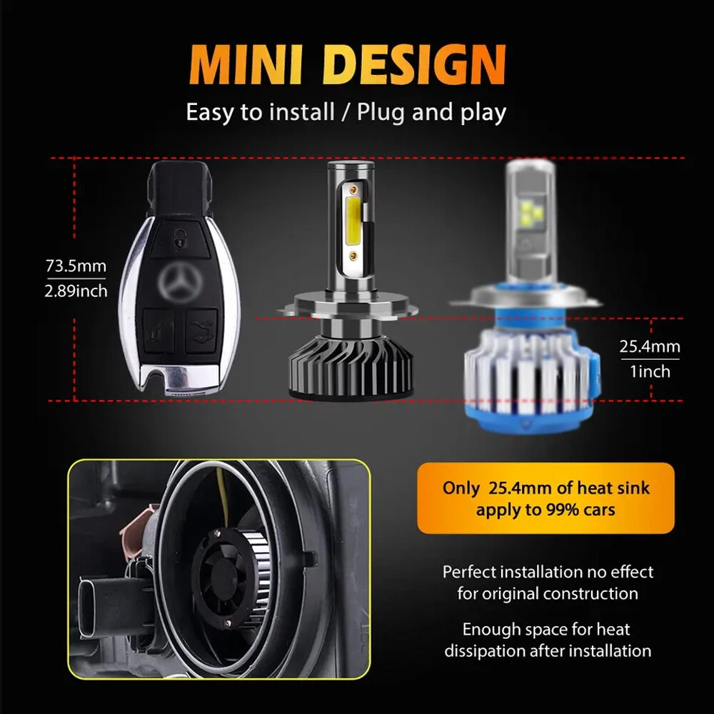 7" Inch Universal Round Cut Chrome Front Clear Glass Lens Diamond Headlights Kit 7" Inch Round Headlight Housing *Black Chrome housing with clear lens design , Lens is made out of clear glass. *Enhance visibility during night time, heavy rain, snow, or dense fog. Precision optics offers a highly controlled concentration of light to enhance visibility. *Direct replacement, easy installation. *High quality O.E grade materials to withstand the most rigorous weather *Compatible For Manufacturer Headlight Part Numbers # H6014 / H6015 / H6024 *These headlights are set up for high and low beams, just simply plug them into your original wiring. *This design is perfect replacement for old sealed-beam round headlight on any vehicle that uses standard 7” bucket. H4 HB2 9003 LED Headlight Bulbs Specifics -Color: 6000K Cool White -Power Consumption: 50 Watt -Luminosity: 10,000 LM -360 Degree / U6S Series CSP Chip Perfect Beam Angle -H4 - Dual Beam Function (You will have HIGH AND LOW!) -500% Brighter than Stock Halogen -Built in IC Circuit (Current Regulator)-Prevents LED Damage From Voltage Variations & Spikes. -Lifespan: 50,000 Hours -Operating Voltage: DC 12V / 24V -Amperage: 1.9A - 2.9A -Maintenance free, Waterproof IP67, Shockproof -Warranty 5 years Top Features 300% Brighter than Halogen: 50W 6000K cool white, 1w=100lm, with clear visibility and perfect beam pattern, so you can enjoy good vision while driving at night. Super Focused Beam Pattern: U6Splus led bulbs with 1.0mm ultra-thin centered light emitting. No dark spots or foggy light, do not blind oncoming traffic. 10mins Easy Installation: The LED bulb’s almost 1:1 design as halogen. Plug and play. No other tools are needed 360° Adjustable Beam Pattern: Adopts 360° adjustable locker ring to ensure the best beam pattern. except H1, H3, 880, PSX26W 50,000 hours Lifespan: U6S plus comes with a copper base board, cold pressed aluminum heat sink and 12,000rmp cooling fan. Better solve the dimming or over heated of led bulbs. Parcel Content: - 2 * 2-side H4 Headlight Bulbs - 2 * 7" inch headlight housing