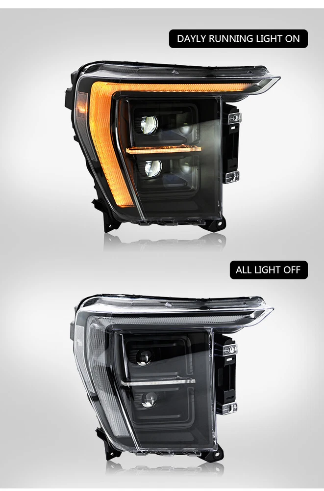 Pair Front Lamps For 2021 2022 2023 Ford F150 LED Projector Headlights Head Lamp Features: 1. One pair: Left + Right head lights 2. Bulbs: All bulbs are built-in LED, no extra bulbs needed 3. Function: DRL(White)+Turn Signal(Yellow)+High Beam(White)+Low Beam(White) lights 4. Easy installation: plug and play,same as original one to install 5.Assembly: all parts are included in the package,no need to buy extra bulbs or harness Fitment Fits For 2021 2022 2023 Ford F150 ( Professional Installation is Highly Recommended ) Package include 1 Pair of Headlights (driver's side + passenger's side) Note 1. Please confirm whether this car-lamps can fit your car before buying, if you are not sure, please contact us and send us pictures of your original car light or plug. 2. Using your factory supplied connector/harness will avoid cutting or modifying any wires. Specification ·100% Brand New ·Professional Installation is Highly Recommended ·Welcome to send us message for more information Warranty: One-Year warranty after receiving After Sales Service Please contact us before returning the products, we will do our best to help you solve all the problem well with good service!!! Questions Any question will be replied within 24 hours except the weekend and holiday. We will serve for you all sincerity!