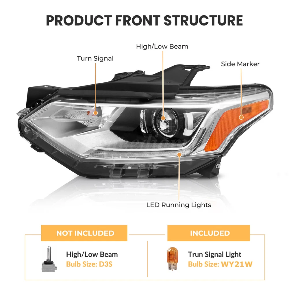 Pair HID/Xenon Headlights Fit 2018-2020 Chevy Traverse With LED DRL Projector PRODUCT DETAILS Description: This 100% brand-new automotive headlight is designed to redefine your vehicle’s appearance, combining sleek lines with refined details for a standout look. Constructed from heavy-duty polycarbonate, it offers durability and impact resistance, ensuring long-lasting clear illumination for enhanced safety. With a plug-and-play design, installation is a breeze, requiring no complex setup. Equipped with premium components and rigorously tested, it delivers exceptional performance and reliability, improving visibility, UV resistance, and impact protection to ensure all-around driving safety. Make every journey a blend of style and security. Specification: Type: Headlight Assembly High/Low Beam: Use stock HID D3S Bulbs DRL: With LED DRL Projector Bulbs Turn Signal: WY21W Side Marker: W5W Housing Color: Chrome Lens Color: Clear Material: Heavy-duty Polycarbonate Condition: 100% Brand New Fitment Type: Direct Replacement Placement on Vehicle: Front, Right Passenger Side, Left Driver Side OE Number: GM2502487 GM2503487 Interchange Part Number: 84887857 84887858 Fitment: Fit for 2018-2021 Traverse w/ Factory HID/Xenon Headlight Model Not Fit for Factory LED Headlight Models Must Re-Use All Factory Xenon HID Components Package Contents: Pair Headlights (Left Driver Side & Right Passenger Side) Without bulbs and wiring harness Features: 【100% Brand New, Redefine Your Vehicle’s Look】Say goodbye to the old and welcome the new. This headlight features a unique design that completely transforms the traditional appearance of automotive lighting, giving your vehicle a fresh, modern look. With its sleek styling and attention to detail, it enhances both the aesthetic and personality of your car, making it the center of attention on any occasion. 【Heavy-Duty Polycarbonate, Quality Choice】Quality is at the core of this headlight. Made from heavy-duty polycarbonate, known for its durability, impact resistance, and lightweight properties, this headlight ensures stable performance even in harsh environments and guarantees a long lifespan. It also provides clearer, brighter illumination, making your drive safer and more worry-free. 【Plug-and-Play, Easy Upgrade】Convenience is a key feature of this headlight. Its plug-and-play design allows for quick installation without the need for complicated steps or specialized tools. No modifications or drilling required, making it easy to upgrade your vehicle’s lighting and give it a fresh new look. 【Exceptional Performance, Safety First】This headlight is equipped with premium internal components and undergoes strict quality control and performance testing to ensure reliable performance under any conditions. Enhanced visibility, superior UV protection, and high impact resistance work together to create a comprehensive safety system that keeps you protected on the road. Note: 1.Please verify compatibility with your vehicle before purchasing. 2.Ensure proper installation before driving to guarantee safety. 3.Due to monitor and lighting differences, the product image may differ slightly from the actual item. 4.Installation instructions are not included; professional installation is highly recommended. PAYMENT We only support transactions on the ebay, do not support offline or private transactions. Please make sure the address is accurate before you pay. SHIPPING We do not ship to PO Box, Alaska/Hawaii, APO/FPO, and US Protectorates. Item(s) would be shipped out within 1~2 working days after received your confirmed payment. Weekends and holidays are not working days. We will choose different warehouses according to the customer's address and item stock, shipped from CA and PA in the United States. RETURN Buyers may return or exchange an item which damaged within 30 days. eBay & PayPal money back guaranteed. CUSTOMER SERVICE We are committed to provide the best purchase experience for our customers. If you have any questions, just feel free to contact us, we respond queries within 24 hours in business days.