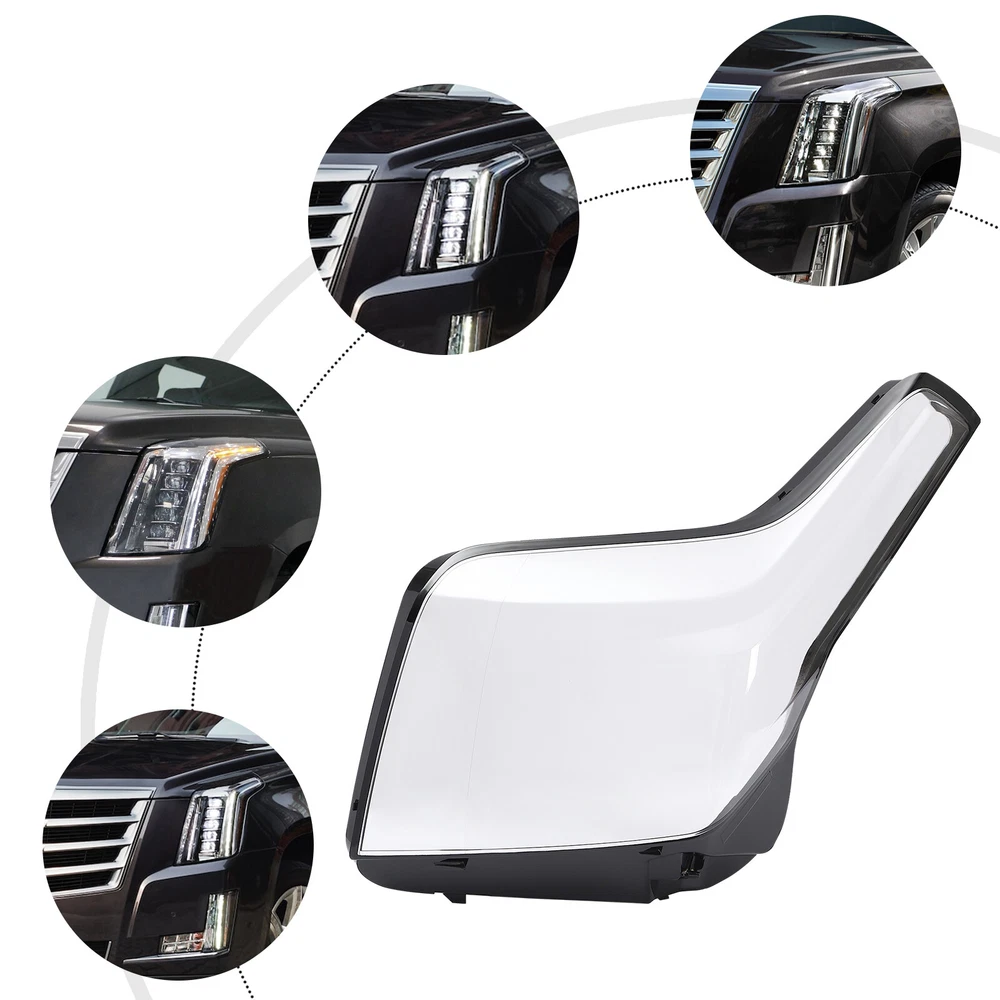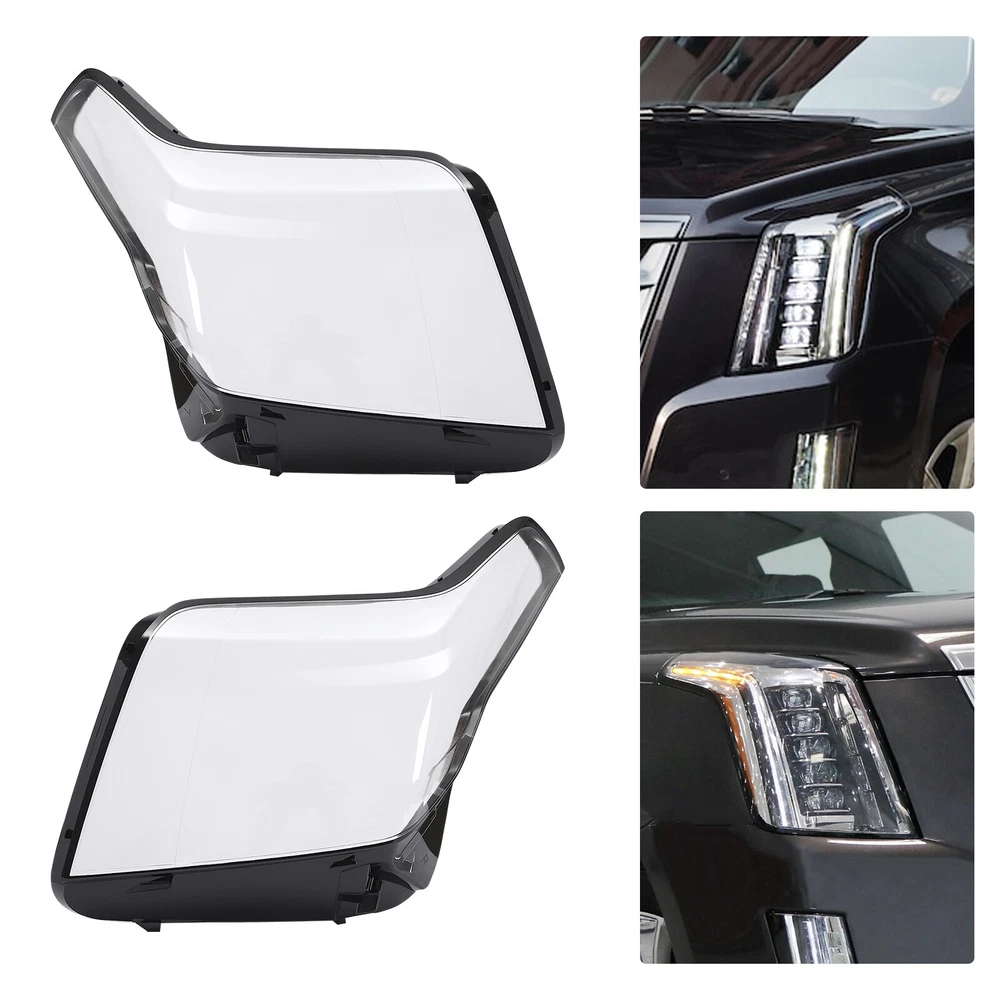 Pair Headlight Cover Lens Cover Fit For 2015-2020 Cadillac Escalade Right+Left