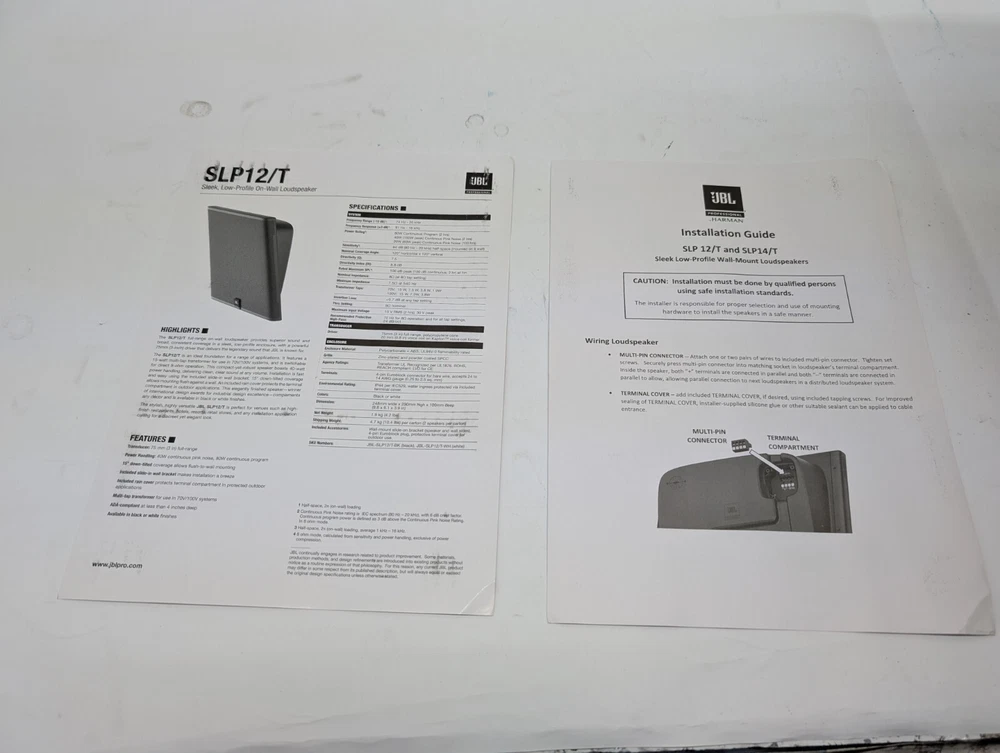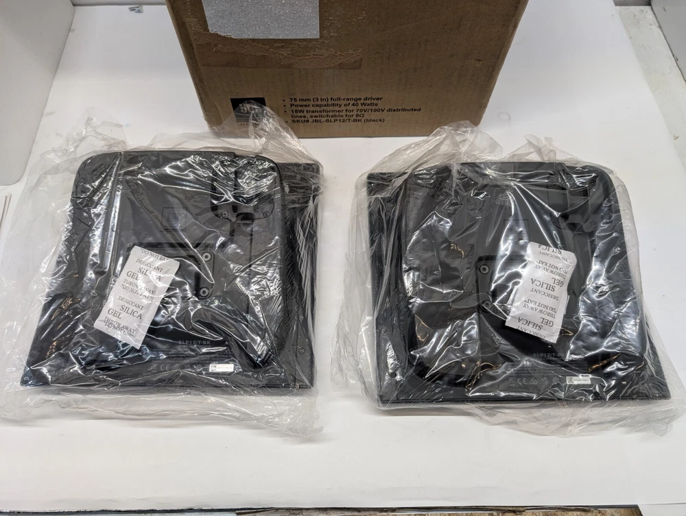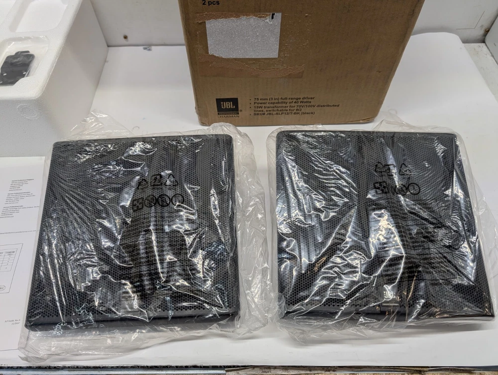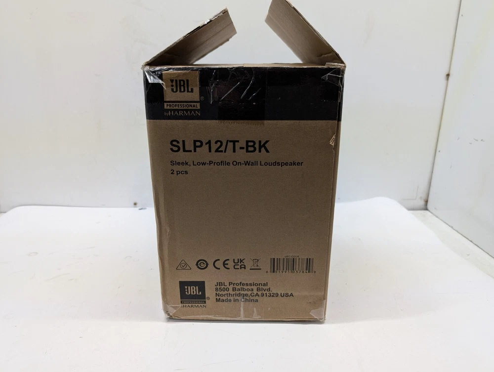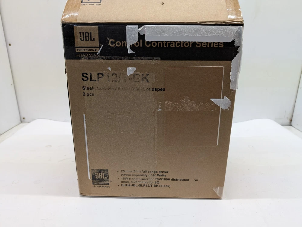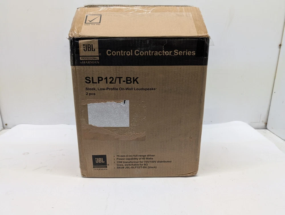 New Open Box in order to verify contents. Only includes the Pair JBL SLP12/T-BK Low Profile On-Wall Mount Speakers 70v/100v/8Ohm Does not include any additional hardware or accessories not displayed Please see photos OFFERS WELCOME FREE SHIPPING TO THE CONTINENTAL UNITED STATES ONLY All shipping prices are quoted for The Continental United States. If you live outside of the Continental U.S. and your item cannot be shipped through a global shipping center we will contact you 30 Day DOA Warranty If item arrives as described buyer is responsible for return shipping cost, a restocking fee may apply JJW
