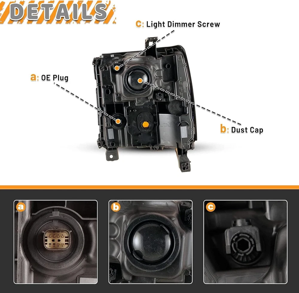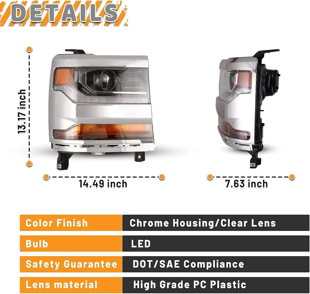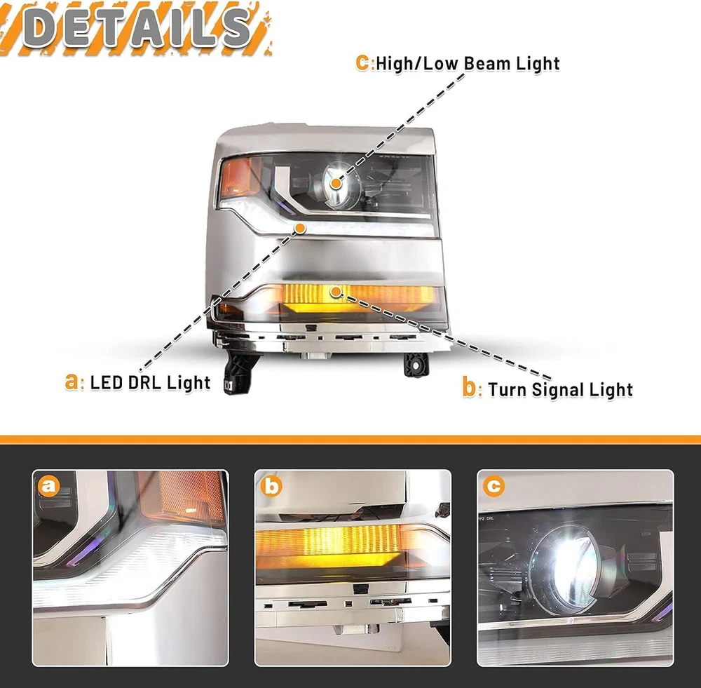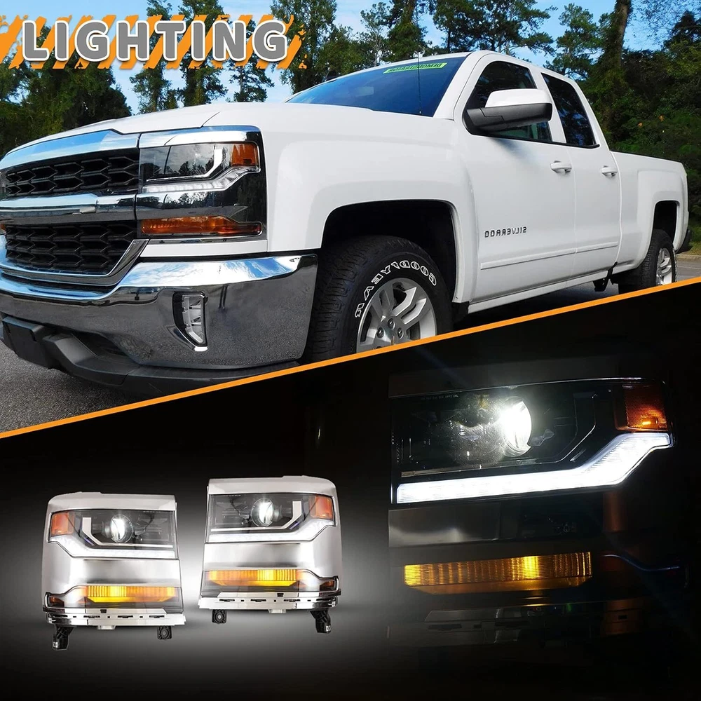 Home Payment Shipping Return Policy About Us Contact Us Feedback Title Other Car Refrigerator Front Bumper Rear Bumper Fender Flares Inner Fenders Side Steps Running Board A-Pillar Light Mount Brackets Headlights For Ford For Dodge For Chevrolet For Toyota For Mitsubishi Taillights For Chevrolet For Toyota For Ford For Jeep For Dodge For Honda For Nissan For Cadillac Fog Lights For Jeep For Dodge For Chrysler For Ford For Toyota For Chevrolet For Nissan For Lexus For GMC For Cadillac For BMW For Mercedes Benz LED Headlights For Ford For Dodge For Chevrolet For Toyota LED Taillights For Toyota For Chevrolet For Ford For Jeep For GMC For Honda For Cadillac LED Fog Lights For Toyota For Ford For Chevrolet For Mercedes Benz Jeep Headlights Tail Lights Fog Lights Refrigerator Bumper Fender Flares Inner Fenders A Pillar Light Mount Brackets Side Step More Chevrolet Headlights Tail Lights Fog Lights Refrigerator Bumper Ford Headlights Tail Lights Fog Lights Refrigerator Bumper Toyota Headlights Tail Lights Fog Lights Refrigerator Bumper Dodge Headlights Tail Lights Fog Lights Refrigerator Bumper GMC Headlights Tail Lights Fog Lights Refrigerator Bumper Black Housing+Clear lens: https://www.ebay.com/itm/404542597786 Passenger Side Headlights: https://www.ebay.com/itm/405177174843 Driver Side Headlights: https://www.ebay.com/itm/405177174849 About this item ✅【Perfect fitment】Our headlights assembly perfectly compatible with 2016 2017 2018 Chevrolet silverado 1500 Xenon/HID (High Intensity Discharge). Headlights are sold in a pair: include left side (driver side) and right side (passenger side). Please confirm your vehicle’s year and model before purchase. (NOTE: For HID headlight models ONLY, NOT for LED headlight models) ✅【High Performance Headlight Bulbs】High Performance Headlight Bulbs increase forward disstance visibility as well as peripheral width. Projetor Lens give you the maximum light output and increase visiblity at night. The DRL cluster dual functions as a turn signal as illustrated above. Lasting longer and use less energy than typical incandescent bulbs making them ideal for automotive applications. ✅【Ip67 Weatherproof】Full sealed beam and housings which can reach up to IP67 weatherproof , designed with one-way vents to prevent moisture from being trapped inside the housing,ensuring pretty durability in heavy rain or terrible weather. The headlight brings a different appearance to your vehicle that's great for show use or to replace old and worn headlights.Maintaining your vehicle’s headlights increases visibility of road markings and traffic signs for reducing traffic accident. ✅【Perfect Beam Pattern】 The Super bright and Uniform Light make us better than other headlights. No Blind Area and dim spots, never blind oncoming drivers. Turn signal lights, high beam, low beam, position light and daytime running light are included as a combination, increasing safety of the driver. DOT and SAE Approved. Moreover, our headlights are designed for quick and easy installation in several minutes without any drillings or modifications. ✅【Premium Quality】This headlights are made of Special Materials which are Resistant to Water, The Dustproof and Shockproof Clear PC Lens are not easy to yellow and crack. Otherwise, the back shell is with strong impact strength and good thermostability. 100% Advanced chips add visibility crucial in Navigation Poor Weather Conditions, Including Rain And Snow, as Well as Dense Fog. Last more than 50,000 Hours. ✅【Guarantee & 24hrs Reply】We Support return for undamaged, full non-defective headlights within 60 days after receipt of goods. If any questions, please contact us directly, we will solve for you within 24hours. Our aim is to make you satisfy the parts and the service we provide for you. Perfect Fitment ✅ For 2016 Chevrolet silverado 1500 ✅ For 2017 Chevrolet silverado 1500 ✅ For 2018 Chevrolet silverado 1500 For HID headlight models ONLY, NOT for LED headlight models. Main Specification ✅ Package: 1 Pair Headlights (Left Side & Right Side) ✅ High/Low Beam Bulb: D5S HID Bulb (Not Included) ✅ Turn Signal: 7443 (Not Included) ✅ Daytime Running Light: LED (Included) ✅ Housing / Lens Material: ABS / PC ✅ Color Finish: Chrome Trim / Clear Lens ✅ Certification: DOT/SAE Compliance ✅ Wiring Harness: Not Included ✅ Replaces Original (OEM) Part: L:84388723, 84181562; R:84356947, 84181563 ; ✅ ABPA Partslink: L: GM2502445; R: GM2503445 ; Package Included ✅ 1 Pair Headlights (Left Side & Right Side) Payment Delivery details Terms of sales About us Contact us Payment We accept PayPal, credit card , Apple Pay & Google Pay etc. Delivery details All items will be shipped within 1-3 business days after payment received, we will try our best to ship out as soon as we can, hope for your understanding. Please double confirm your address and contact information, which will help the delivery faster and more accurately. Note :buyers who purchase international products need to pay import tariffs!!! Terms of sales Professional installation is highly recommended. Any problem of the item please feel free to contact us first , please D o Not leave negative feedback before that, or simply return it within 60 Days in original condition. We will resolve it for you ASAP. About us Any questions please do not hesitate to contact us directly by eBay message . We will reply you within 24 hours asap, thanks for your understanding. Contact us Should you have any problem or require any further information please feel free to contact us . If you are satisfied with our product and service, please kindly leave us a positive feedback. On Dec 9, 2024 at 21:41:37 PST, seller added the following information: