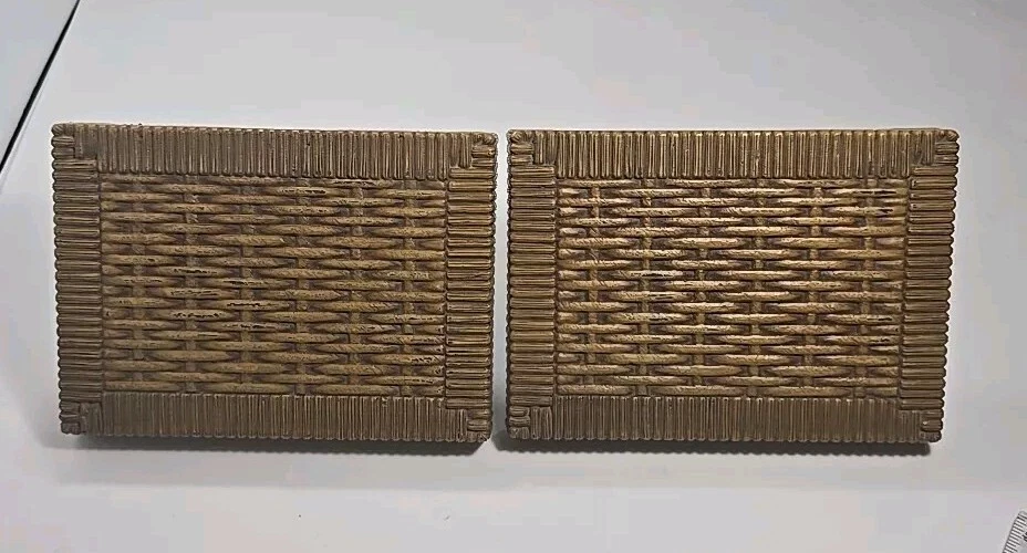 Pair Of MCM Vintage Homco Syroco Basket Weave Wall Shelf USA 5”x7” 1978 #3323