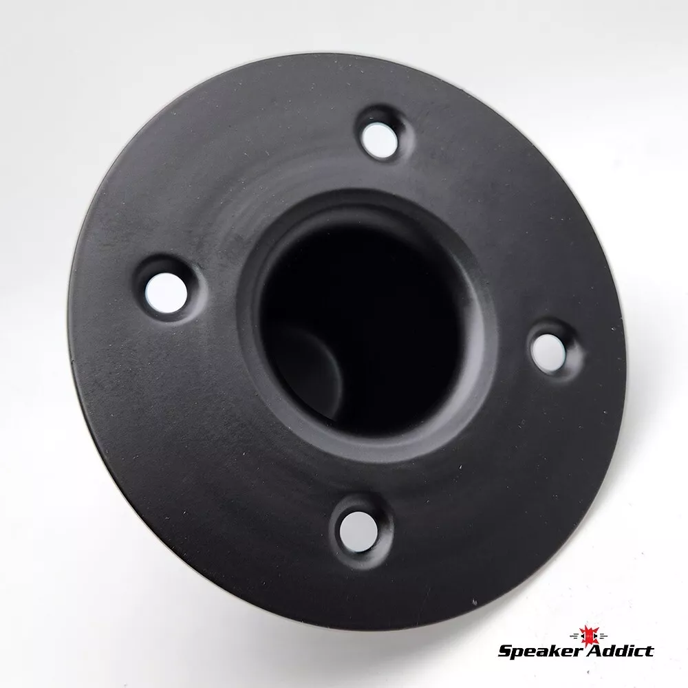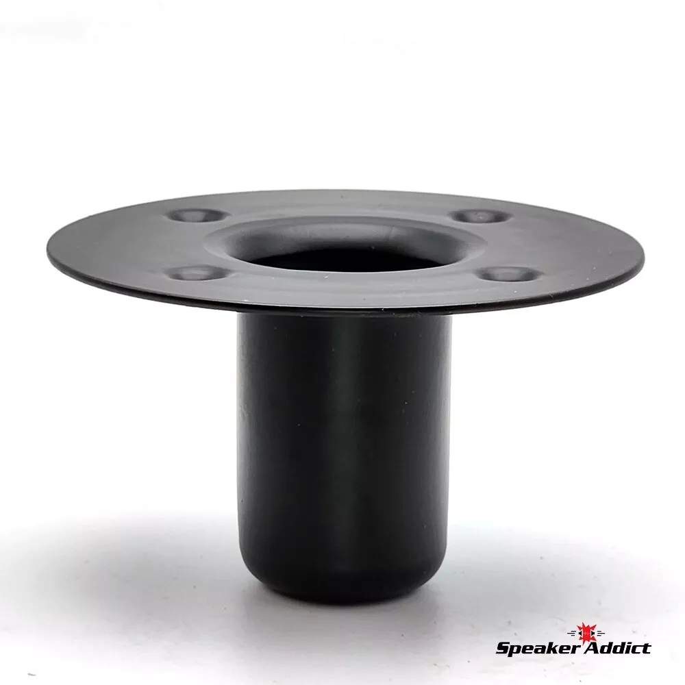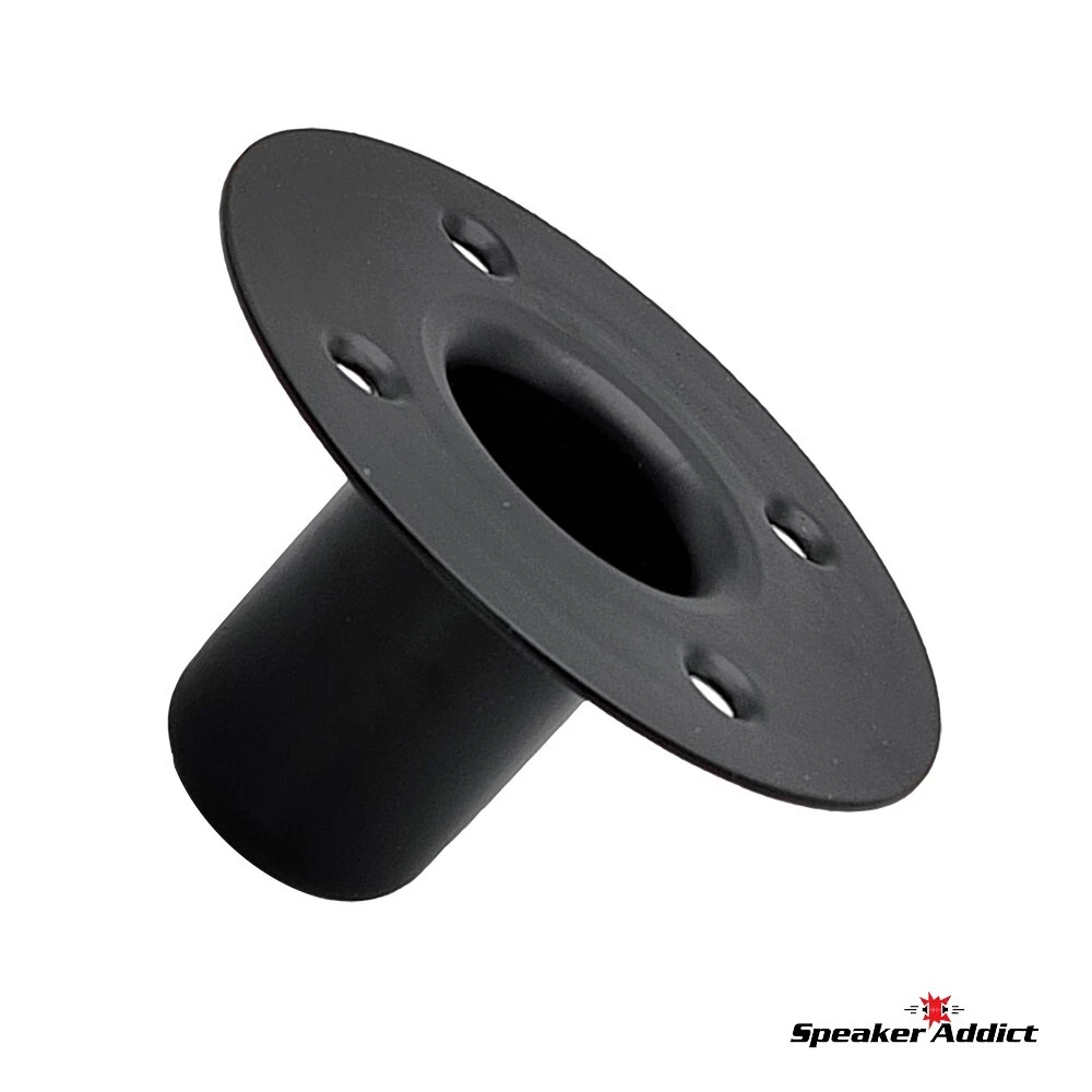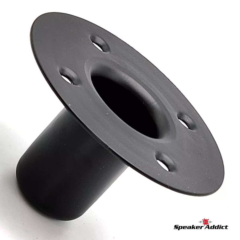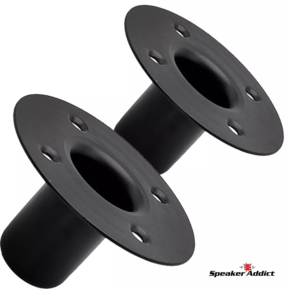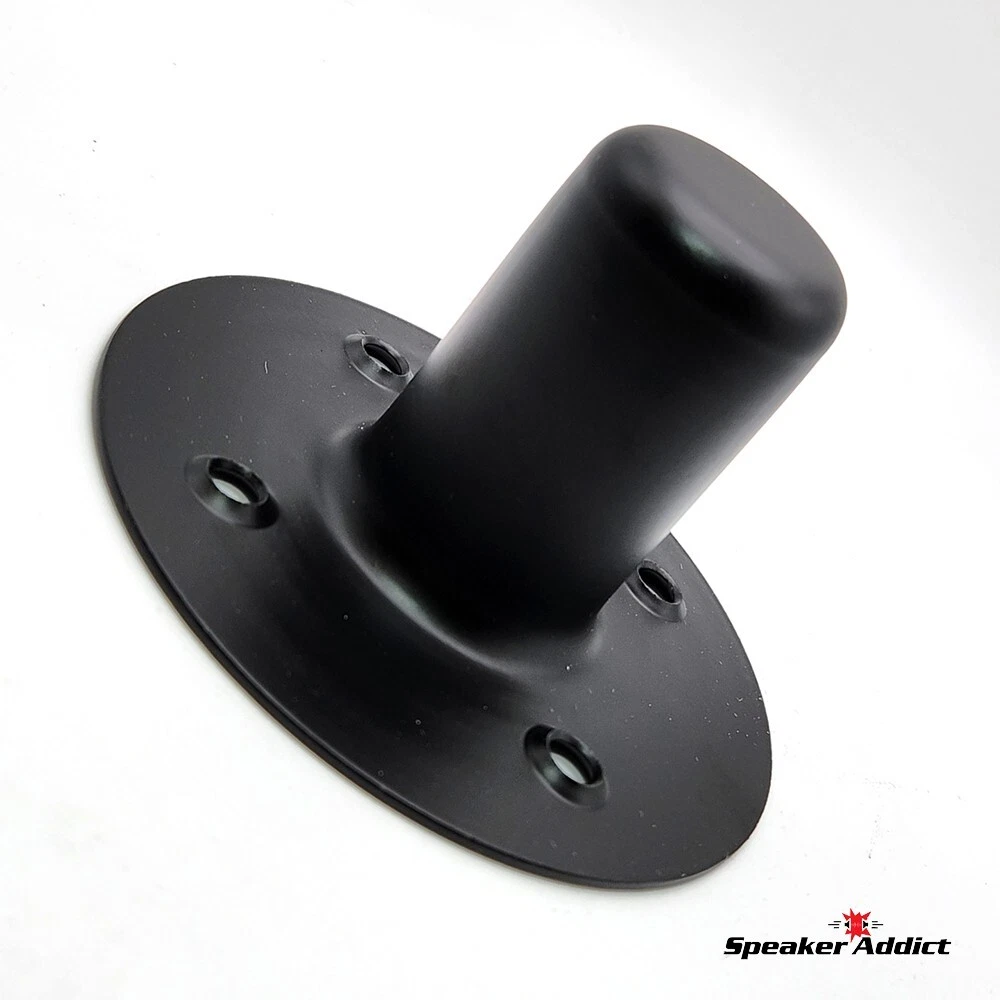 Pair (2Pcs) Steel Speaker Pole Mounting Socket Cup Top Hat for 1-1/2" Tripod Stand Black Quickly transforms existing speaker cabinets for use with tripod speaker stands. Simply cut a hole, mount inwardly to bottom of speaker cabinet and your cabinet is now ready for both tripod and subwoofer/main stand use. Avoid the hassle of standard tripod mounting plates. Socket diameter: 1-1/2" Depth: 2 3/4" Mounting holes: 3-7/32" center-to-center across Cutout: 2-1/8" Overall diameter: 4-7/8" Construction: Heavy duty drawn steel same fit as M1552.