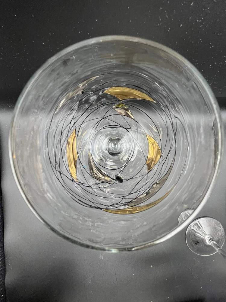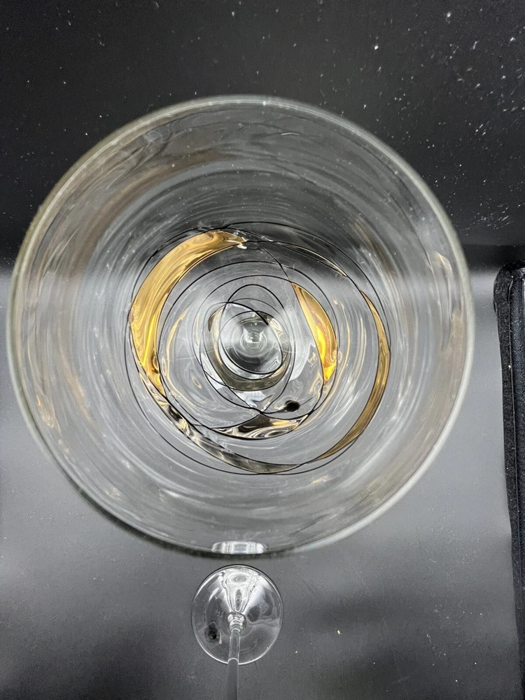 Pair of Stimas Romania 8” Tall Stemware Stained Glass Red Wine Glasses, hand-blown and decorated with an abstract design. The set includes two red wine glasses, perfect for all occasions. Made of glass, the contemporary style glasses feature a round shape and stand 8 inches tall and 8.25” tall. Each glass is adorned with a unique abstract pattern, adding a touch of elegance to your dining experience. Original sticker.