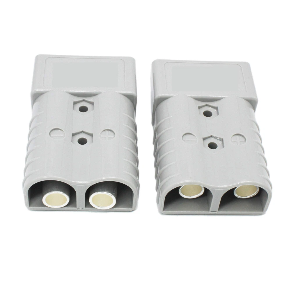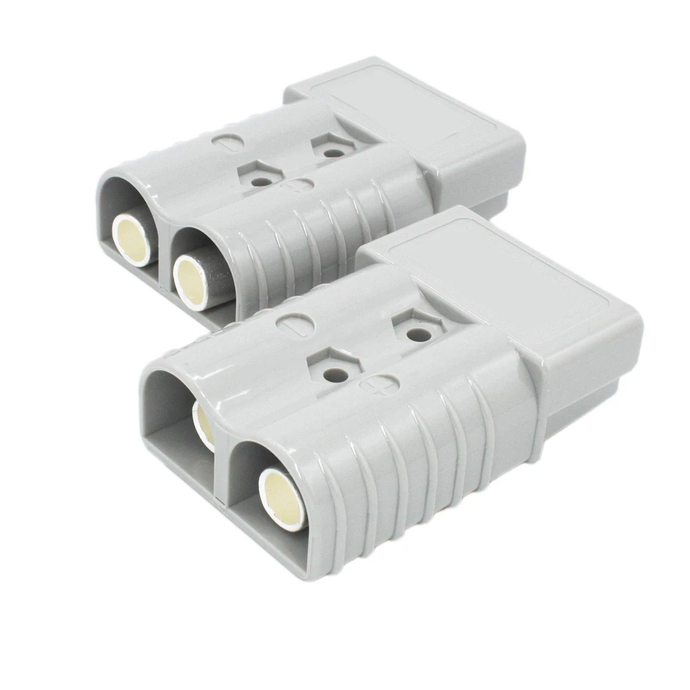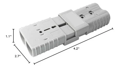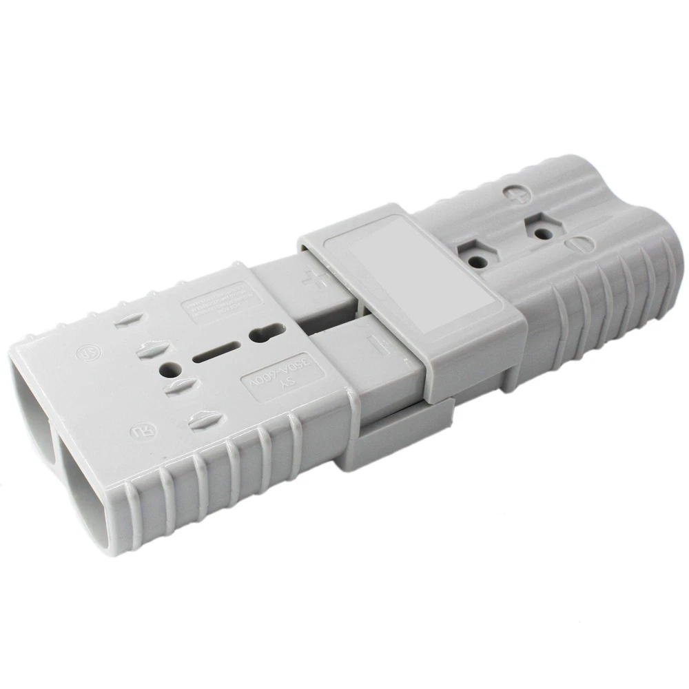 Quick connector set from Driver Recovery Products. Provides simple and convenient method for disconnecting power to a winch or other electrical device such as remote battery chargers, trailers, or for any purpose requiring a high-current, quick-disconnect connector. Simply insert wires into terminal pins, then crimp or solder. Pins are then inserted into the connector housing, where they lock in place (pins can be removed from housing if necessary). Complete set: 1 Pair (2 connector ends, 4 terminal pins, ) Capacity: 350 Amps Rating Gauge: 2/0awg Volatage: UL at 600 volts DC or AC. Dimension: 4.2"x2.7"x1.1"/connector