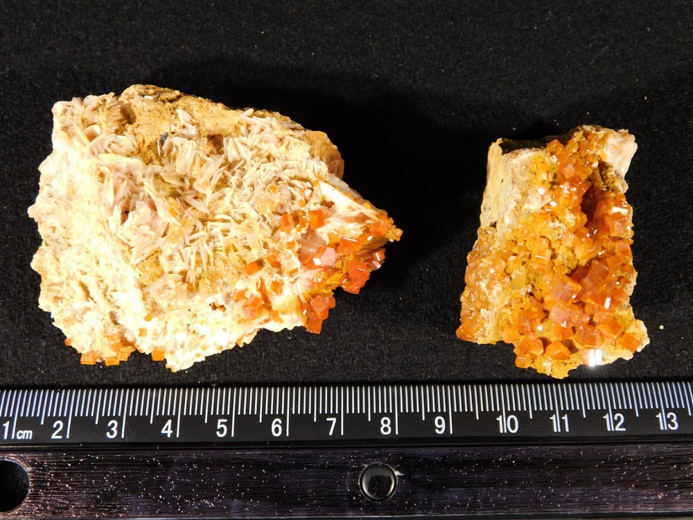 Hello, here are TWO!! nice and 100% natural Vanadinite Crystal clusters with shiny perfectly formed orange hued crystals on a contrasting colored matrix! They were mined in Morocco. Please note that these crystal clusters are WAY nicer in person as it is difficult to get all of the detail and true colors to show up in the photos! The largest overall piece or matrix measures around 2 13/16" or 7.1cm at its biggest or from opposing side to side. INTERNATIONAL BUYERS PLEASE NOTE : Import duties and taxes are not included in the price of the item or the shipping charges. These are the buyers responsibility. If you are concerned about them, please check with your country's customs office before purchasing. RETURN POLICY We guarantee you will be satisfied with your item or we'll refund your purchase price, less shipping charge, upon safe return of the item in original condition within 14 days. Prior to returning the item, please contact within 48 hours of receiving item. Buyer is responsible for all return shipping charges.